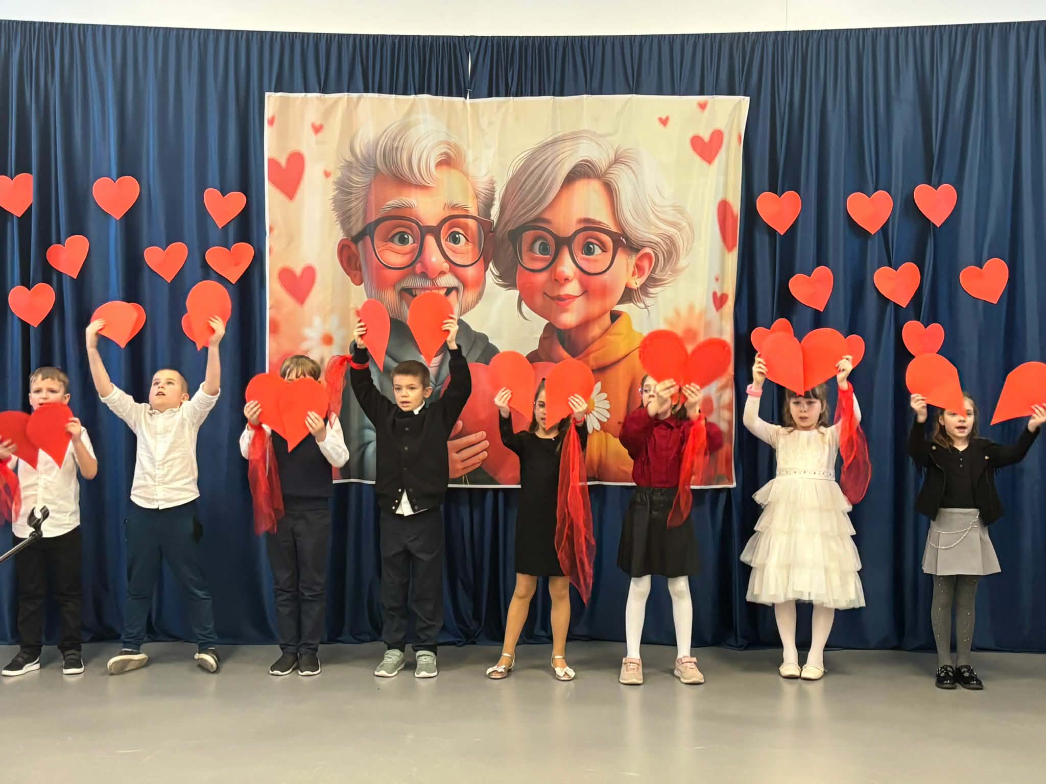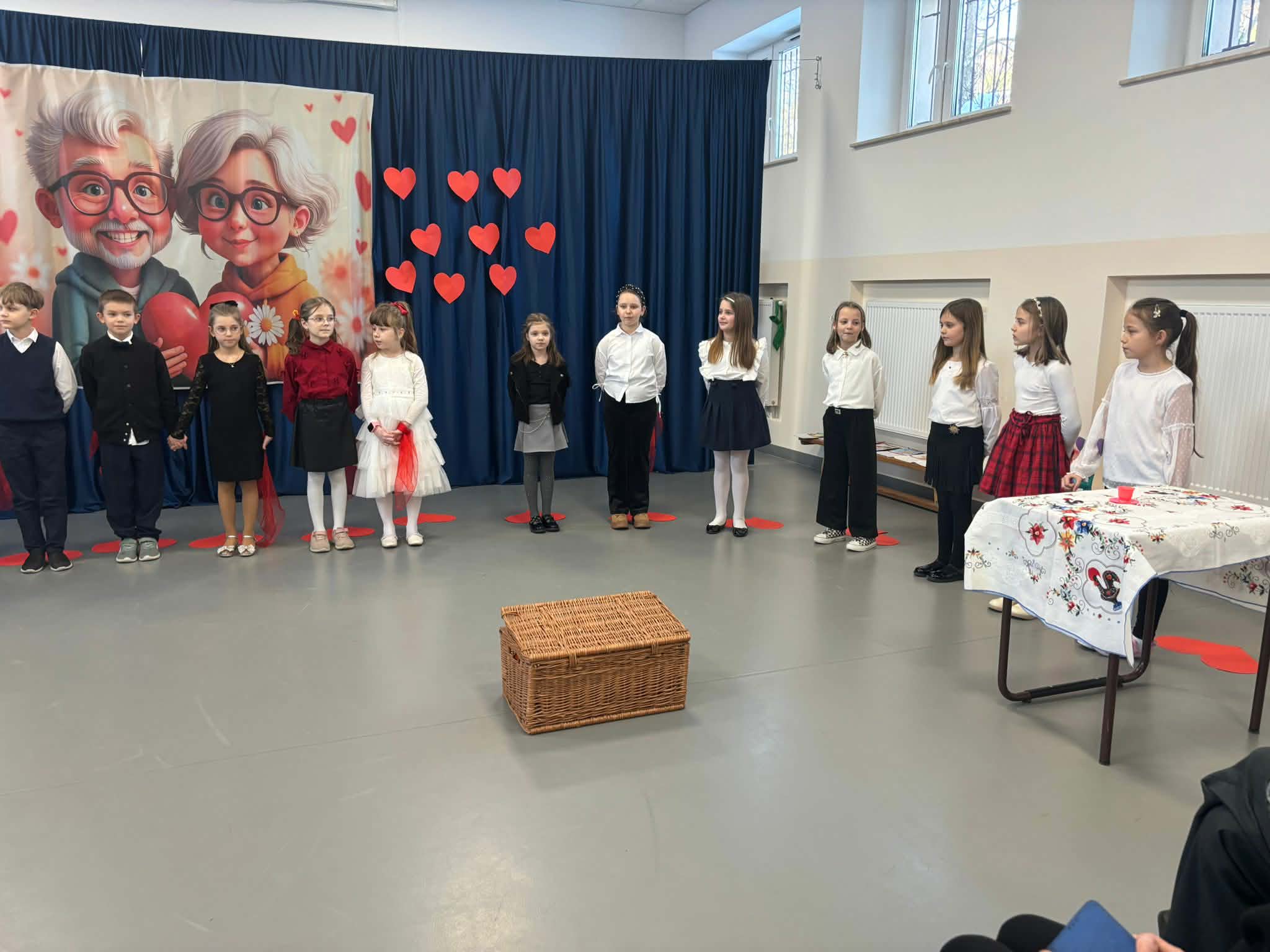 Z okazji Dnia Babci i Dziadka w naszej szkole odbyło się uroczyste spotkanie, podczas którego uczniowie klasy 2d zaprezentowali program artystyczny. Wiersze i piosenki były podziękowaniem Babciom i Dziadkom za ich miłość i troskę. Na koniec uroczystości dyrektor Pan Jarosław Chyliński i wicedyrektor Pani Marianna Kozłowska złożyli ciepłe i serdeczne życzenia seniorom, w których podkreślili ich rolę w życiu rodzinnym i wychowaniu młodego pokolenia. Spotkanie przebiegało w atmosferze sprzyjającej integracji międzypokoleniowej.🙂