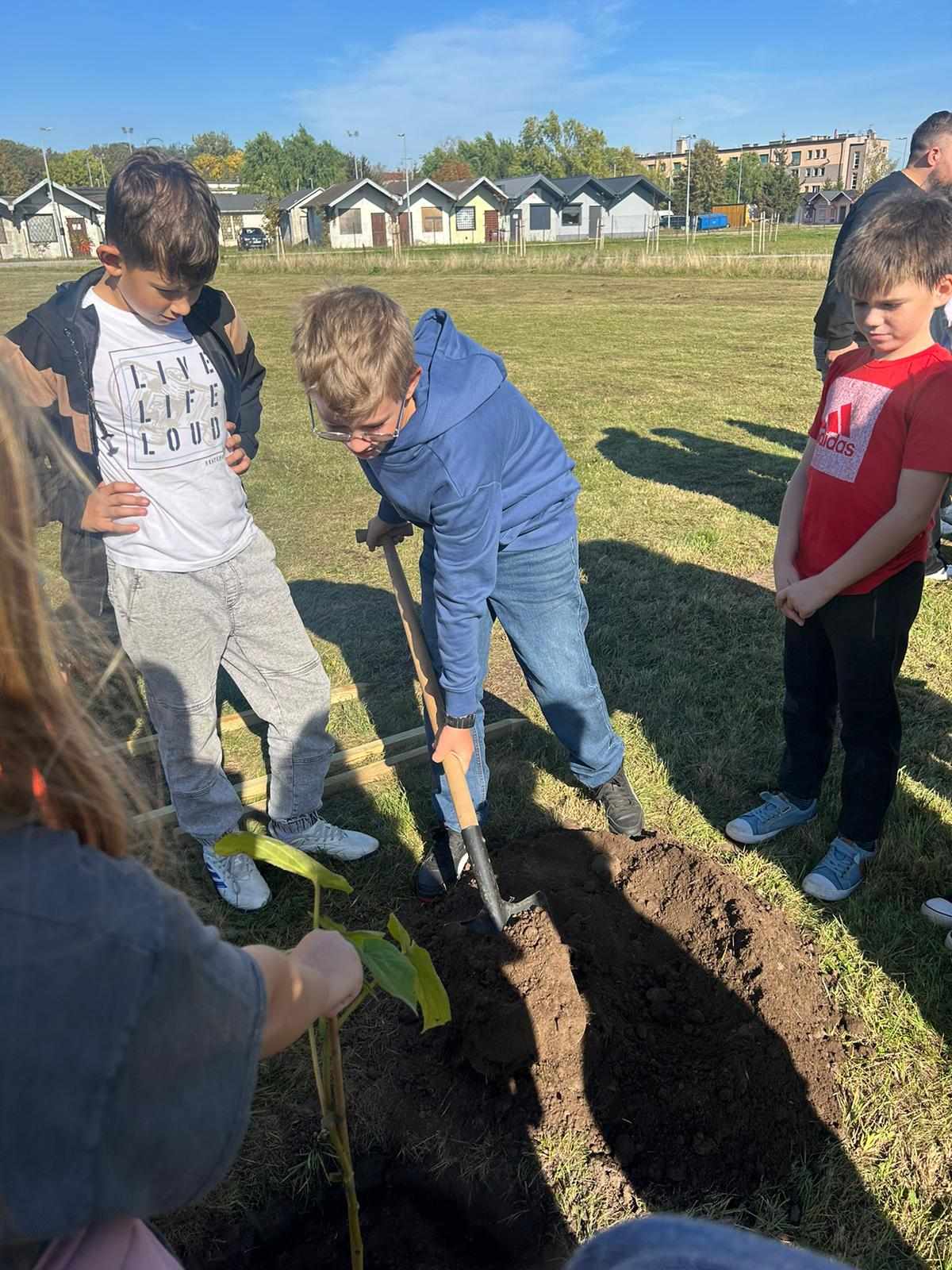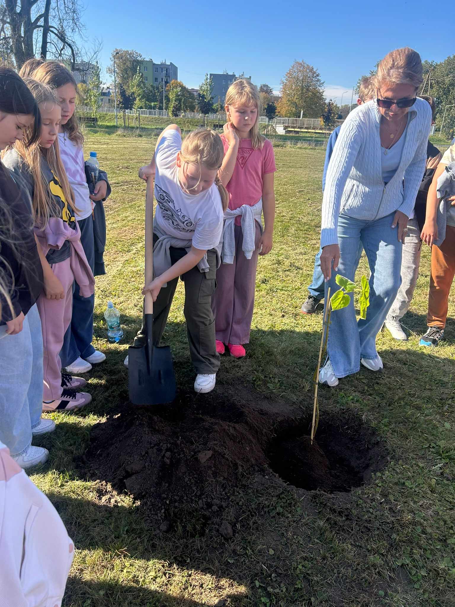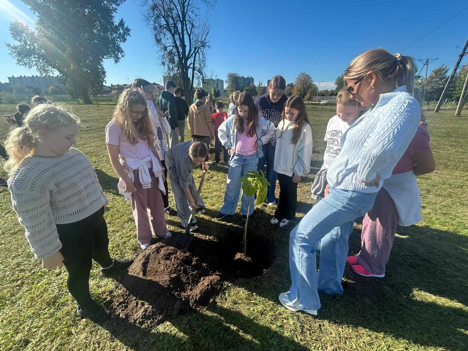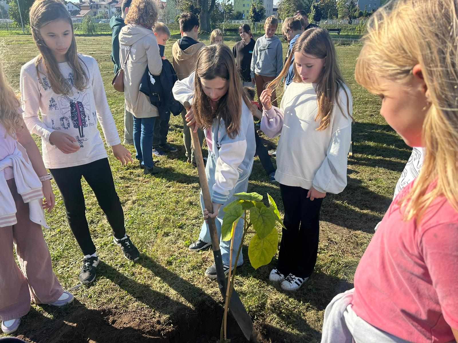 W dniu 10 października w ramach obchodów Dnia Drzewa uczniowie klasy 4c wzięli udział w akcji sadzenia drzew tlenowych o nazwie paulownia. Uczniowie wraz z Panem Burmistrzem Andrzejem Pietrasikiem posadzili 6 takich drzew w parku 120-lecia nad rzeką Płonką.