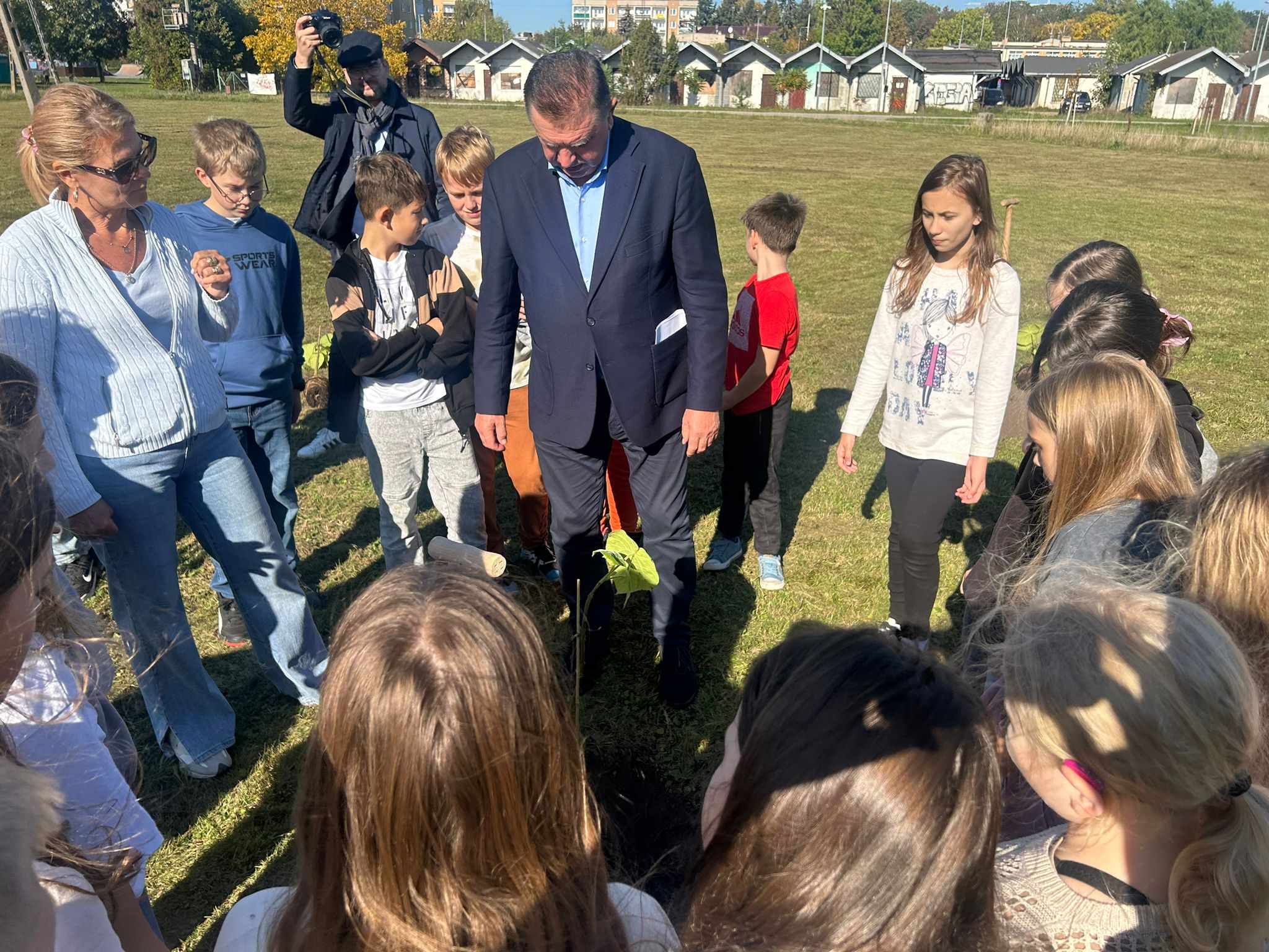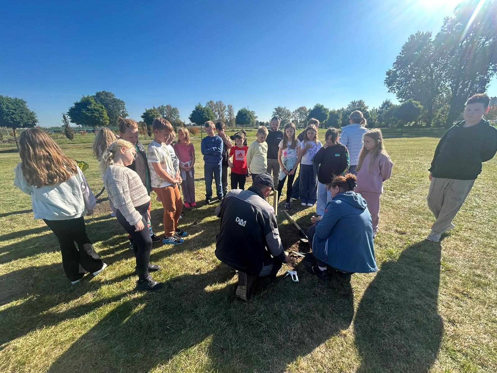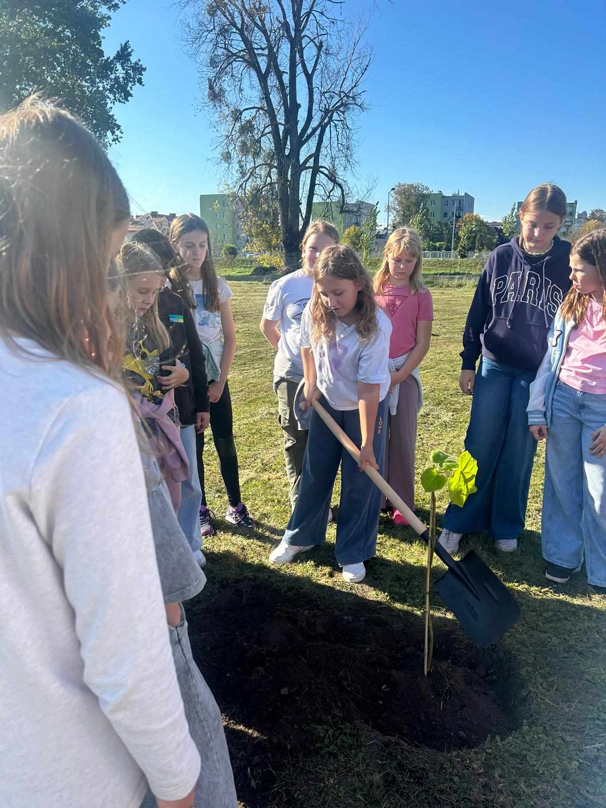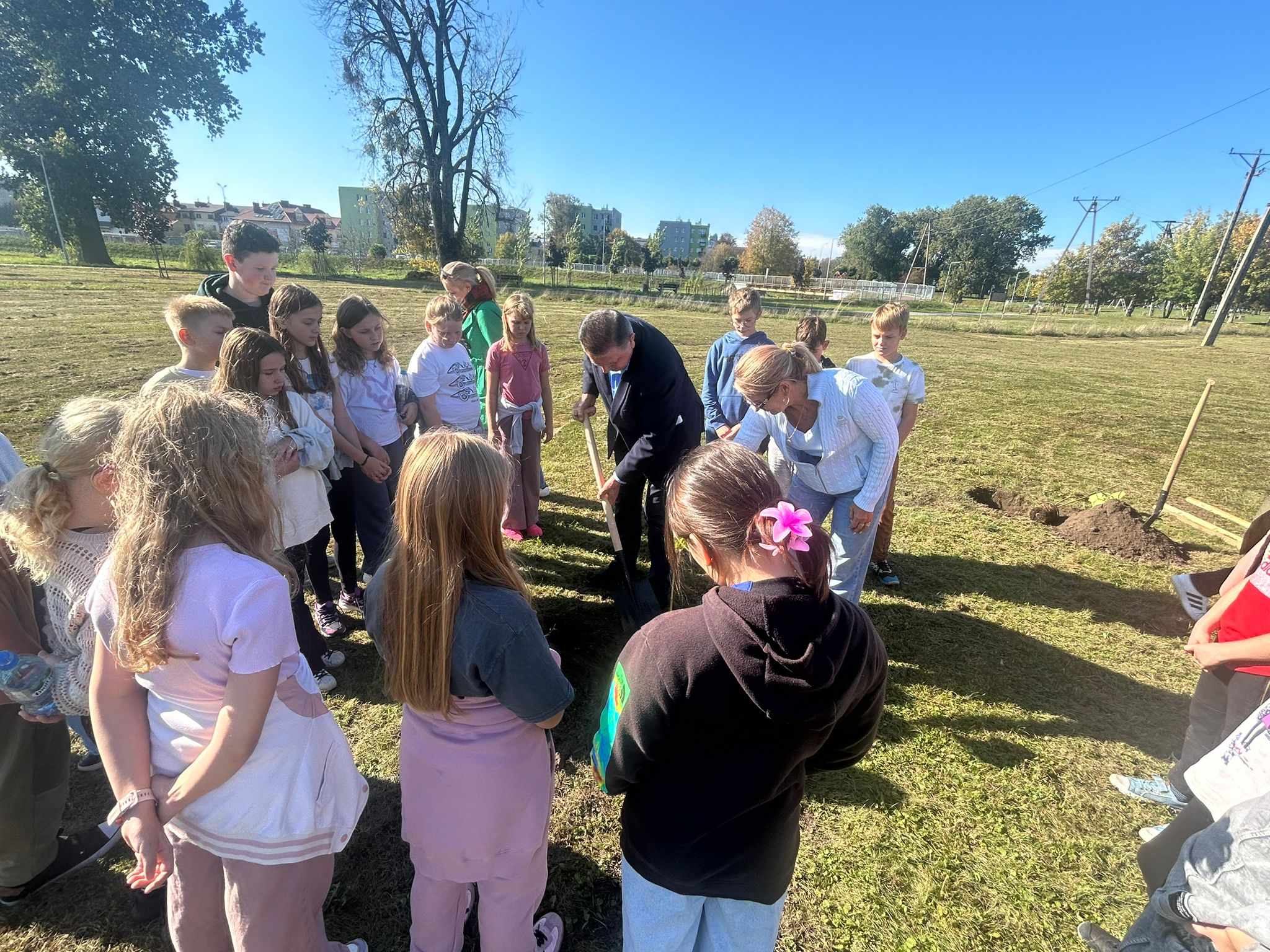 W dniu 10 października w ramach obchodów Dnia Drzewa uczniowie klasy 4c wzięli udział w akcji sadzenia drzew tlenowych o nazwie paulownia. Uczniowie wraz z Panem Burmistrzem Andrzejem Pietrasikiem posadzili 6 takich drzew w parku 120-lecia nad rzeką Płonką.
