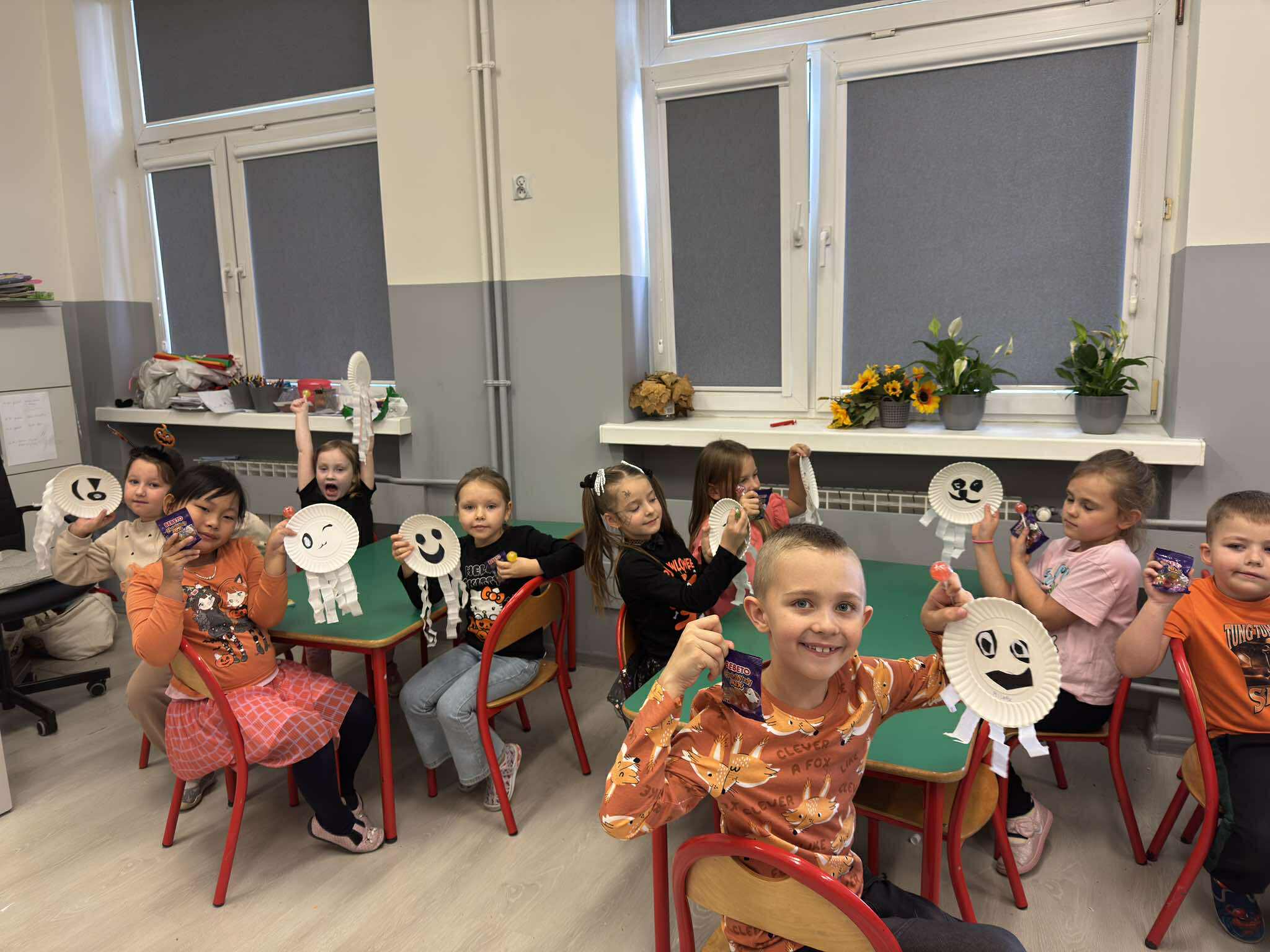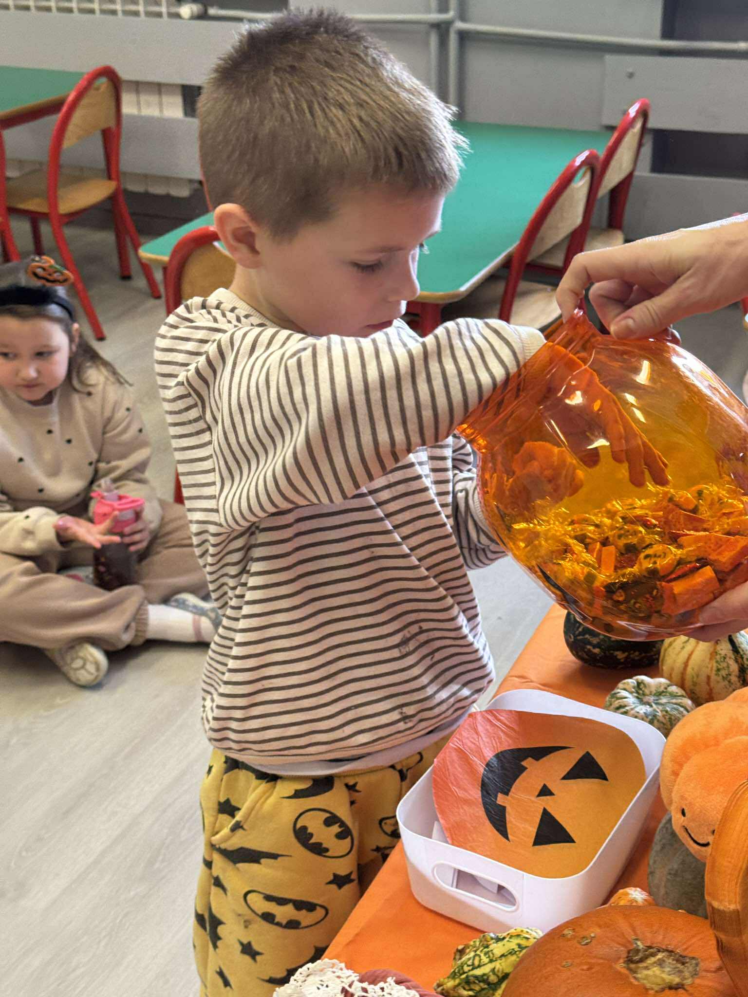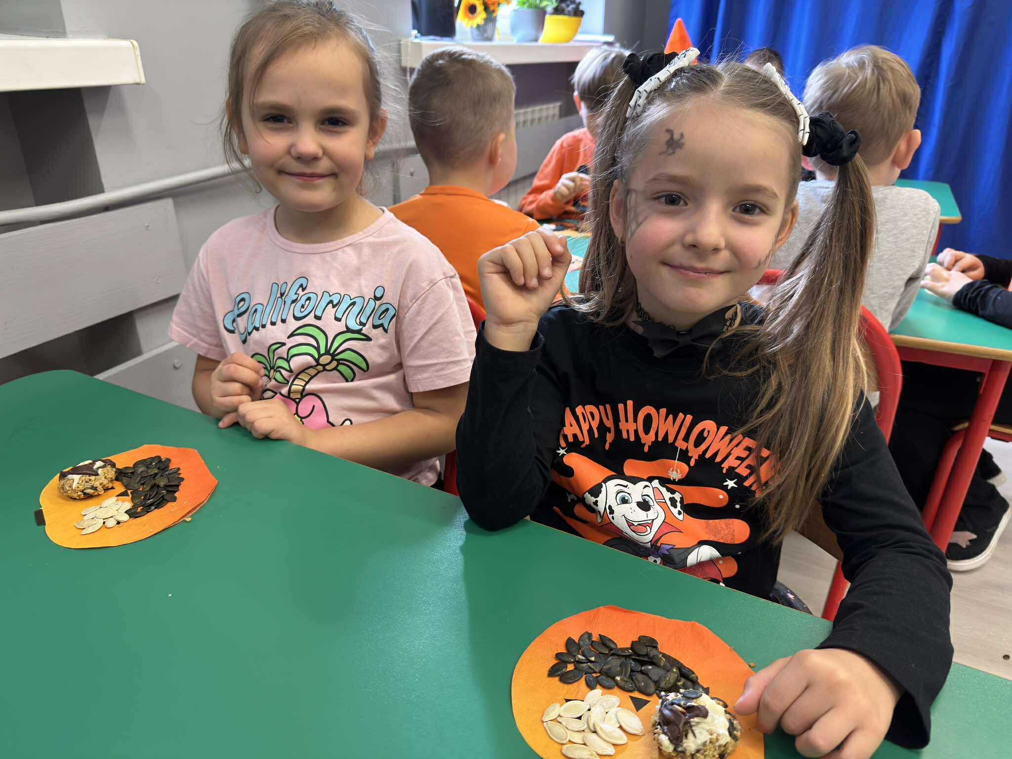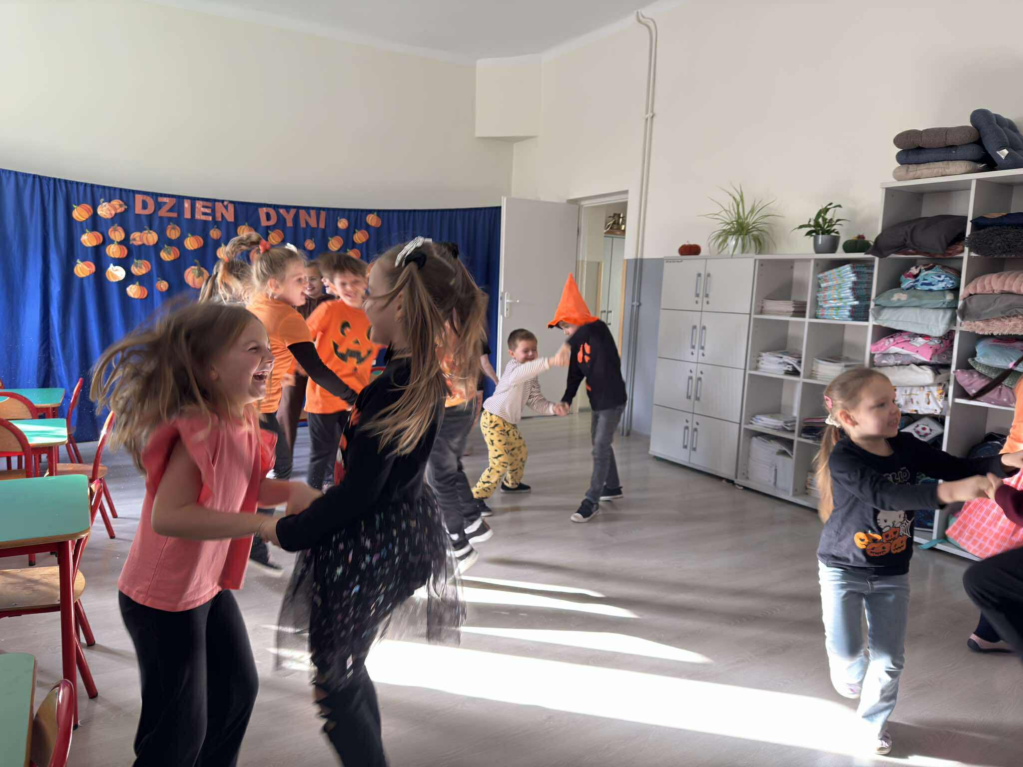 Dzień Dyni z odrobiną psikus czy cukierek oraz duszkami – 31 października 2025 roku. Pierwsza część dnia to poznanie dyni, jej właściwości, co można z niej przygotować, skąd pochodzi, zabawy przy piosenkach o dyni, degustacja ciasteczek z dynią i dyniowych pestek oraz wykonanie pracy plastycznej. Druga część dnia to zabawy w psikus czy cukierek – trochę w odmienionej wersji – czyli losowanie zadania, wykonanie go i słodkość jako nagroda, wykonanie duszków, tańce z duszkami a na zakończenie słodkie niespodzianki. Były również ciasteczka z wróżbą. Kolejny fajny dzień w zerówce.