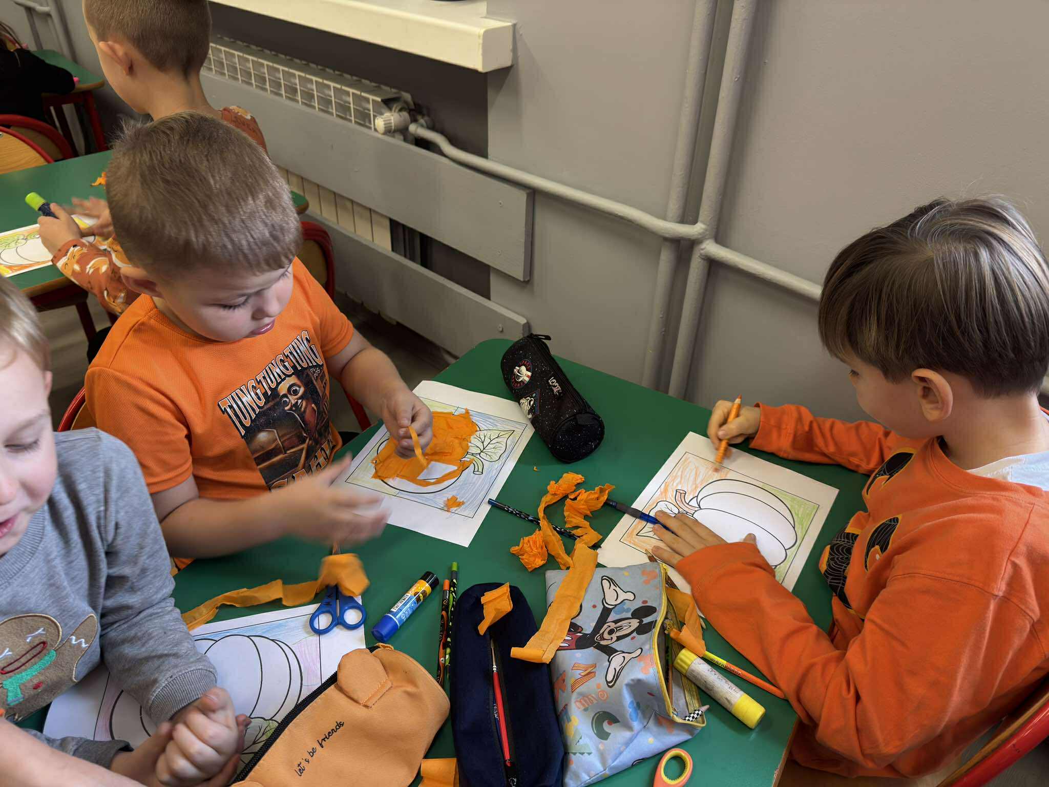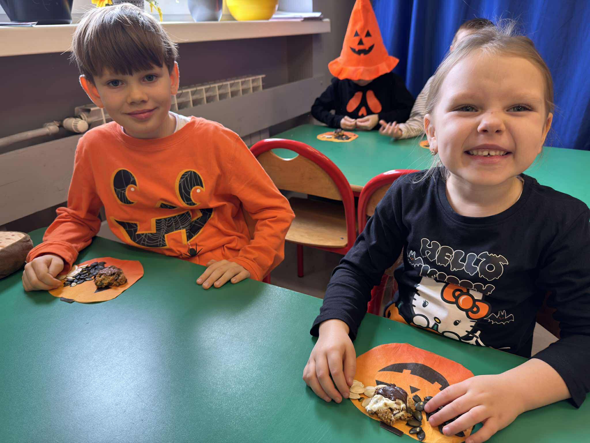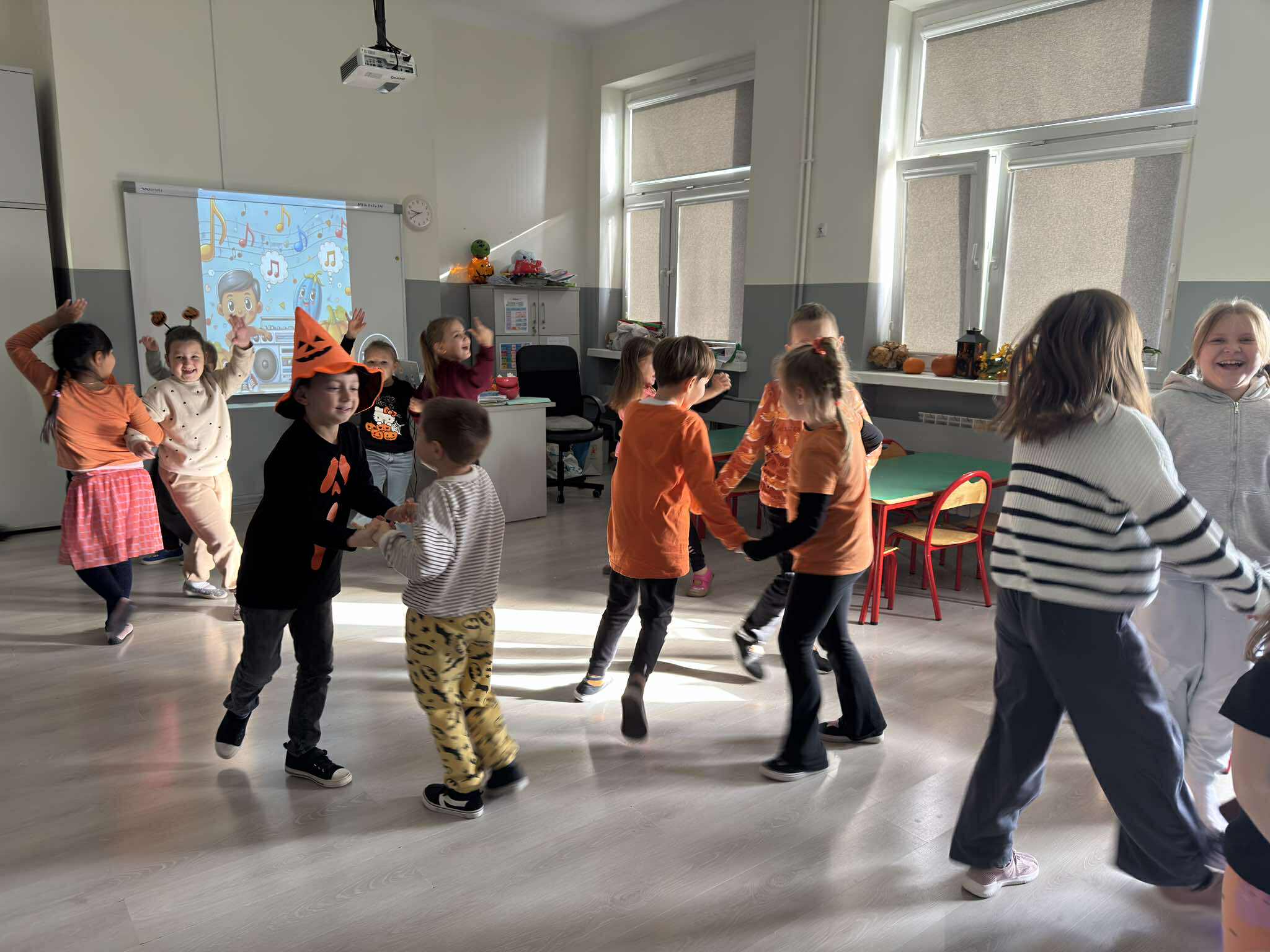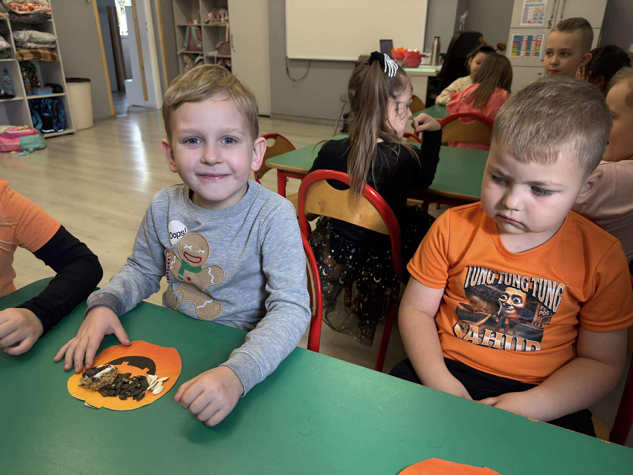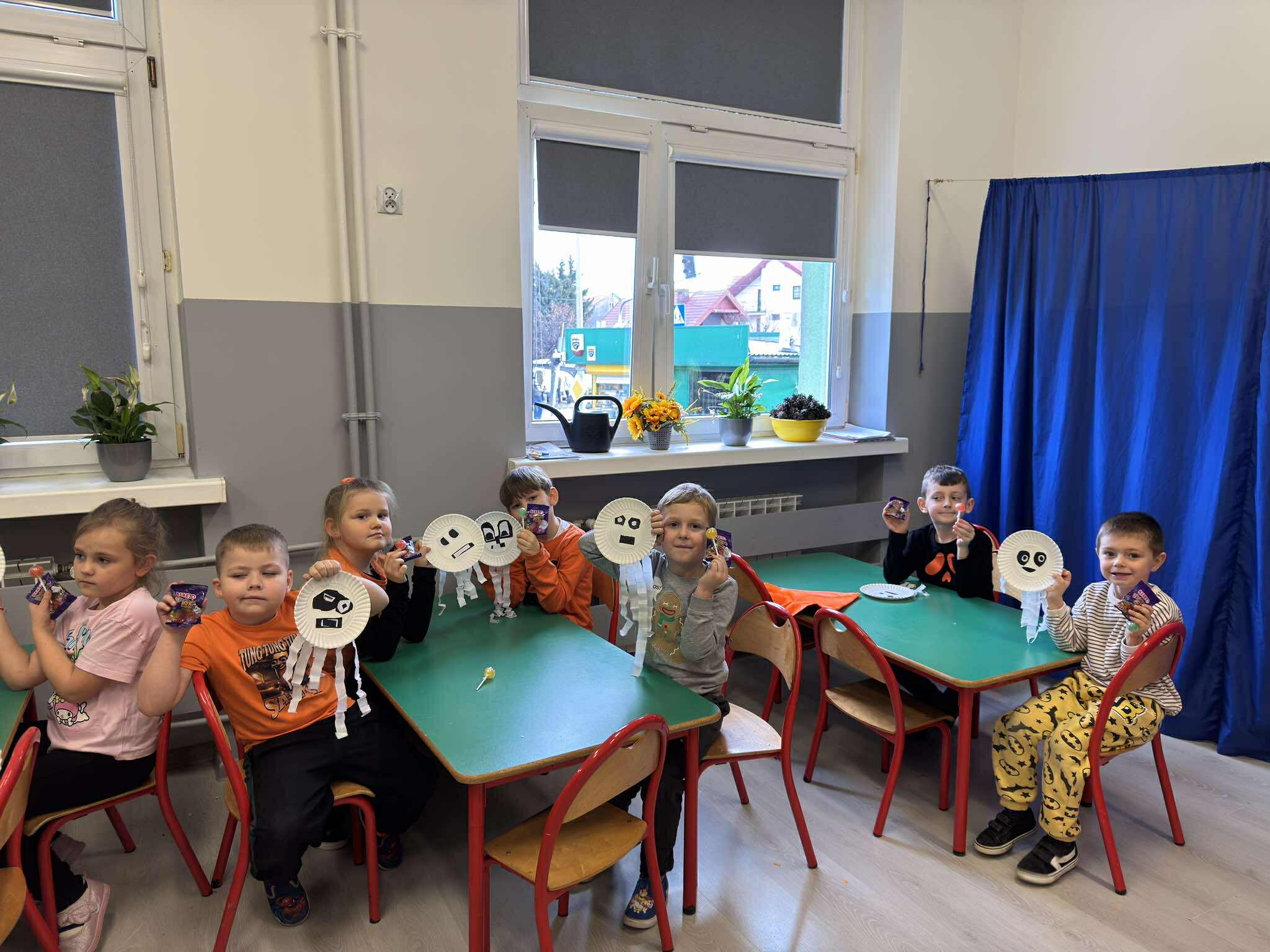 Dzień Dyni z odrobiną psikus czy cukierek oraz duszkami – 31 października 2025 roku. Pierwsza część dnia to poznanie dyni, jej właściwości, co można z niej przygotować, skąd pochodzi, zabawy przy piosenkach o dyni, degustacja ciasteczek z dynią i dyniowych pestek oraz wykonanie pracy plastycznej. Druga część dnia to zabawy w psikus czy cukierek – trochę w odmienionej wersji – czyli losowanie zadania, wykonanie go i słodkość jako nagroda, wykonanie duszków, tańce z duszkami a na zakończenie słodkie niespodzianki. Były również ciasteczka z wróżbą. Kolejny fajny dzień w zerówce.