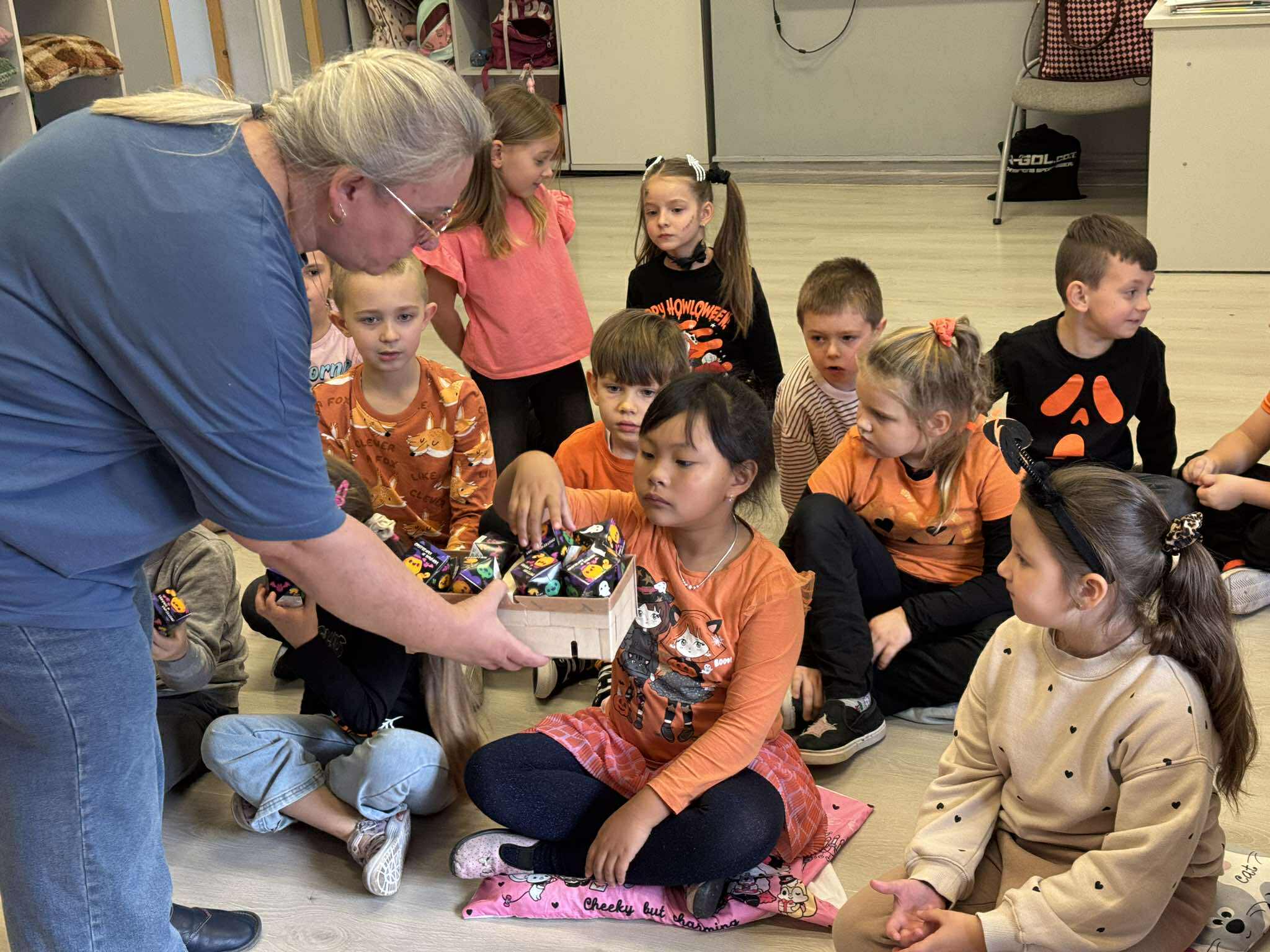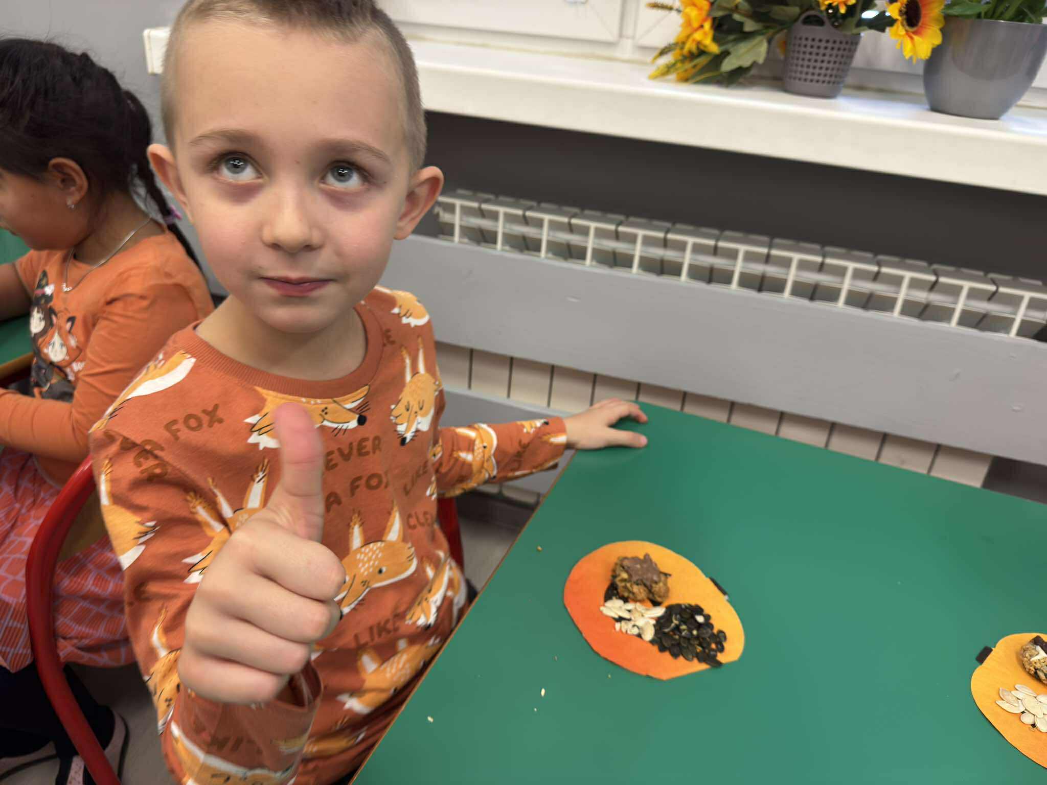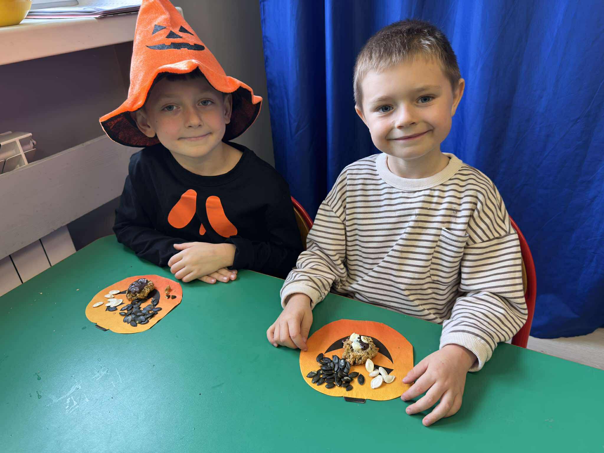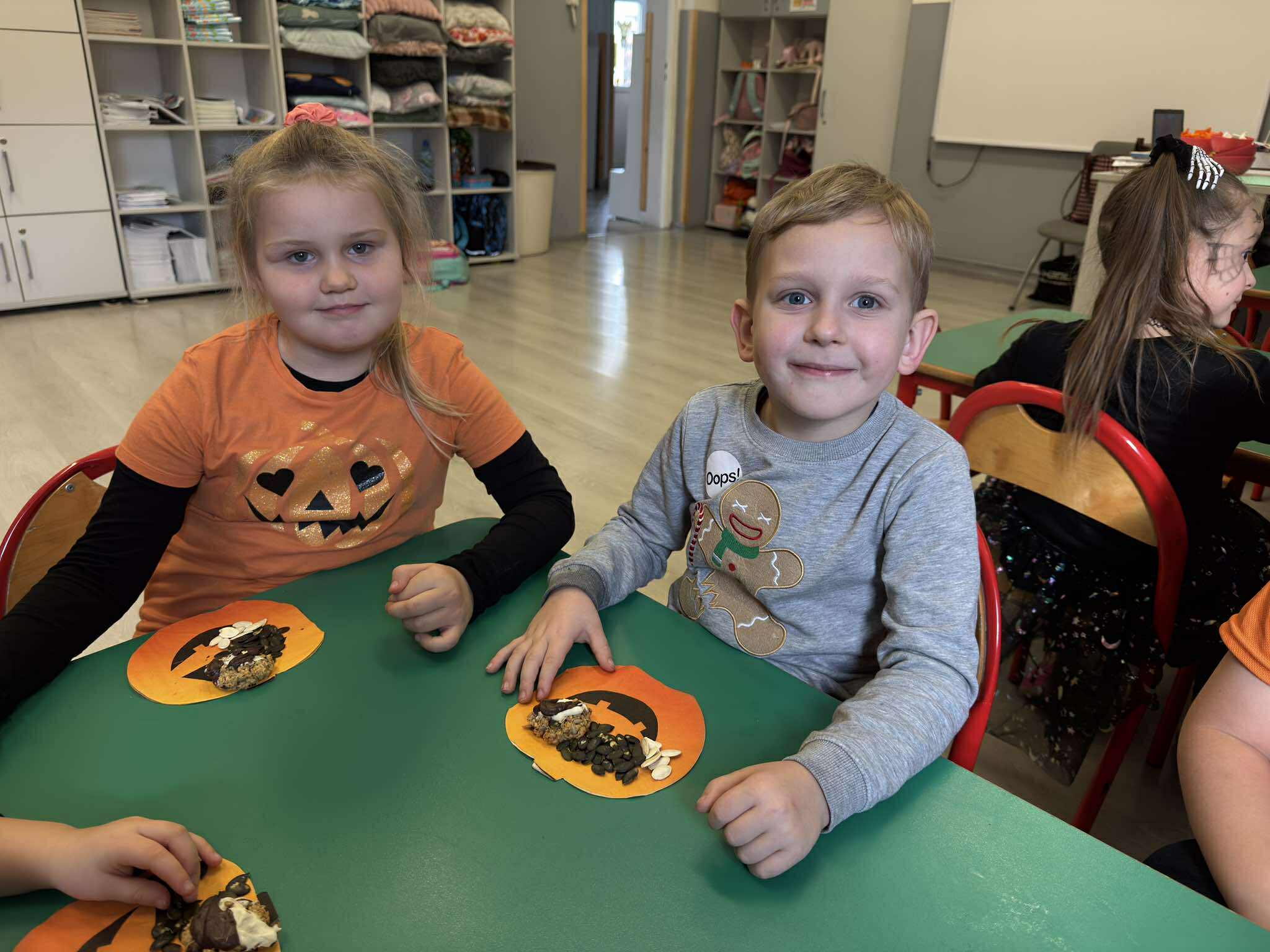 Dzień Dyni z odrobiną psikus czy cukierek oraz duszkami – 31 października 2025 roku. Pierwsza część dnia to poznanie dyni, jej właściwości, co można z niej przygotować, skąd pochodzi, zabawy przy piosenkach o dyni, degustacja ciasteczek z dynią i dyniowych pestek oraz wykonanie pracy plastycznej. Druga część dnia to zabawy w psikus czy cukierek – trochę w odmienionej wersji – czyli losowanie zadania, wykonanie go i słodkość jako nagroda, wykonanie duszków, tańce z duszkami a na zakończenie słodkie niespodzianki. Były również ciasteczka z wróżbą. Kolejny fajny dzień w zerówce.
