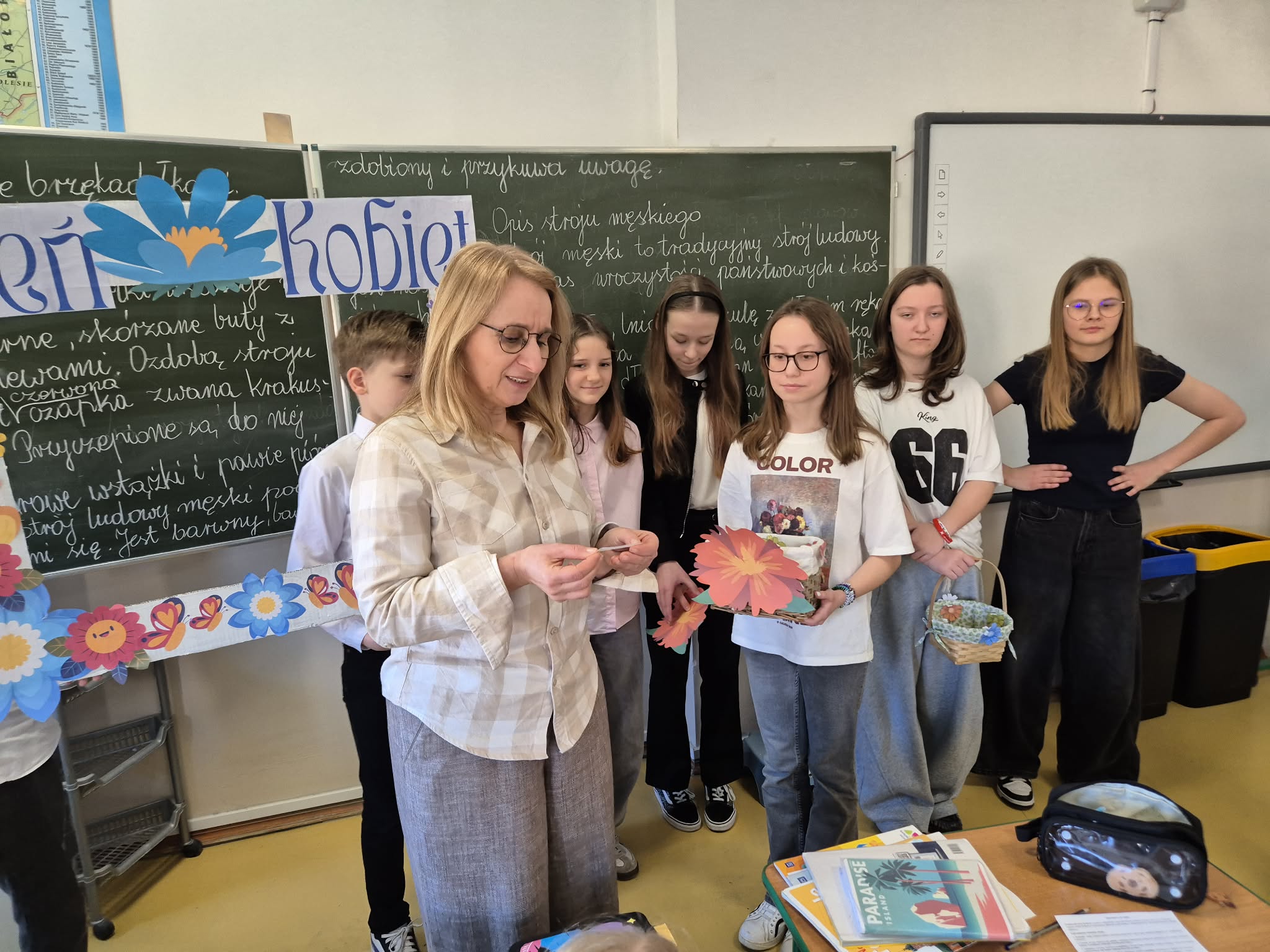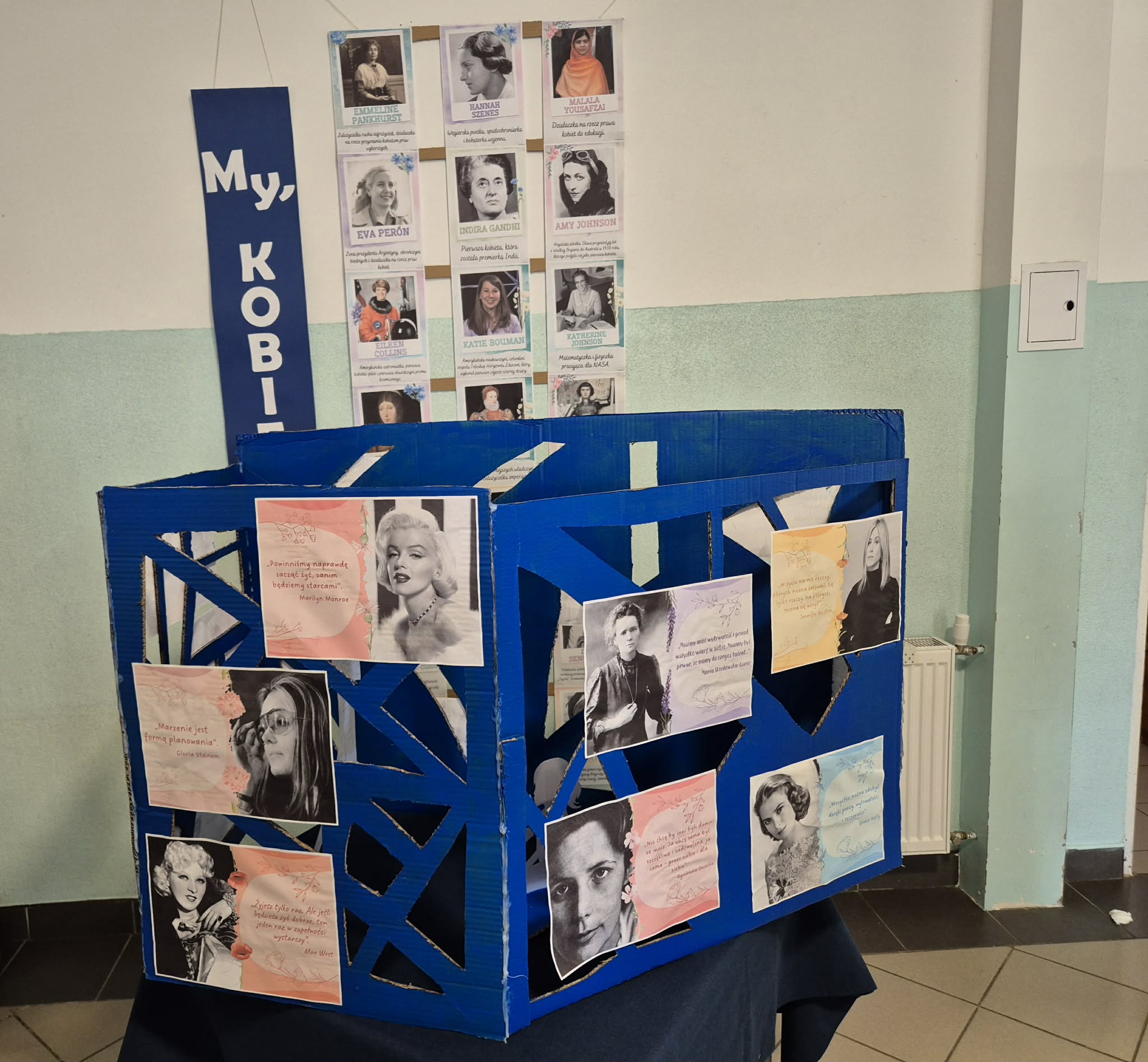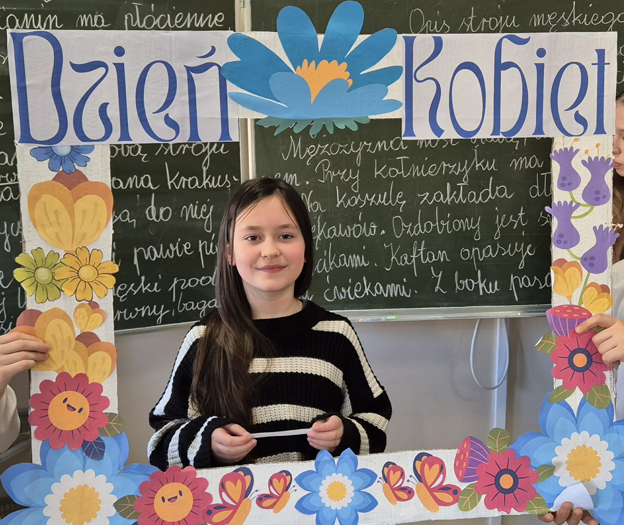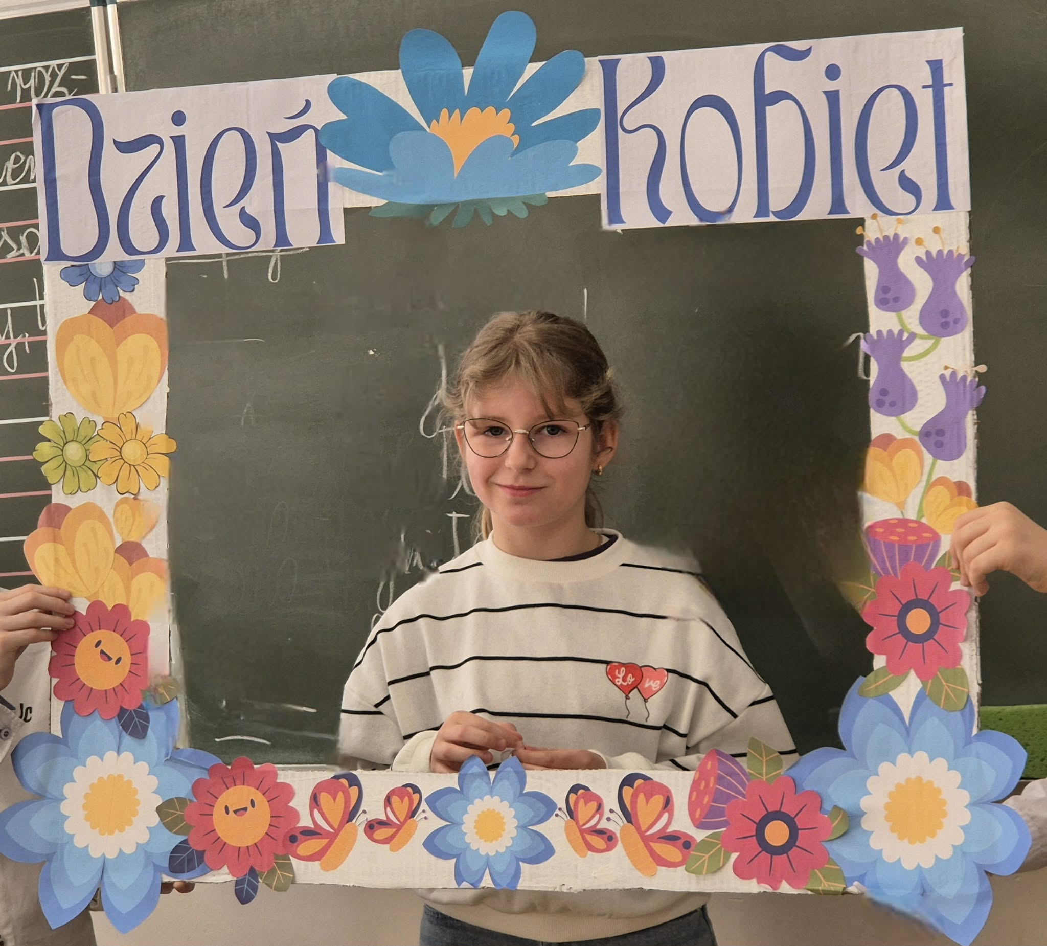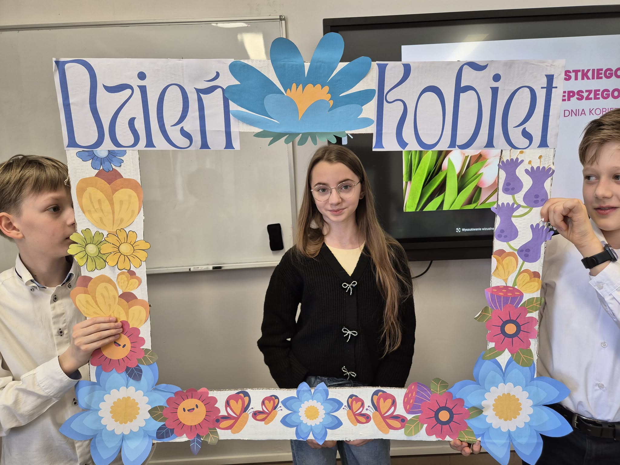 Z okazji Dnia Kobiet opiekunowie Samorządu Uczniowskiego wraz z uczniami klasy 5a przygotowali w szkole miłą i inspirującą inicjatywę. Zapraszali wszystkie panie oraz dziewczęta do odpowiedzi na krótkie, życiowe pytania, a także do wykonania pamiątkowego zdjęcia. Ale to nie są wszystkie atrakcje przygotowane na ten szczególny dzień. Biblioteka szkolna przygotowała wystawę poświęconą kobietom, które zmieniały świat dzięki swojej pasji, pracy bądź działalności. Ekspozycja jest okazją do poznania inspirujących postaci oraz refleksji nad rolą kobiet w kształtowaniu kultury i rozwoju nauki.