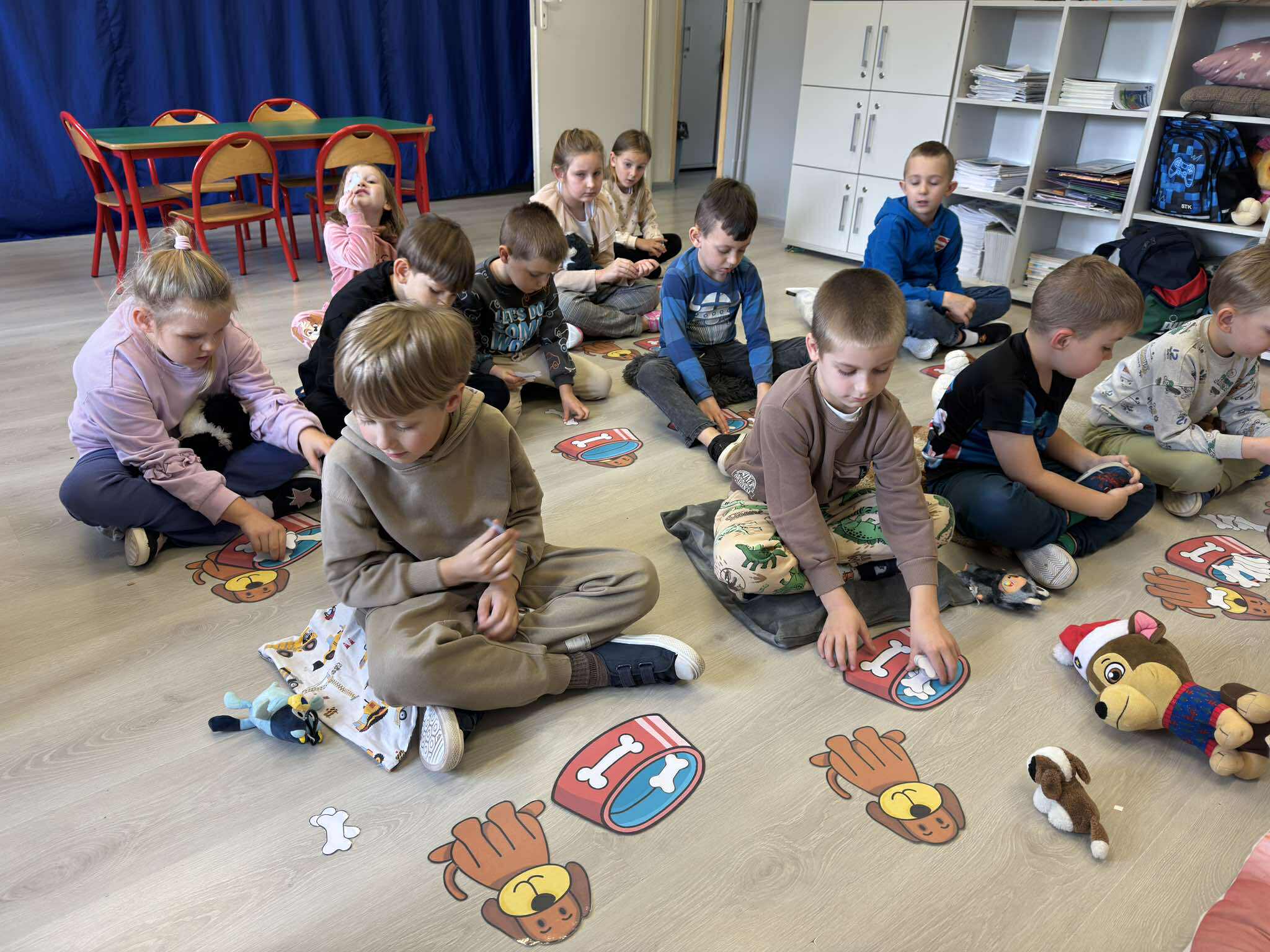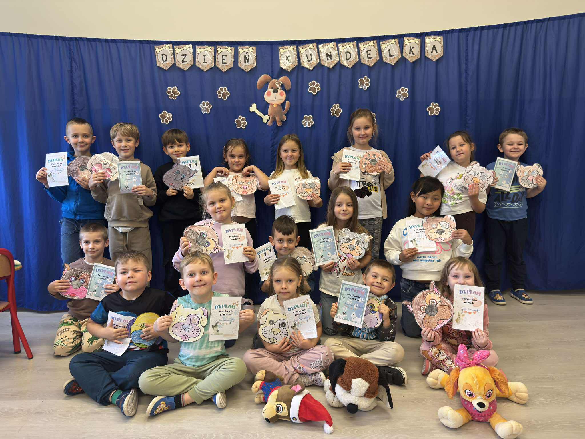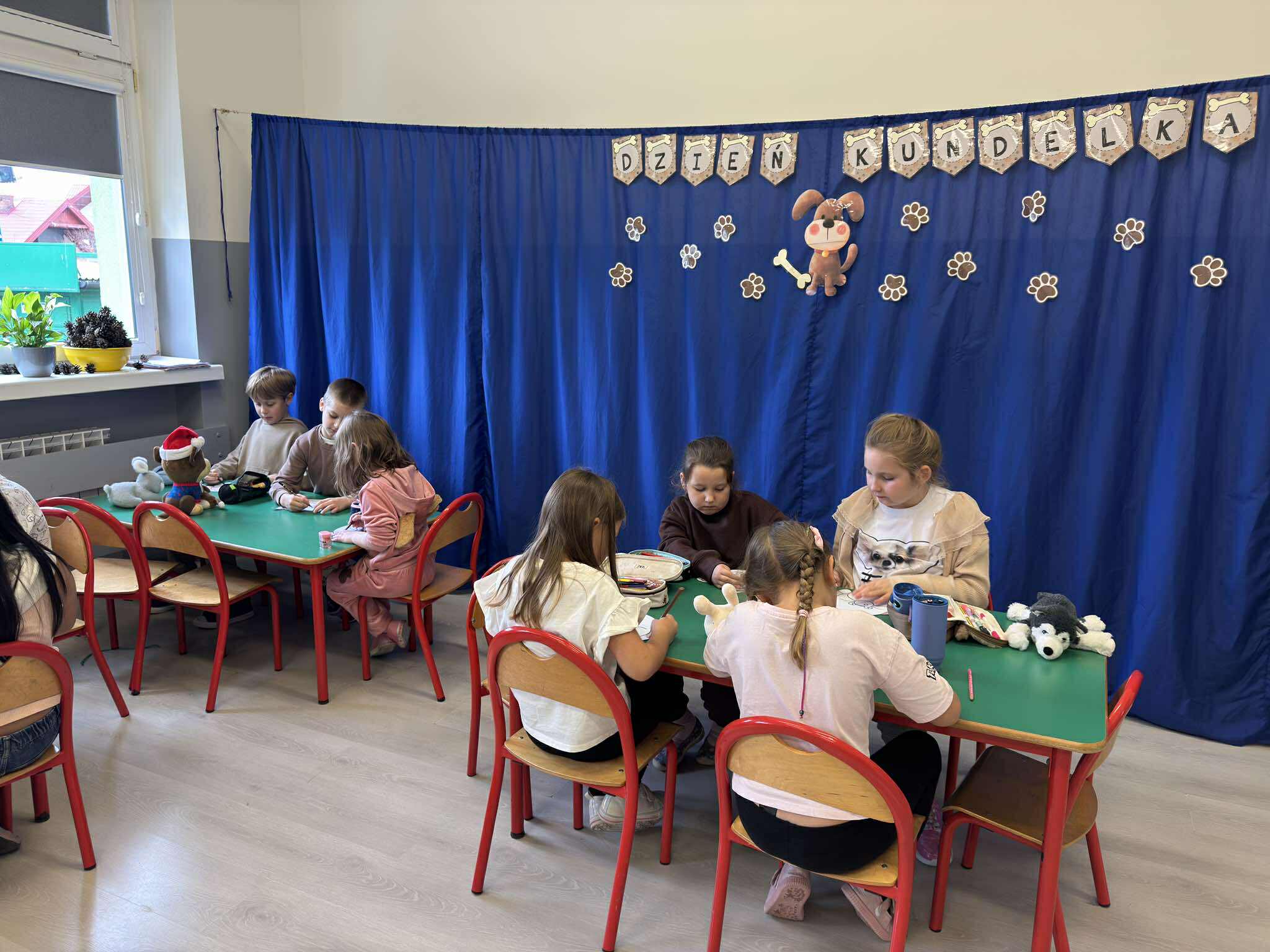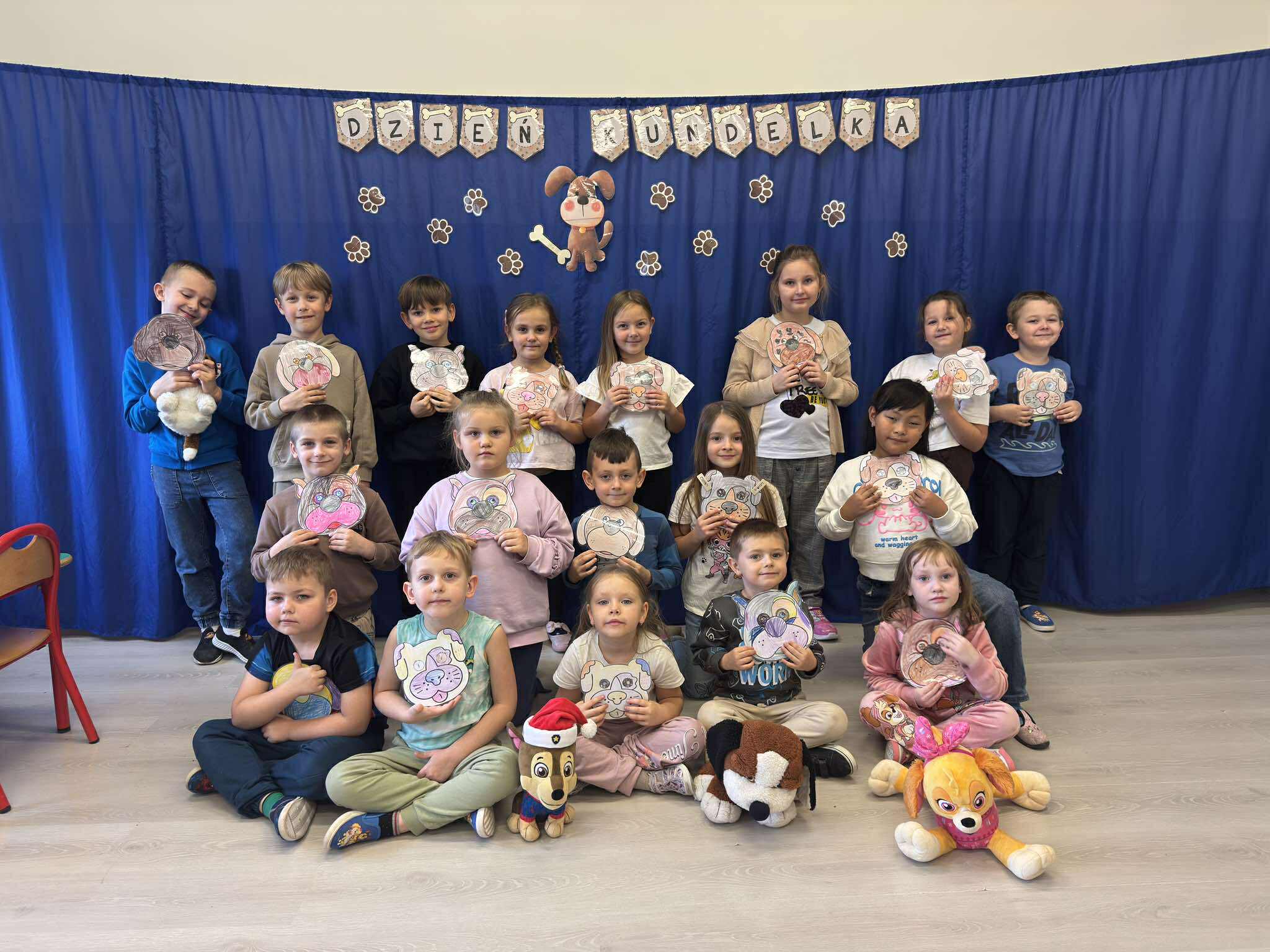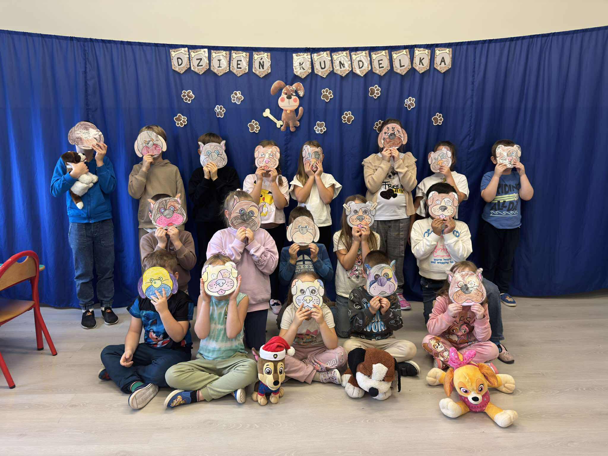 W poniedziałek 27 października 2025 roku w oddziale przedszkolnym obchodzony był Dzień Kundelka. Dzieci z zerówki poznały historię święta oraz poprzez burzę mózgu próbowały odpowiedzieć na pytania dotyczące kundelków, opieki nad nimi czy pomocy schroniskom zwierząt. Po tym działaniu dzieci uczestniczyły w zabawach przy piosenkach. Następnie wykonały maski piesków oraz kolorowankę. Bawiły się w przeliczanie kostek dla kundelków ćwicząc umiejętności dodawania i odejmowania na konkretach. Na koniec otrzymały dyplom za udział w Dniu Kundelka.