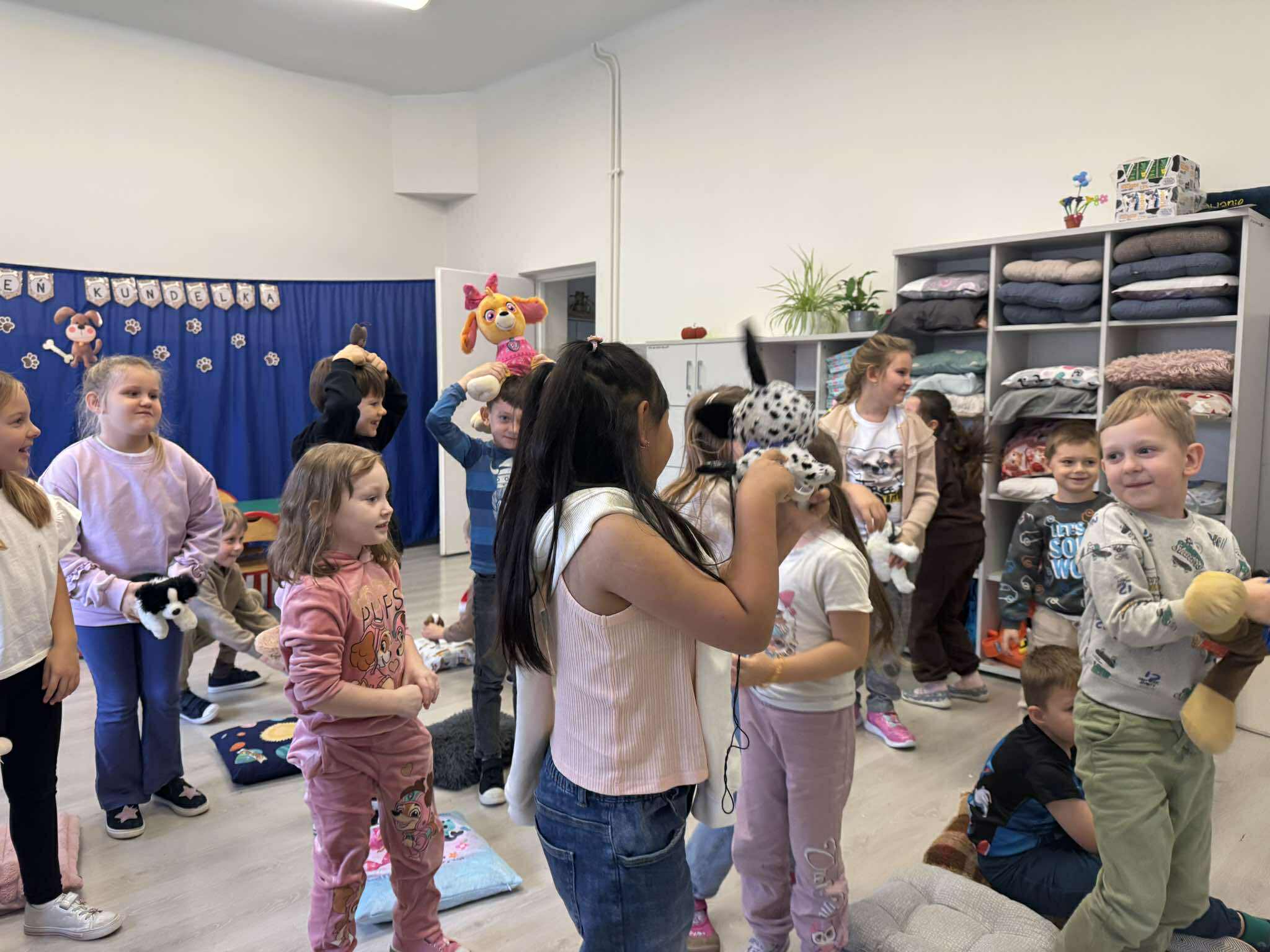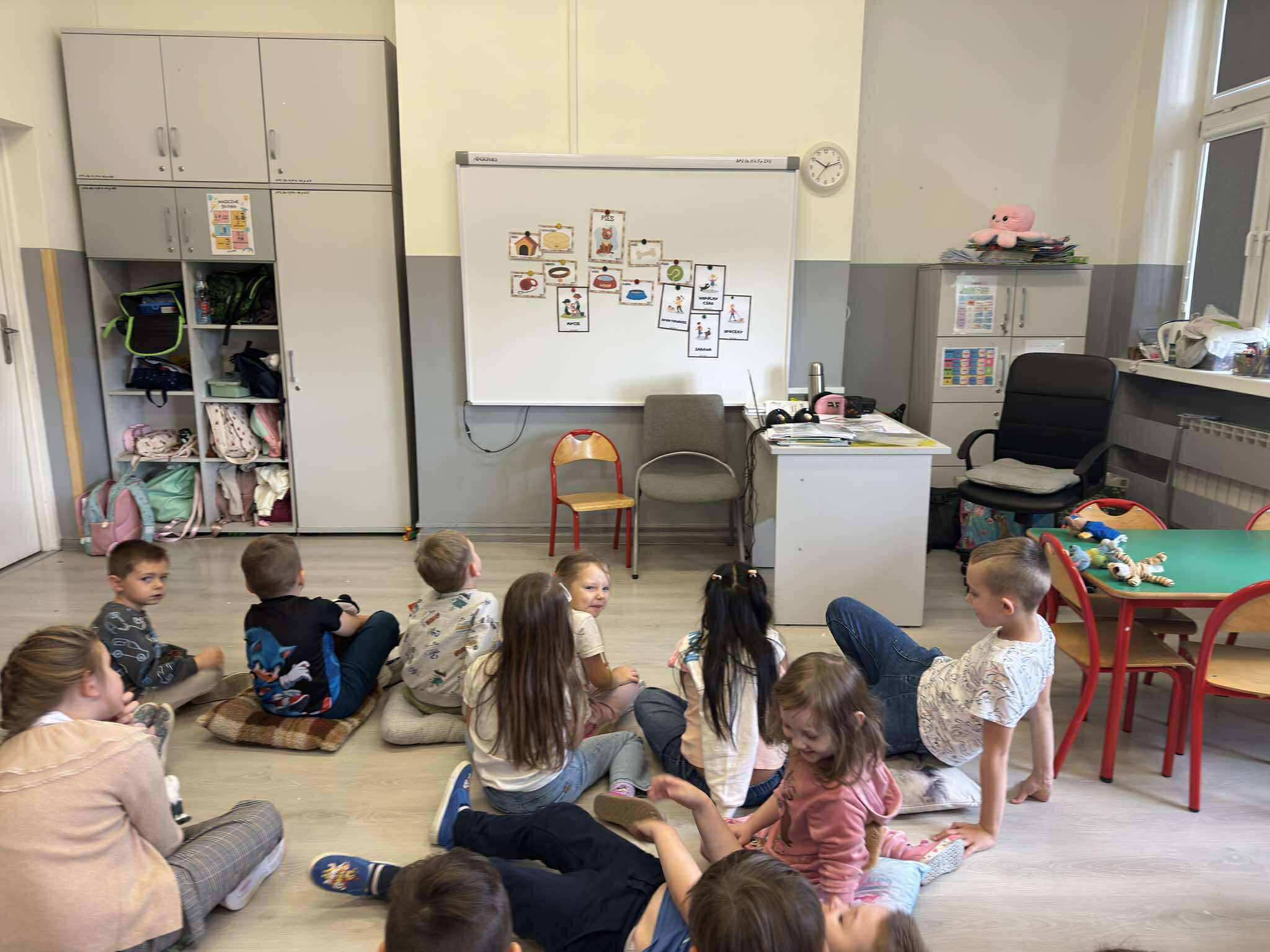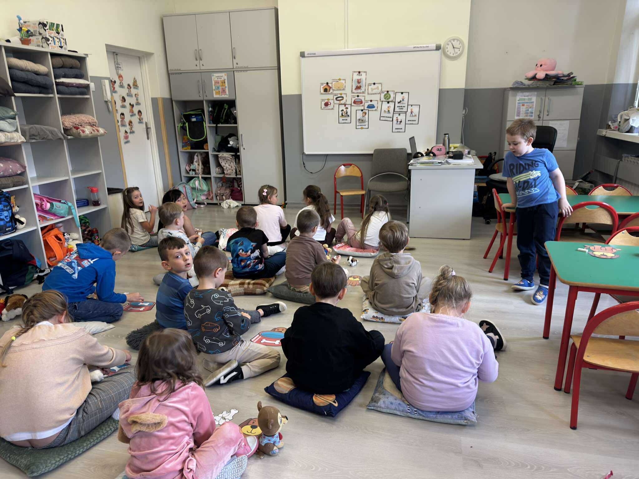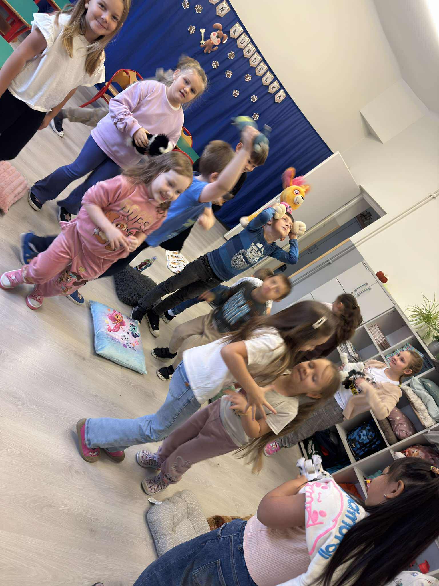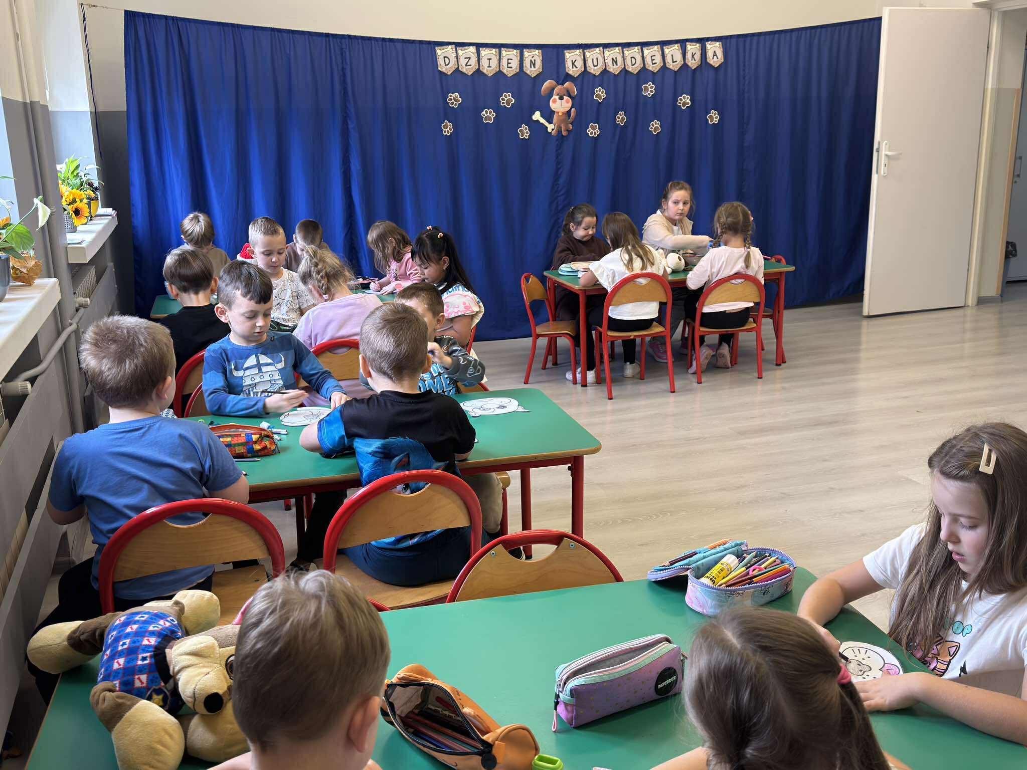 W poniedziałek 27 października 2025 roku w oddziale przedszkolnym obchodzony był Dzień Kundelka. Dzieci z zerówki poznały historię święta oraz poprzez burzę mózgu próbowały odpowiedzieć na pytania dotyczące kundelków, opieki nad nimi czy pomocy schroniskom zwierząt. Po tym działaniu dzieci uczestniczyły w zabawach przy piosenkach. Następnie wykonały maski piesków oraz kolorowankę. Bawiły się w przeliczanie kostek dla kundelków ćwicząc umiejętności dodawania i odejmowania na konkretach. Na koniec otrzymały dyplom za udział w Dniu Kundelka.