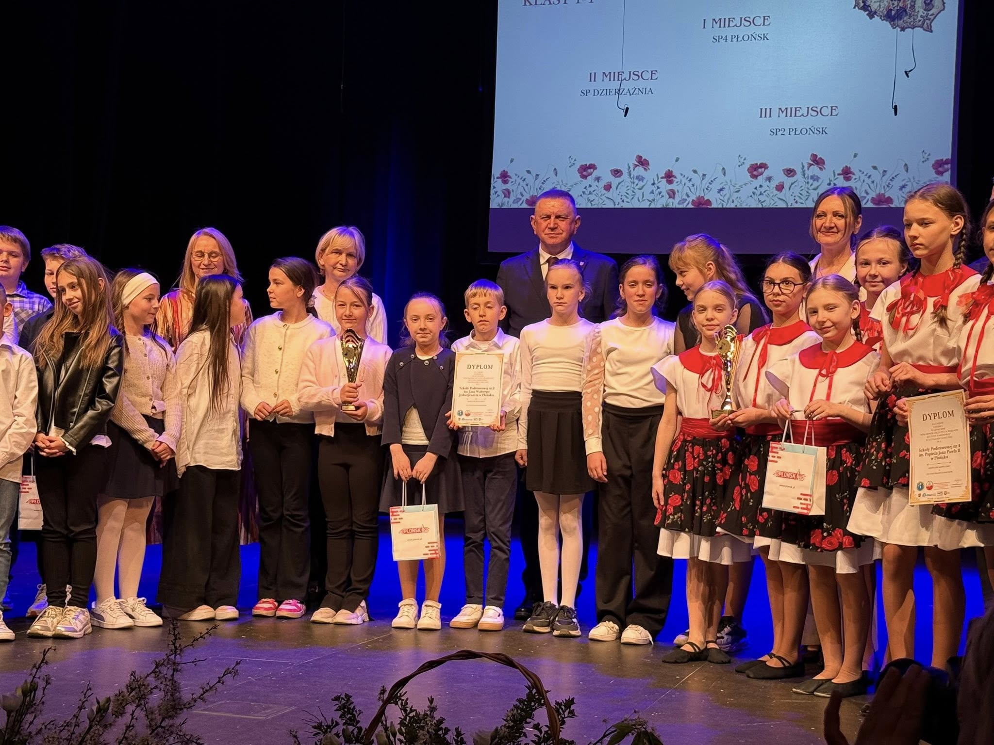 Uroczysty finał konkursu odbył dzisiaj, 23 kwietnia 2026 r. w Miejskim Centrum Kultury w Płońsku. Uczniowie naszej szkoły, którzy zdobyli I, II, III miejsce oraz wyróżnienie ( o czym informowaliśmy wcześniej) odebrali z rąk Burmistrza Andrzeja Pietrasika nagrody. Warto przypomnieć ich nazwiska.