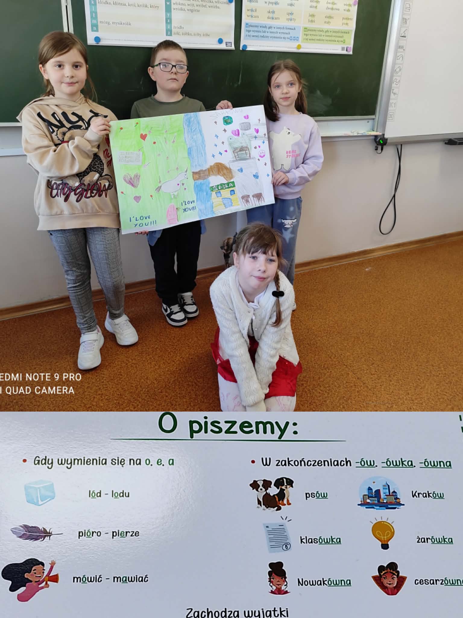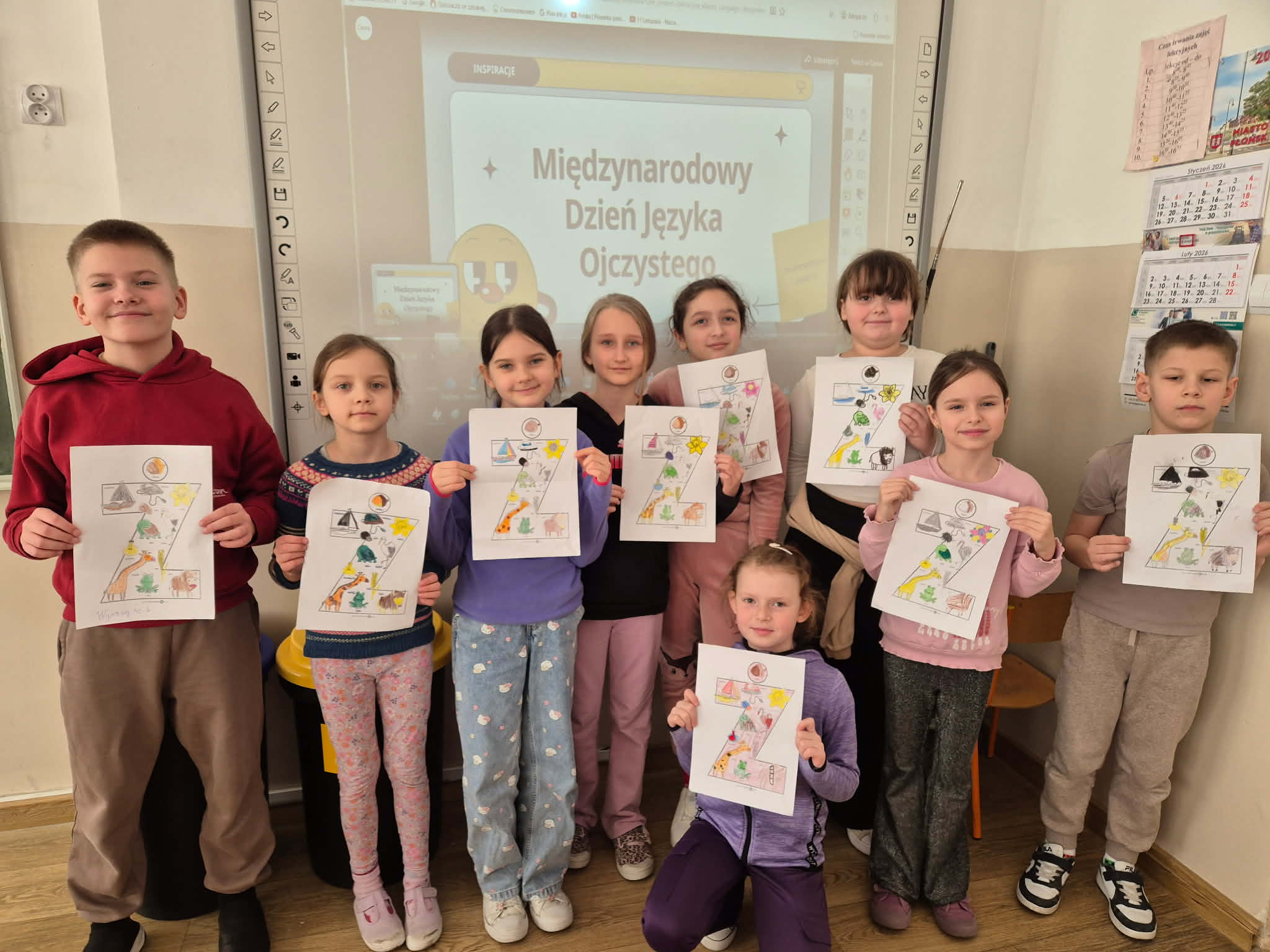 W ramach obchodów Międzynarodowego Dnia Języka Ojczystego uczniowie klas drugich poprzez gry edukacyjne, kreatywne ćwiczenia i aktywne zabawy utrwalali zasady polskiej pisowni. Dzieci nie tylko doskonaliły czujność ortograficzną, ale też poszerzały słownictwo, ćwiczyły wypowiedzi. Uczniowie uświadomili sobie jak ważna jest poprawność języka, którym posługują się na co dzień.