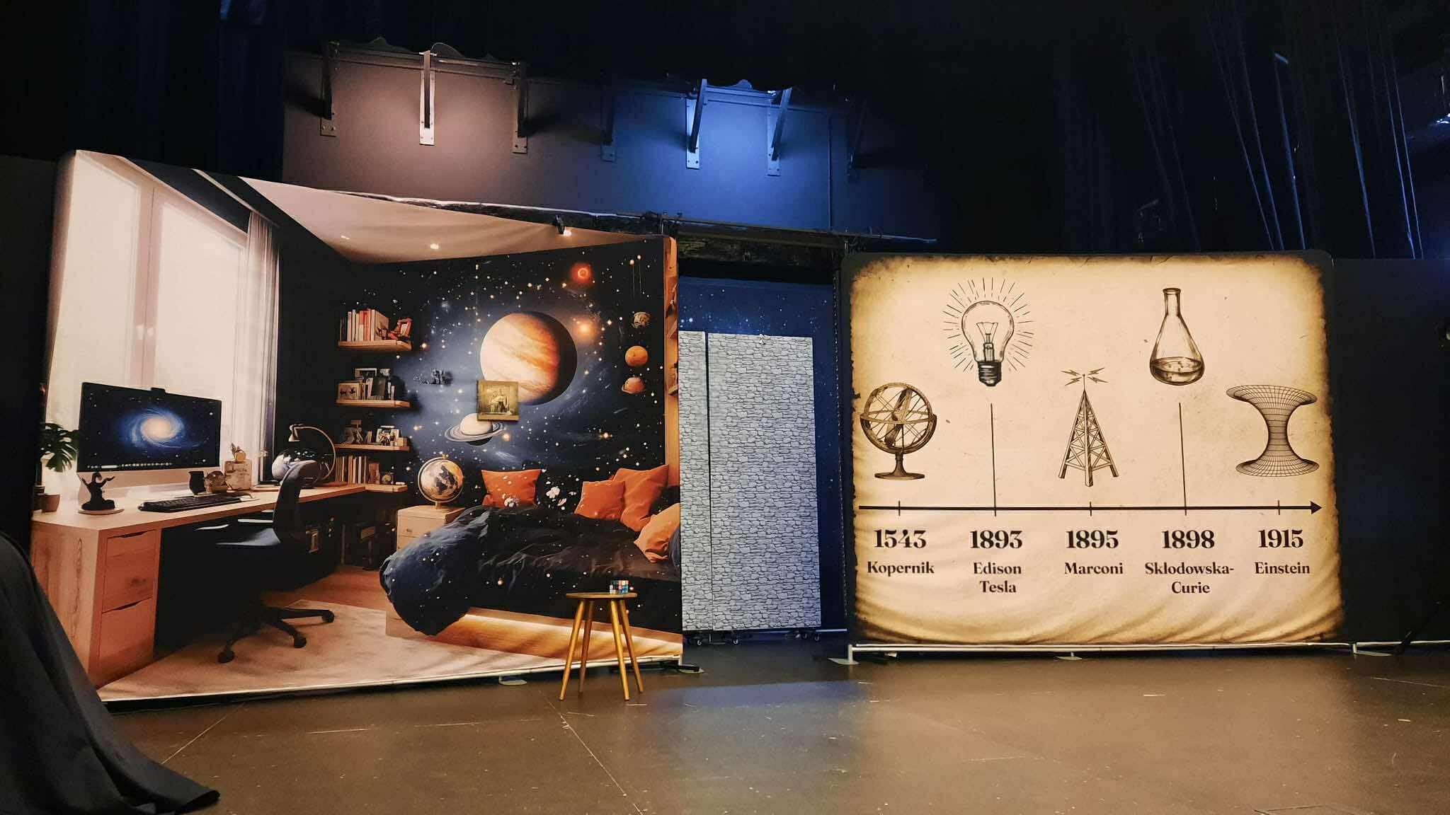 Aktorzy zabrali nas w niezwykłą wyprawę poprzez ostatnie stulecia – od czasów Mikołaja Kopernika, przez wynalezienie prądu, odkrycia Marii Skłodowskiej-Curie, aż po teorię Einsteina. ![]()
