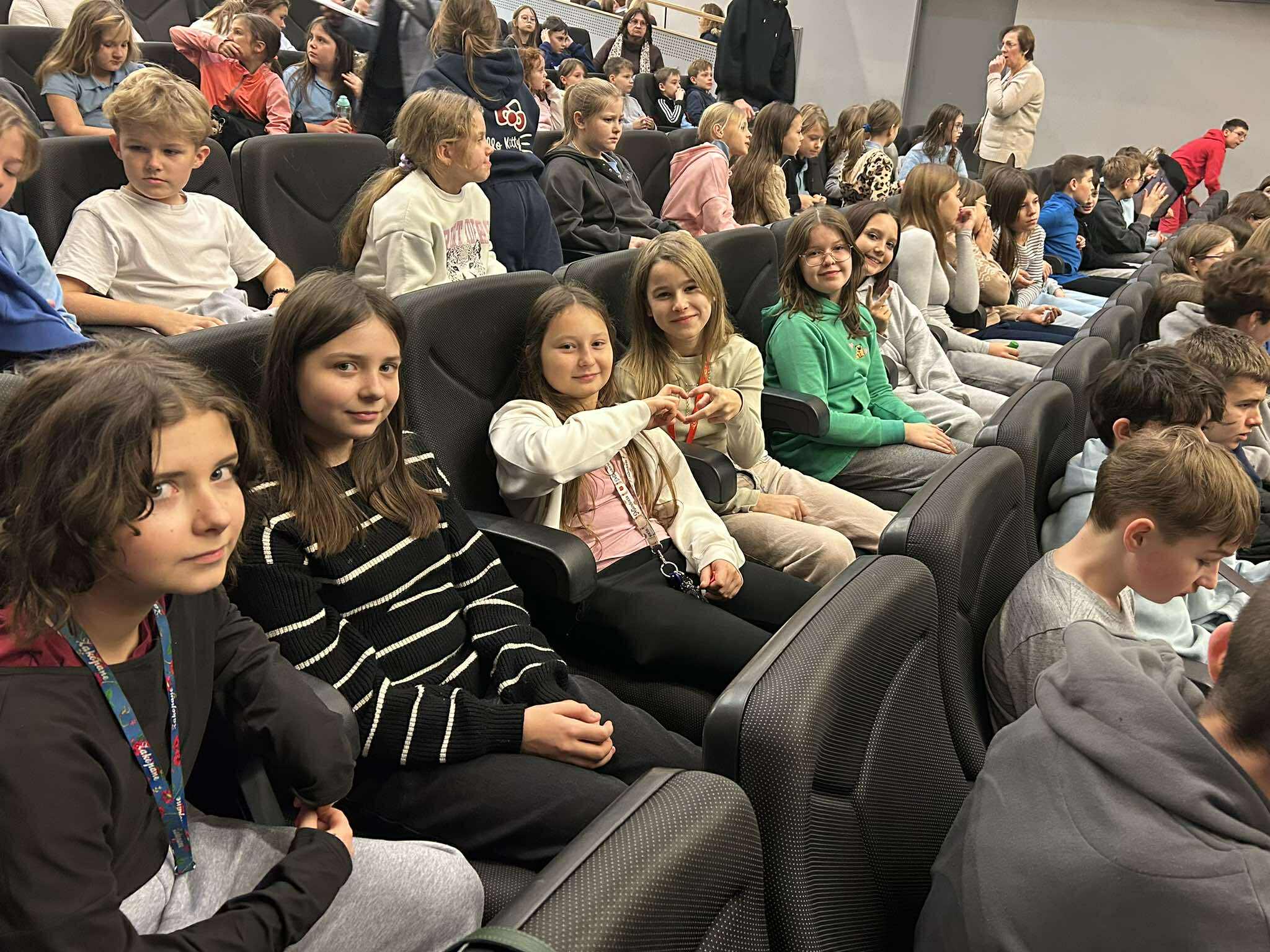 Uczniowie klas 6b i 7c uczestniczyli w przedstawieniu „Podróż w czasie. Historia wielkich wynalazców XIX i XX wieku” przygotowanym przez Teatr Nowoczesny z Krakowa w Miejskim Centrum Kultury w Płońsku.