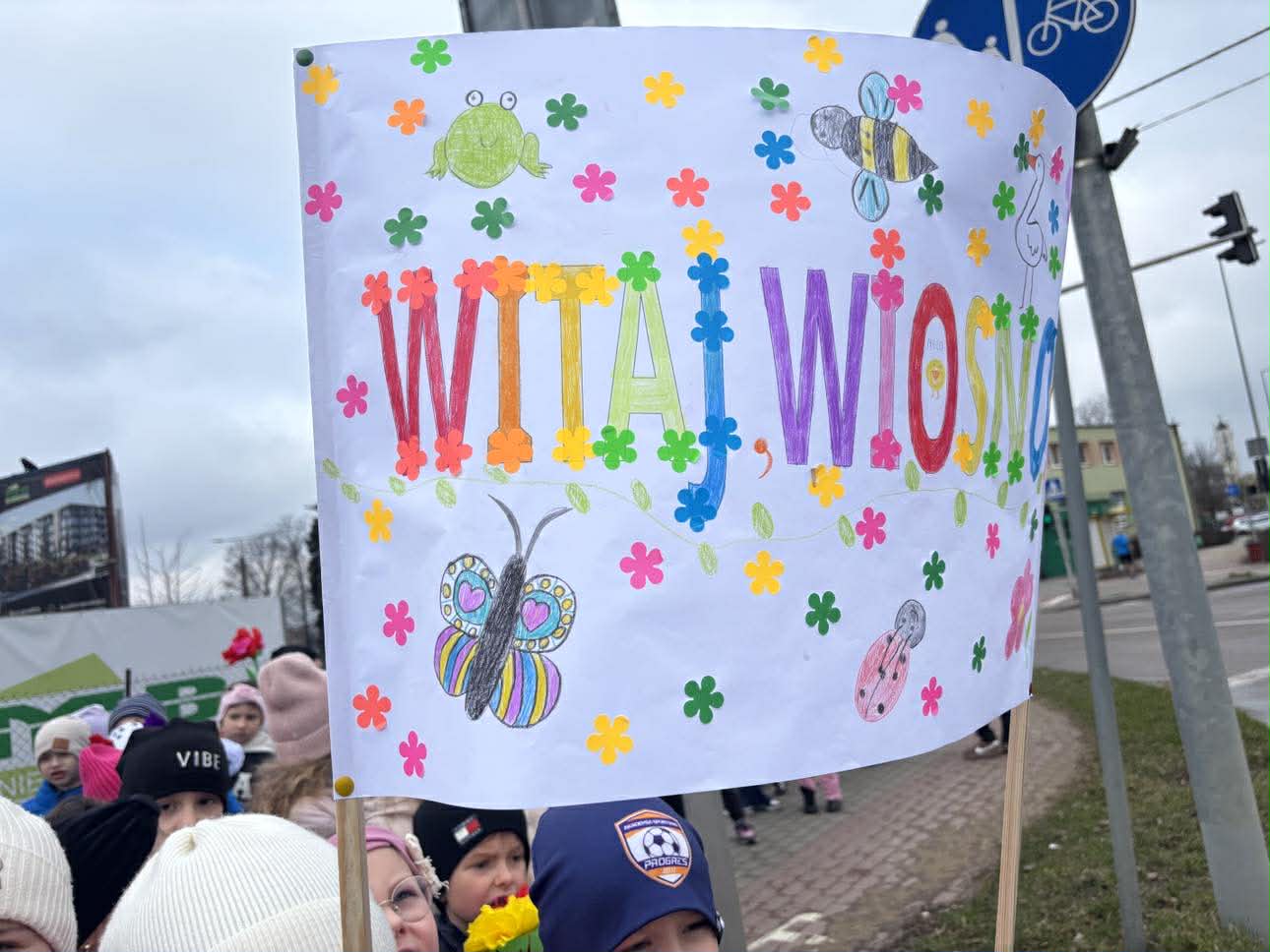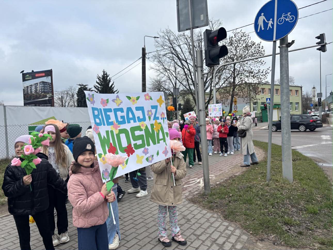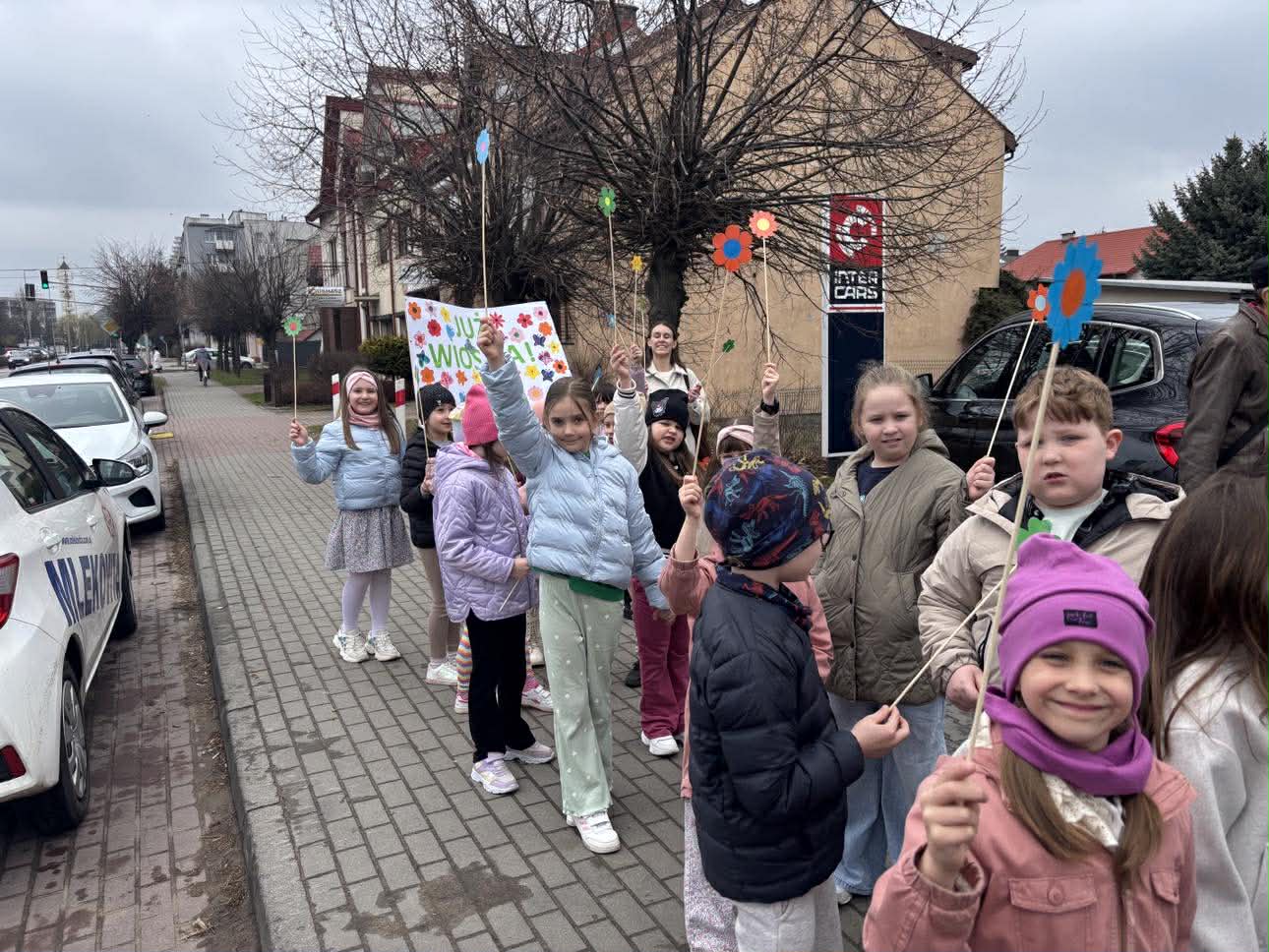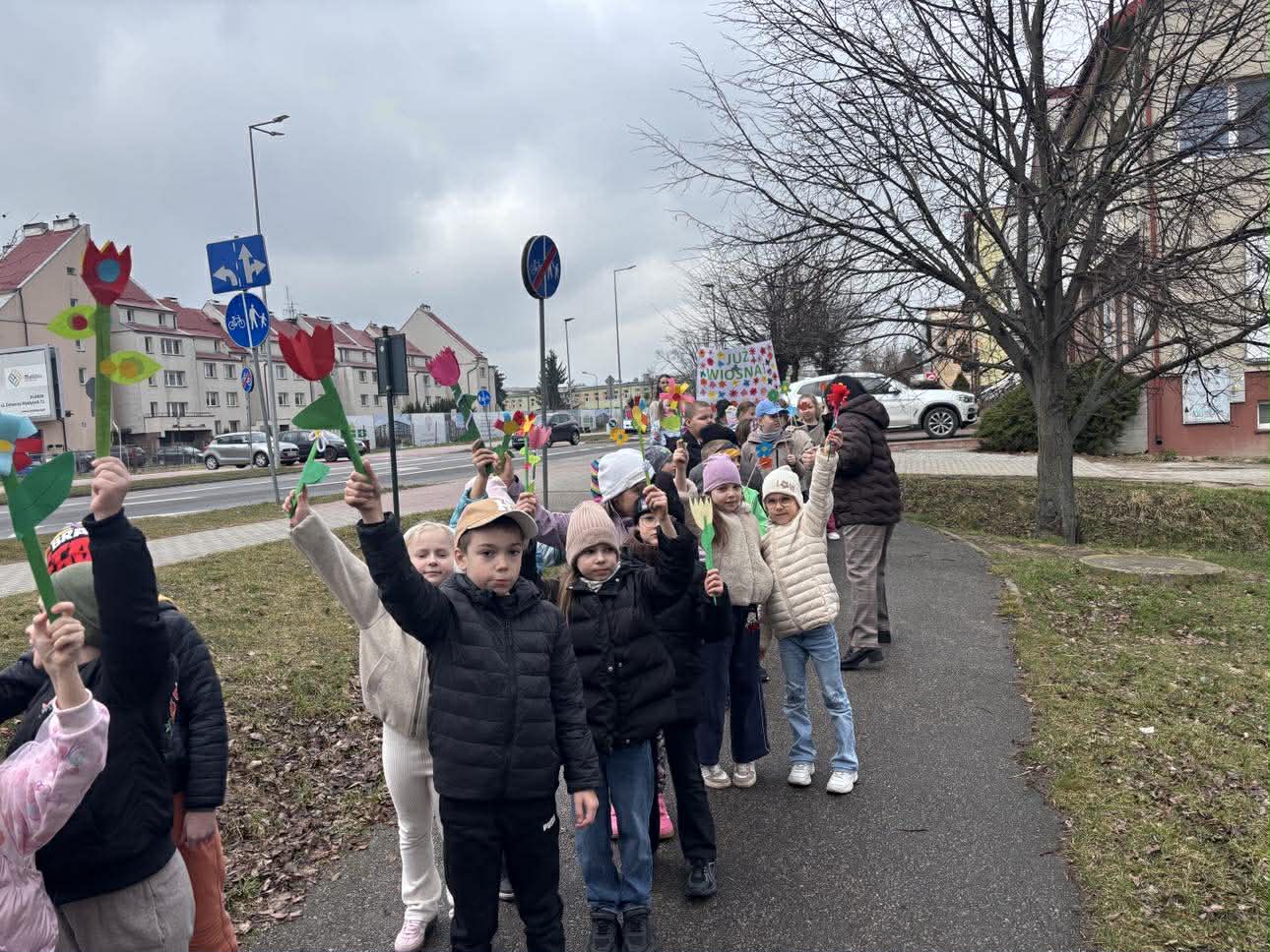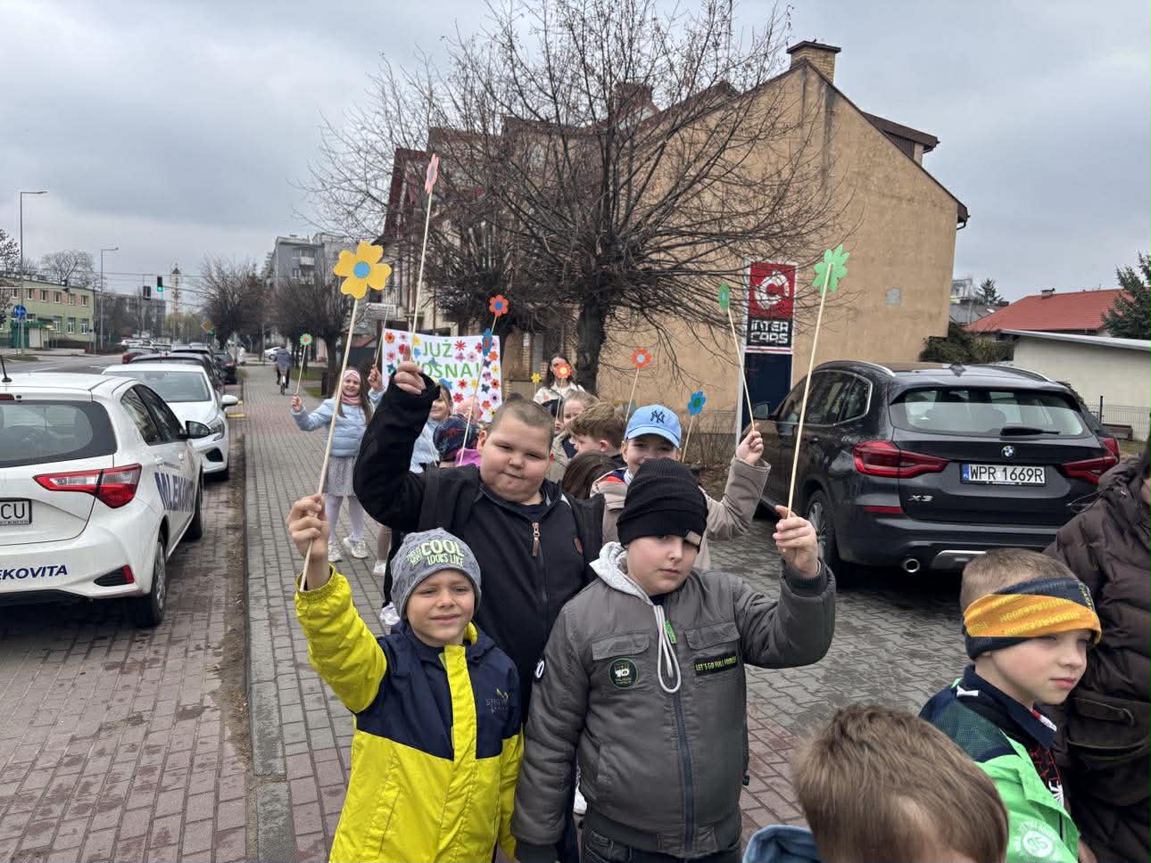 W piątek, 20 marca 2026 roku, uczniowie klas pierwszych uroczyście powitali wiosnę w parku. Mimo pochmurnej pogody, dzieci z entuzjazmem maszerowały w barwnym korowodzie, niosąc własnoręcznie przygotowane kwiaty i hasła. Ważnym punktem programu był również element sportowy – wszyscy uczestnicy z sukcesem przebiegli wyznaczony dystans, świętując nadejście nowej pory roku w ruchu i radosnej atmosferze.