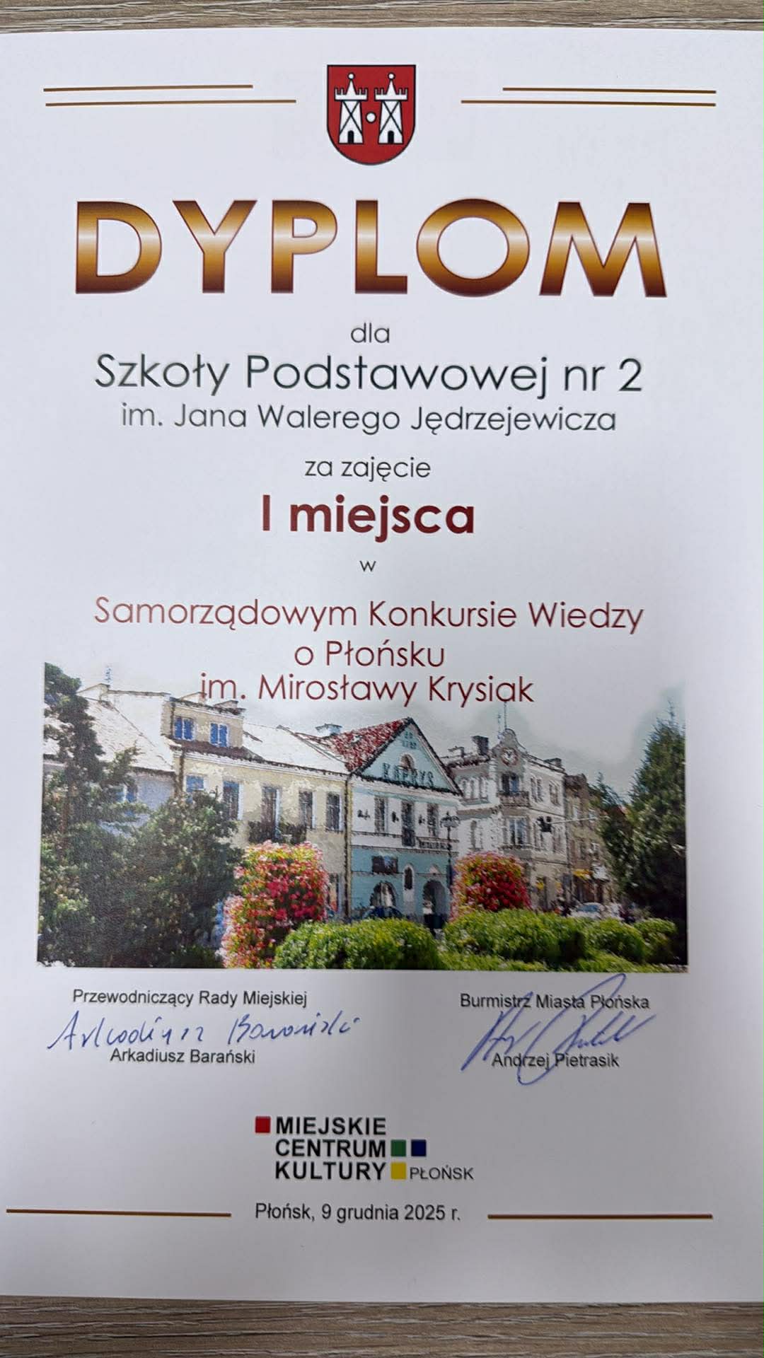 zwyciężyła w 24. edycji Samorządowego Konkursu Wiedzy o Płońsku im. Mirosławy Krysiak, którego organizatorem i pomysłodawcą jest Pracownia Dokumentacji Dziejów Miasta Płońska im. Mirosławy Krysiak przy wsparciu organizacyjnym pracowników Wydziału Polityki Społecznej w Urzędzie Miejskim w Płońsku z Dyrektorem Kariną Kmiecińską na czele.