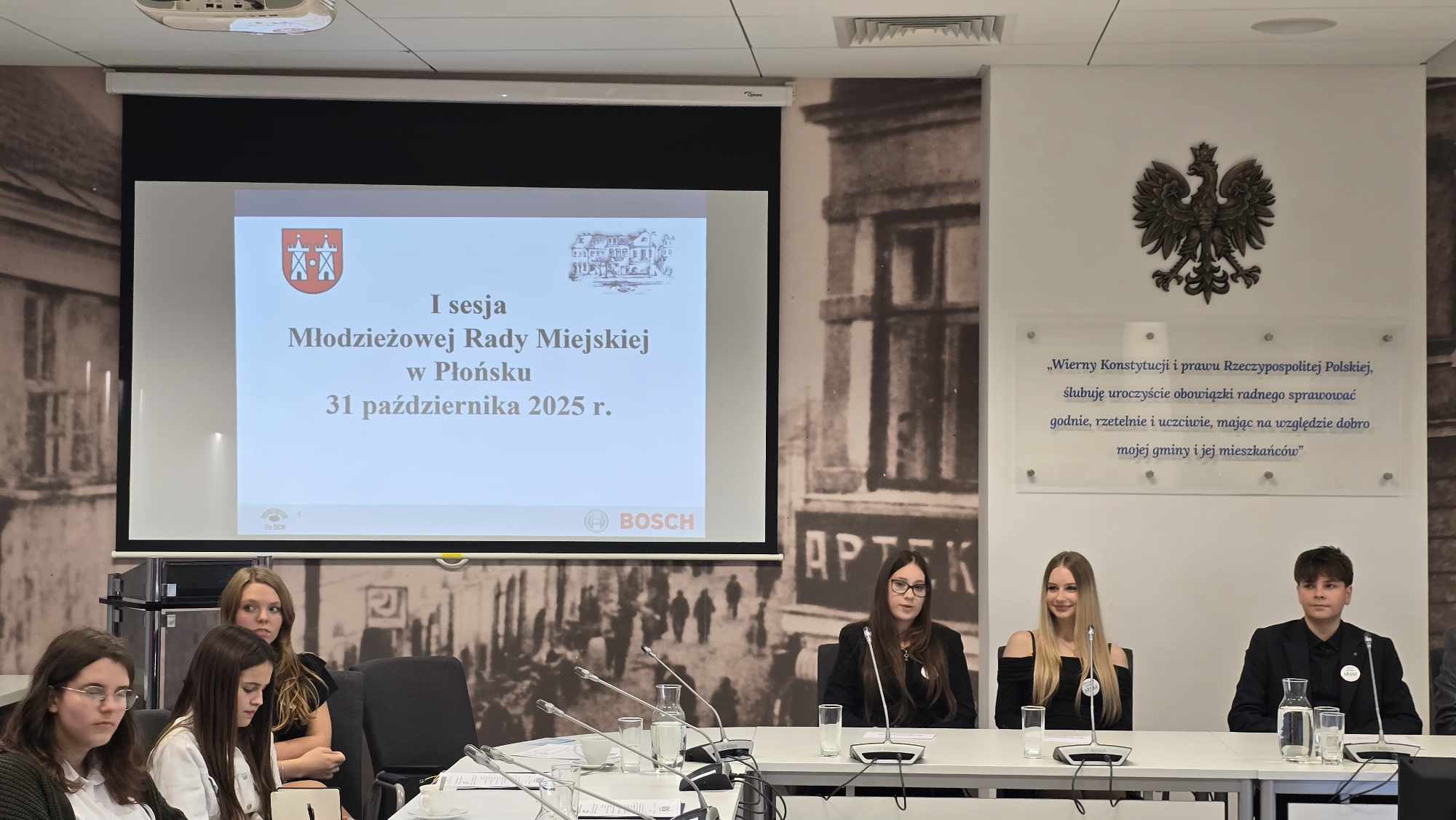 Dnia 31 października w Urzędzie Miejskim w Płońsku odbyła się sesja inauguracyjna Młodzieżowej Rady Miejskiej. Młodzi radni złożyli uroczyste ślubowanie, że będą godnie, rzetelnie i uczciwie pełnić swoje obowiązki. Z rąk pani wiceburmistrz Teresy Kozery otrzymali zaświadczenie potwierdzające otrzymanie mandatu radnego. W tej uroczystej chwili uczniom naszej szkoły towarzyszyli rodzice, Pan Dyrektor Jarosław Chyliński, Szkolny Koordynator MRM pani Magdalena Wyrczyńska oraz pan Arkadiusz Barański – Przewodniczący Rady Miejskiej wraz z radnymi.