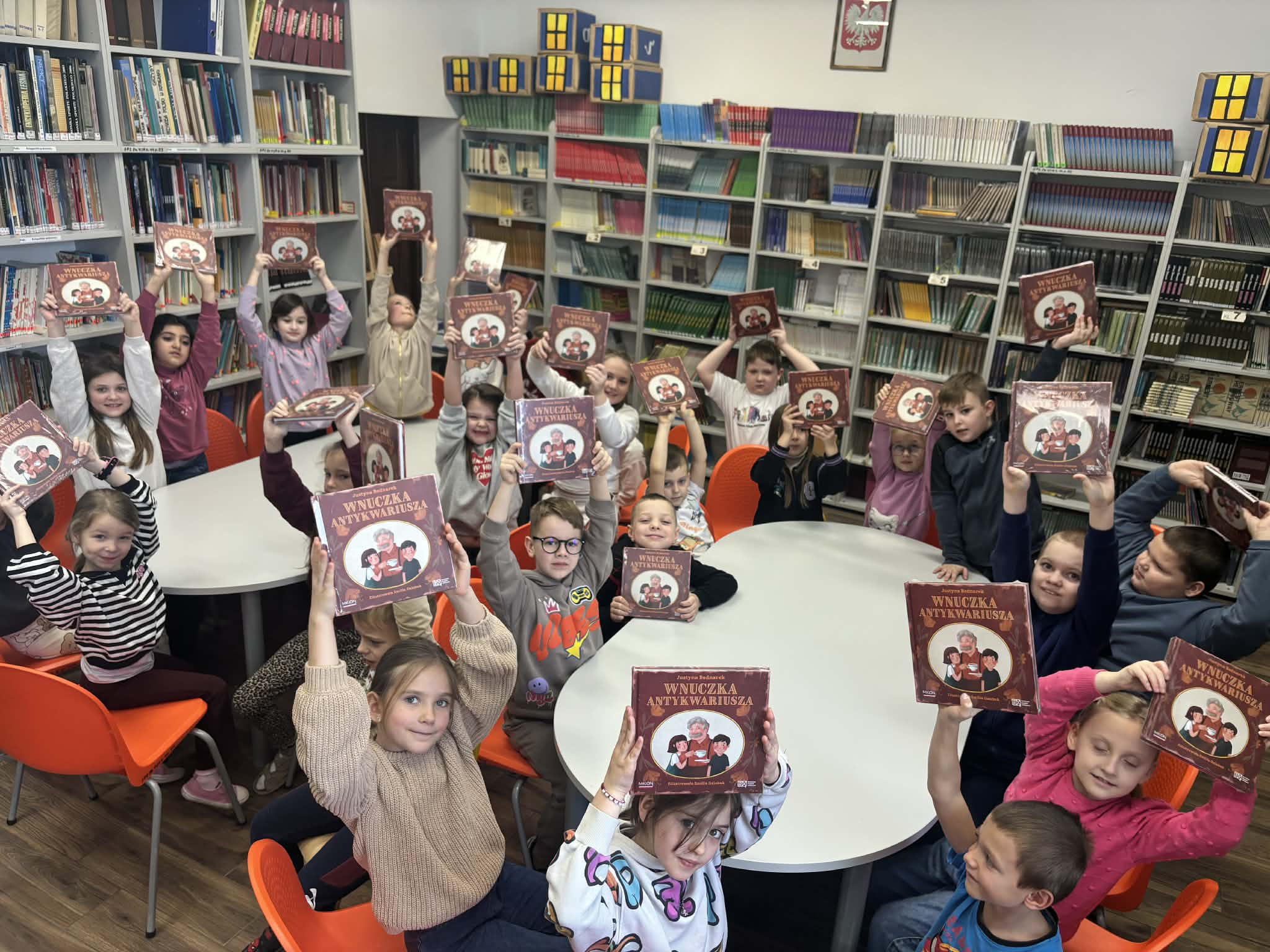 W bibliotece szkolnej odbyły się spotkania z uczniami klas pierwszych. Podczas zajęć dzieci wysłuchały wybranych opowiadań Justyny Bednarek z książki „Wnuczka Antykwariusza”. Teksty przeniosły uczniów w odległą przeszłość, gdzie dziewczynka o imieniu Gabrysia wsłuchuje się w opowieści swojego dziadka – pełne humoru, wzruszeń oraz dramatycznych wydarzeń. Spotkanie było okazją do rozwijania zainteresowań czytelniczych i rozmowy o znaczeniu pamięci oraz rodzinnych historii. Na zakończenie każdy uczeń otrzymał książkę na własność dzięki kolejnej edycji kampanii „Mała książka – wielki człowiek”. 09.01.2026