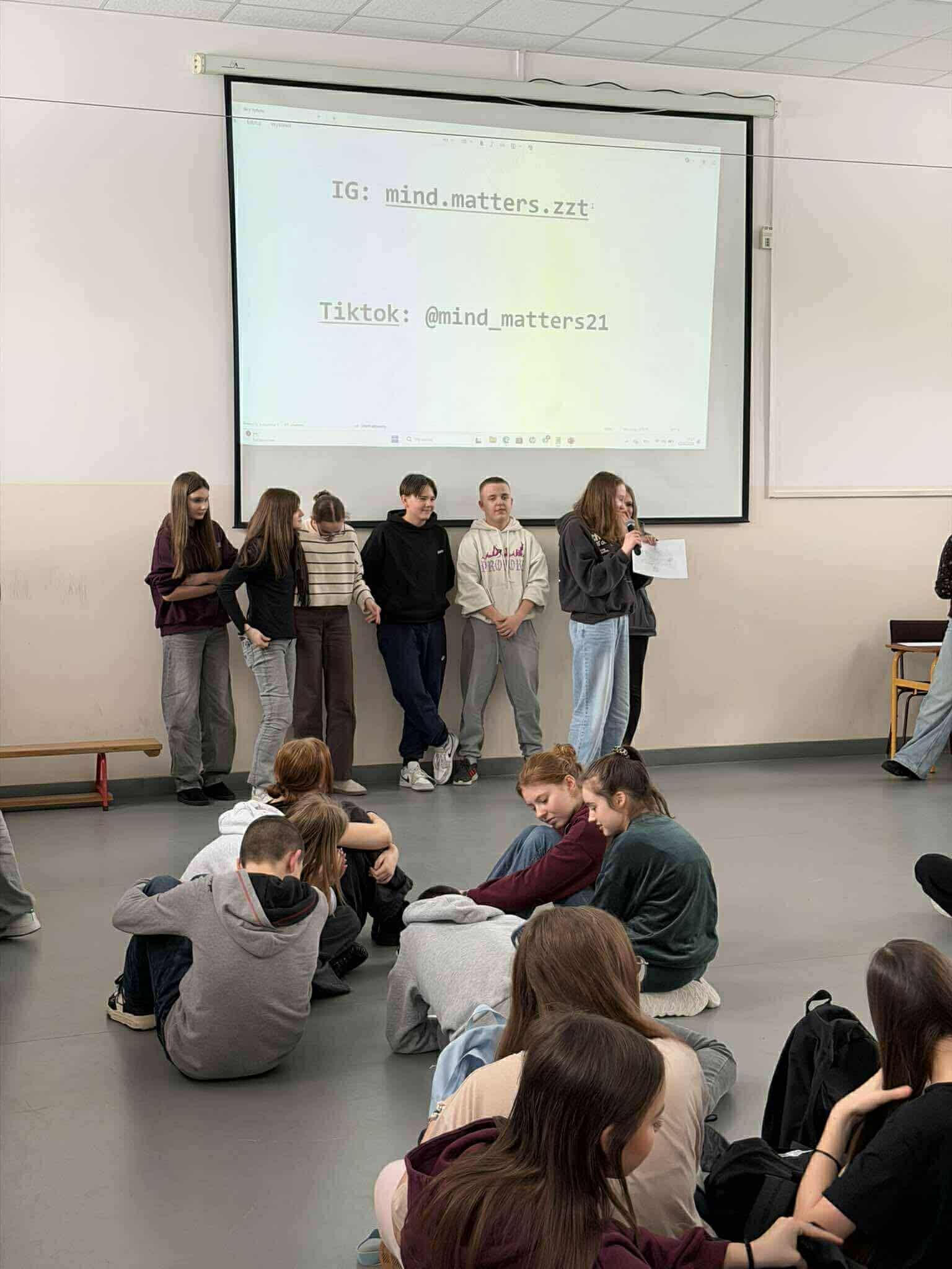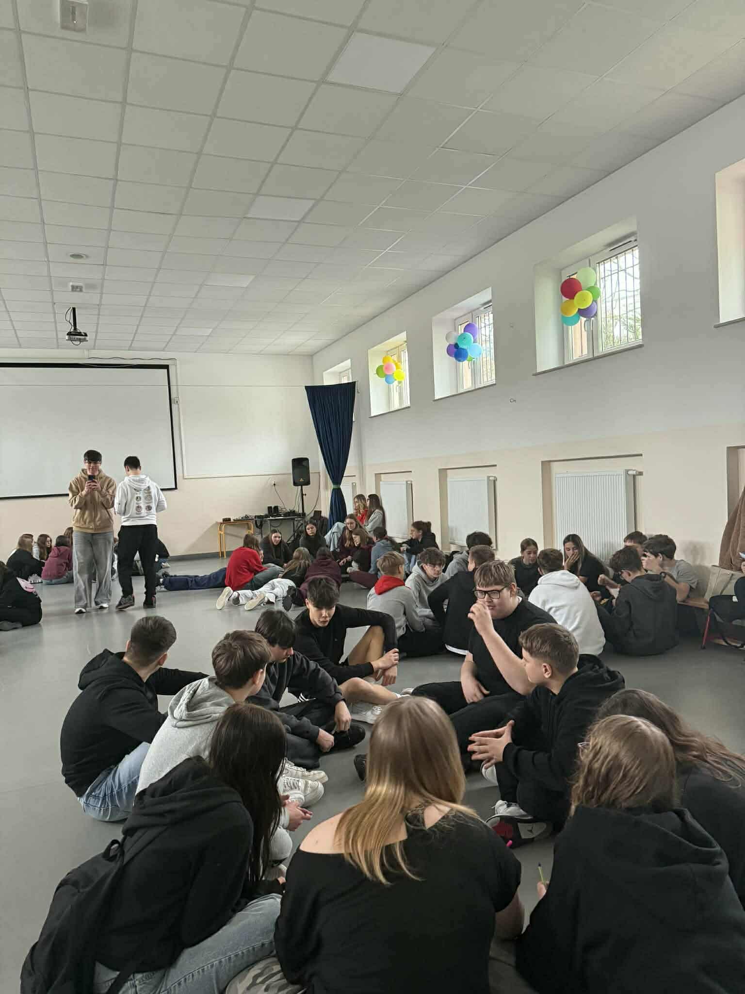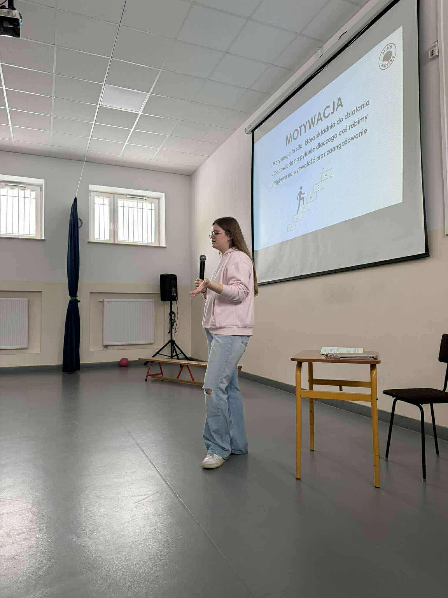 Uczniowie z I Liceum im. H. Sienkiewicza w Płońsku, tworzący zespół „Mind Matters”, poprowadzili w naszej szkole inspirujące zajęcia dla klas 7 i 8 poświęcone zdrowiu psychicznemu, motywacji oraz radzeniu sobie ze stresem przed egzaminami. Spotkanie było okazją do szczerej rozmowy o emocjach, presji związanej z nauką oraz sposobach budowania wiary w siebie. Prowadzący podzielili się praktycznymi wskazówkami, ćwiczeniami oraz własnym doświadczeniem, pokazując, że o zdrowiu psychicznym warto i trzeba rozmawiać. Dziękujemy zespołowi „Mind Matters” za zaangażowanie, otwartość i stworzenie bezpiecznej przestrzeni do rozmowy. To było bardzo wartościowe spotkanie dla naszych uczniów!