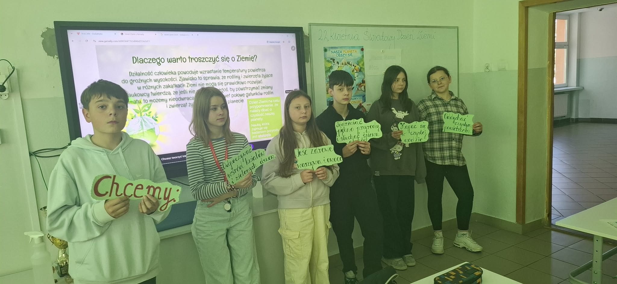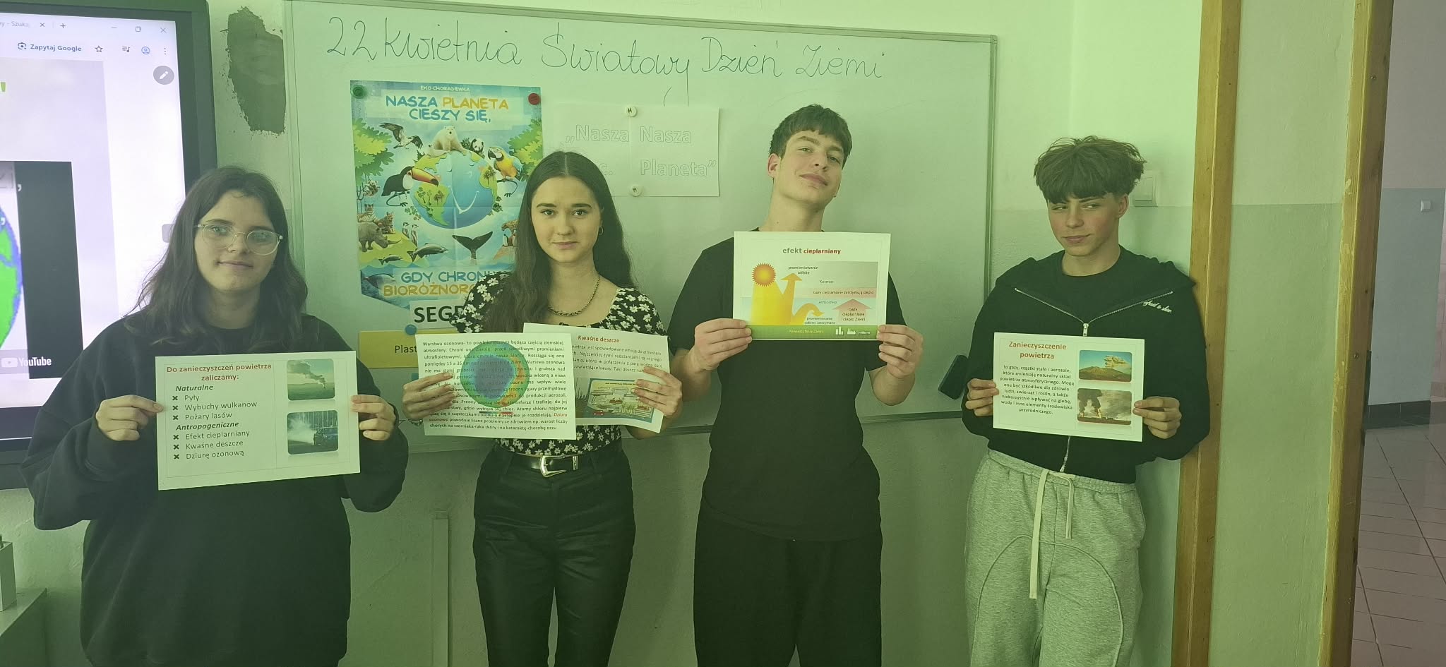 Z okazji Światowego Dnia Ziemi uczniowie klas 5–8 wzięli udział w wyjątkowych zajęciach poświęconych ochronie naszej planety 🌱. Podczas lekcji biologii i geografii poruszono ważne zagadnienia, takie jak recykling ♻️, zanieczyszczenia środowiska 🚯, efekt cieplarniany 🌡️ oraz dziura ozonowa 🌤️.