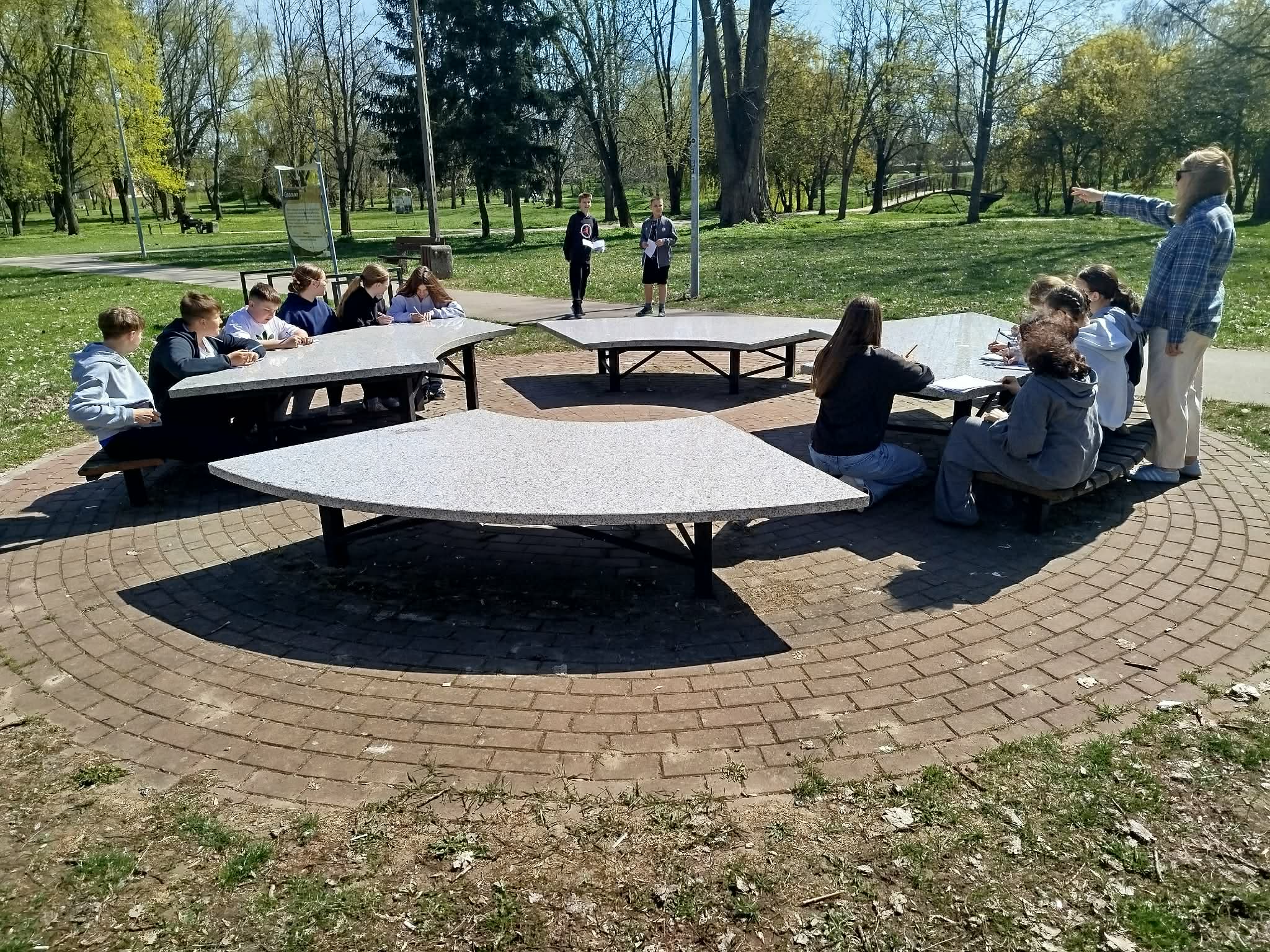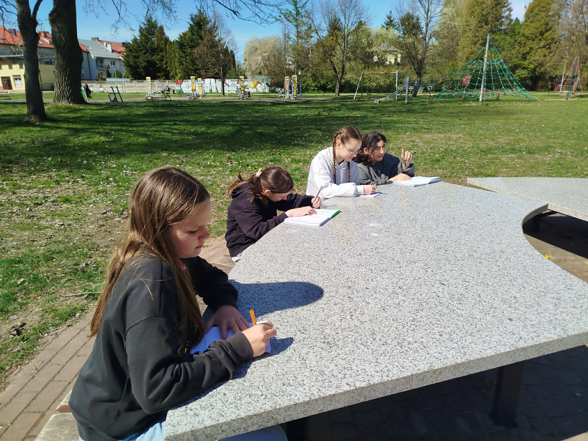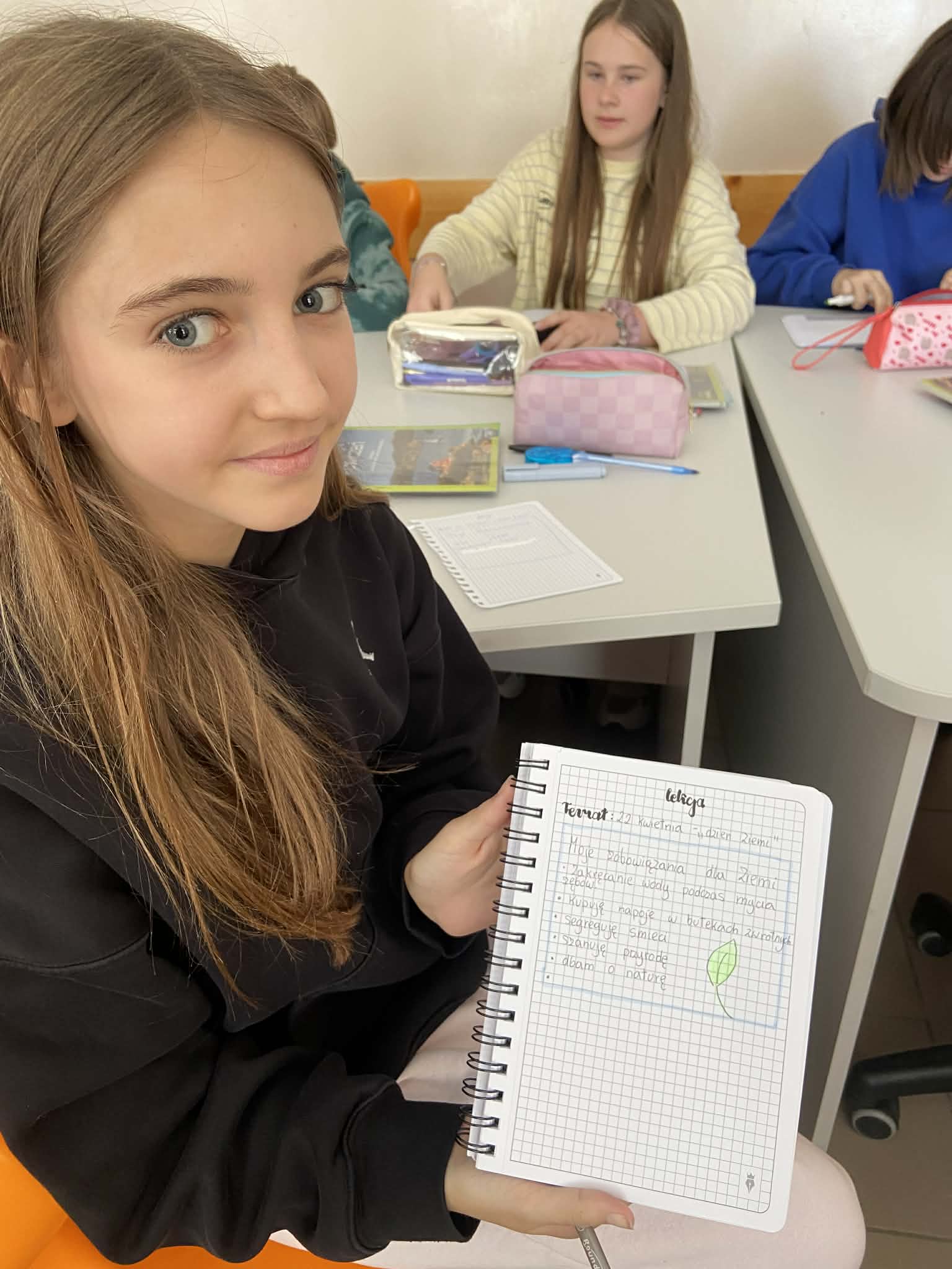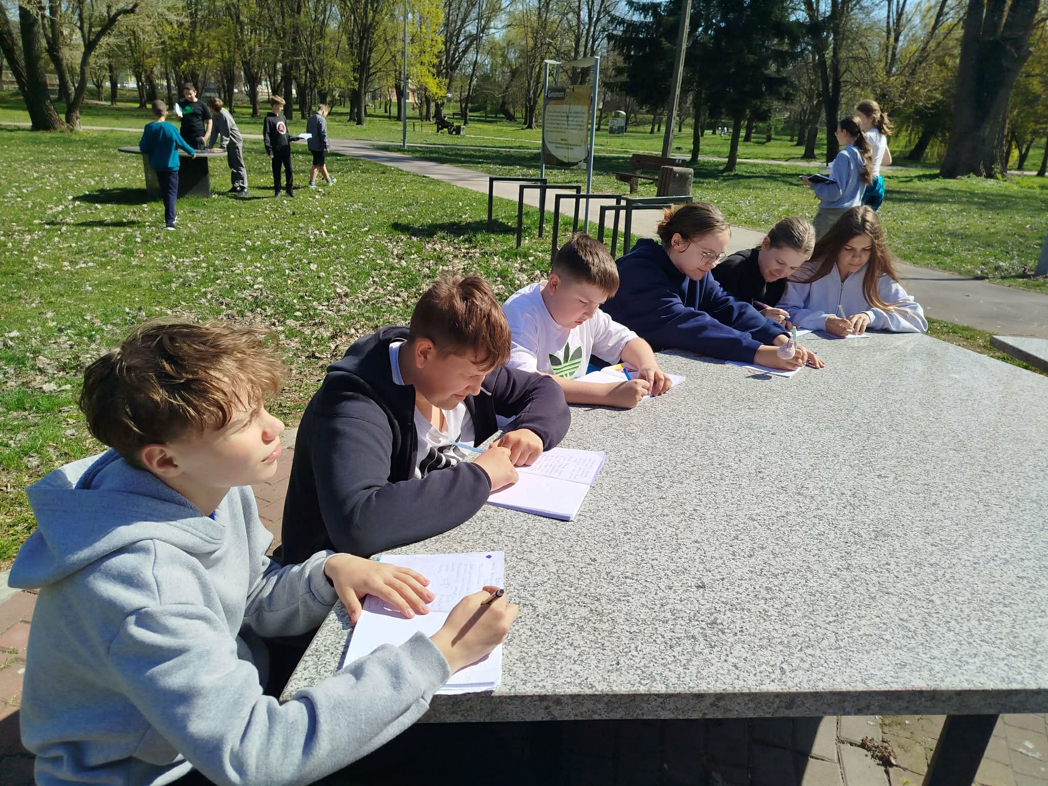 Zajęcia miały różnorodny charakter – odbywały się zarówno w formie terenowej 🚶‍♀️🌳, jak i stacjonarnej 🏫, co pozwoliło uczniom uczyć się poprzez doświadczenie i aktywne działanie. Uczestnicy rozwiązywali zagadki 🧩, wykonywali zadania interaktywne 💻, brali udział w dyskusjach, pisali „Swoje zobowiązania dla Ziemi” 💬 oraz pracowali zespołowo 🤝, rozwijając swoją świadomość ekologiczną.