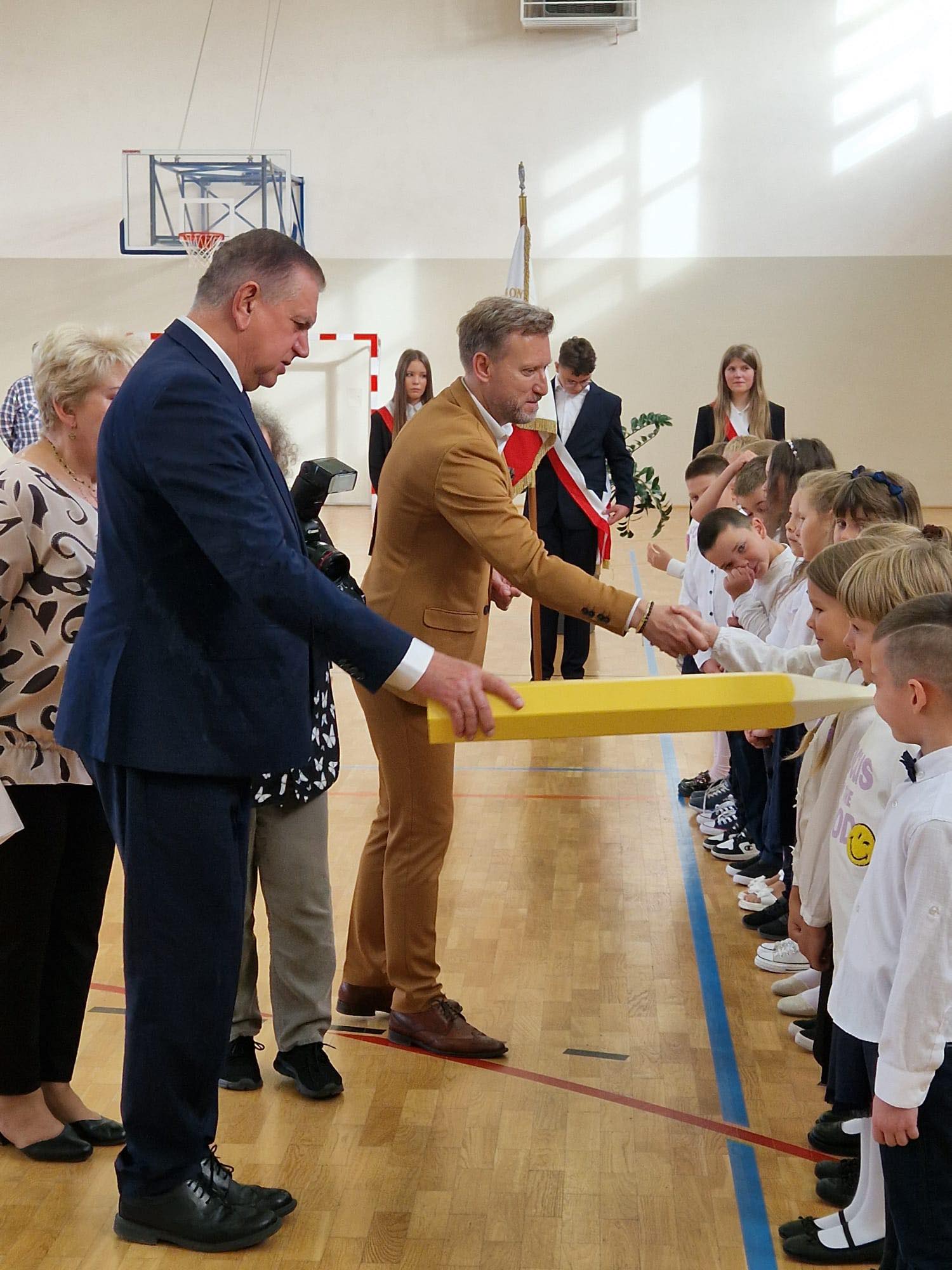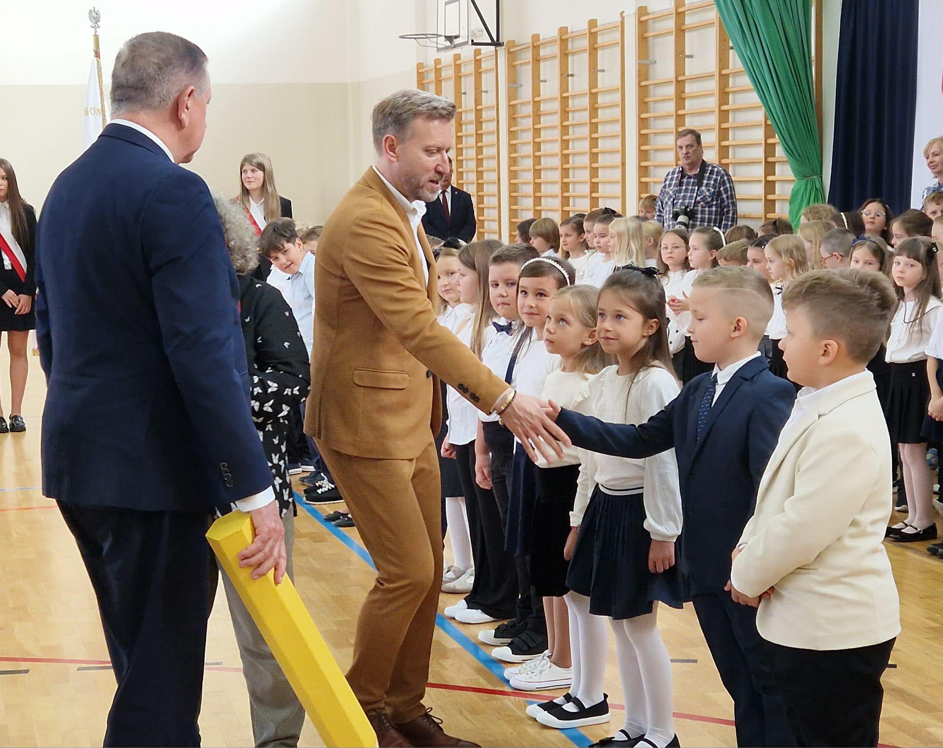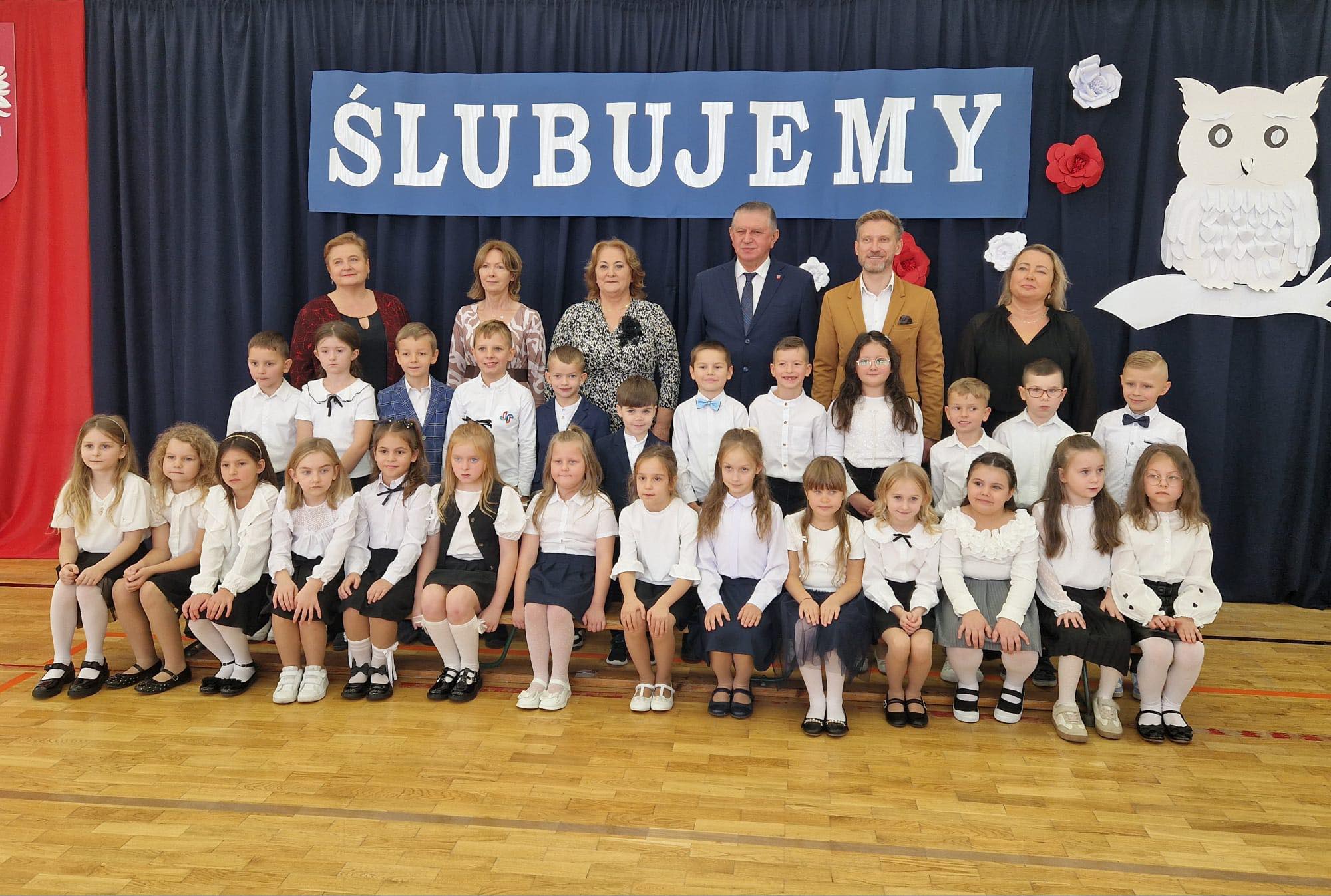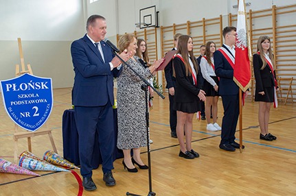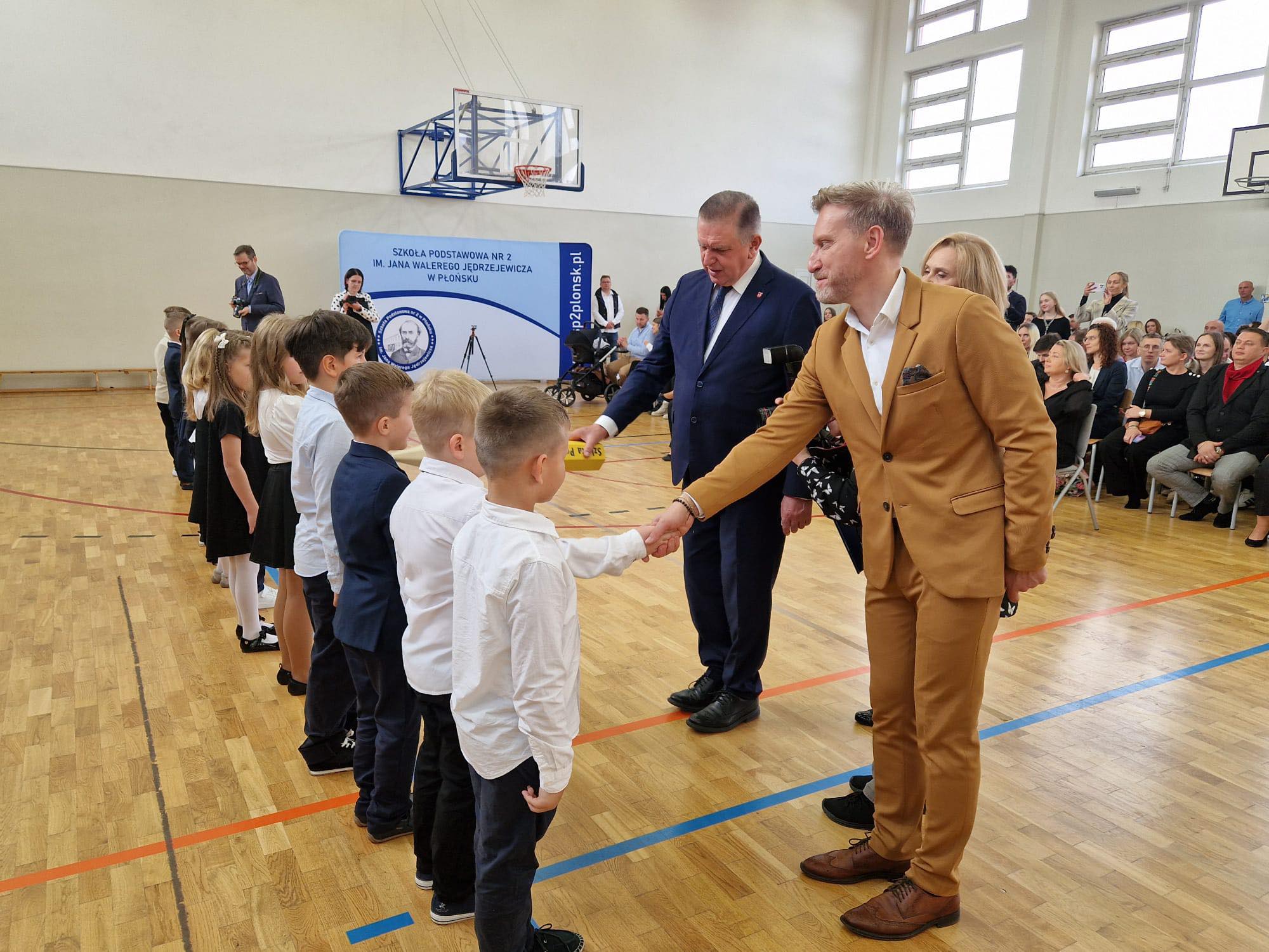 To wydarzenie zawsze wzbudza wiele emocji wśród uczniów, nauczycieli, a także rodziców. Na ceremonię przybyli zaproszeni goście: Burmistrz Andrzej Pietrasik, Proboszcz Parafii Św. M. Kolbe Zbigniew Sajewski i Przewodnicząca Rady Rodziców Magdalena Borowska. W uroczystości uczestniczyli również Dyrektor Szkoły Jarosław Chyliński, Panie Wicedyrektor Joanna Ostrowska i Marianna Kozłowska oraz rodzice pierwszoklasistów. Po wygłoszonych przemowach uczniowie klas pierwszych przedstawili program artystyczny, w którym zaprezentowali swoje umiejętności recytatorskie i wokalne. To był egzamin, który zdali na szóstkę. Najważniejszym momentem uroczystości było złożenie przez dzieci ślubowania na sztandar szkoły oraz pasowanie na uczniów, którego dokonali Burmistrz Miasta i Dyrektor Szkoły. W ten sposób pierwszoklasiści zostali oficjalnie włączeni do grona uczniów Szkoły Podstawowej nr 2 im. Jana Walerego Jędrzejewicza w Płońsku. Zwieńczeniem wydarzenia były pamiątkowe zdjęcia klasowe. Uczniowie otrzymali dyplomy i legitymacje szkolne, a od Rady Rodziców bony na sprzęt sportowy dla każdej klasy. Nie zabrakło też upominków od najbliższych.