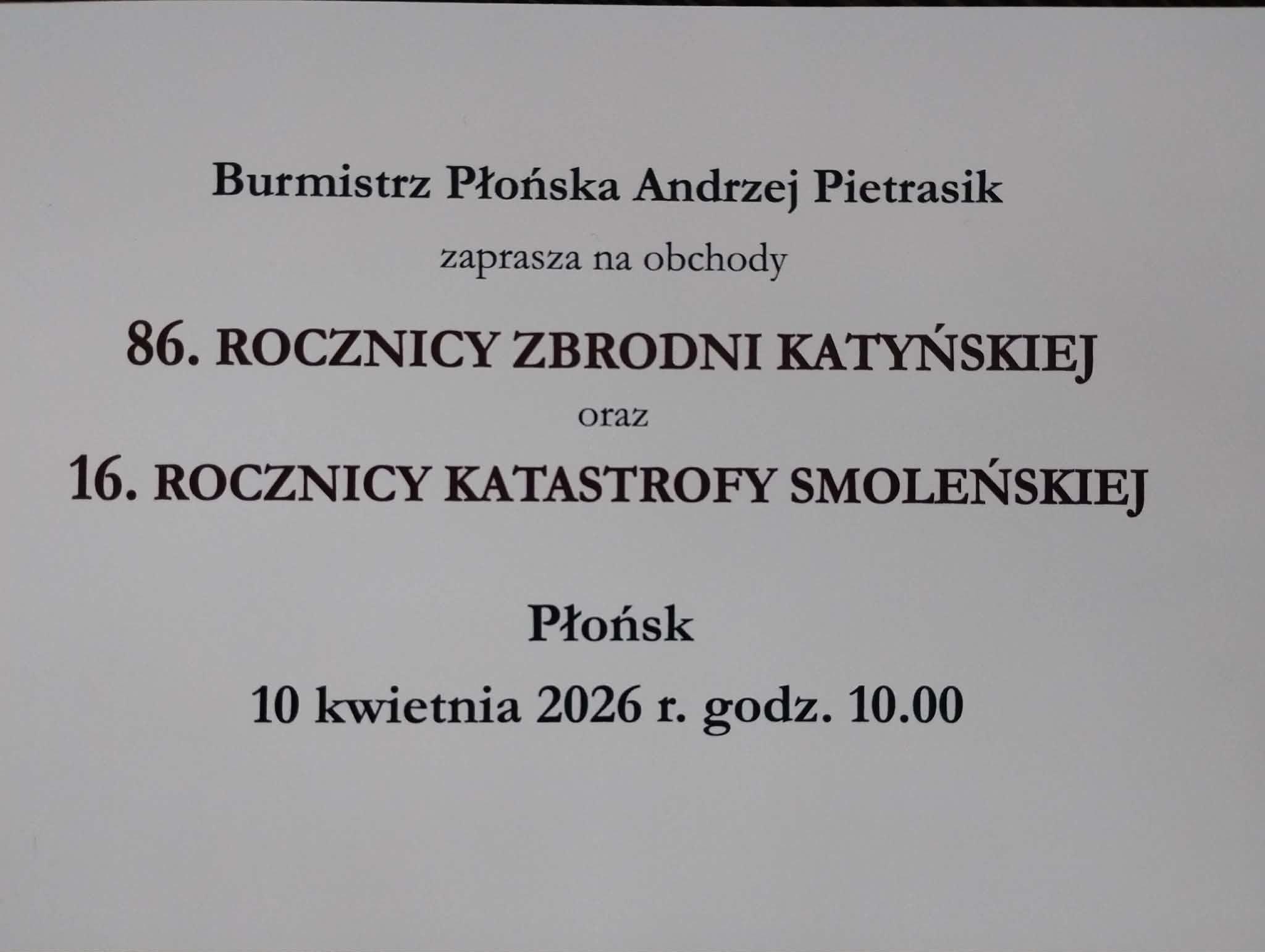 Uroczystości miejskie upamiętniające Zbrodnię Katyńską i Katastrofę Smoleńską.