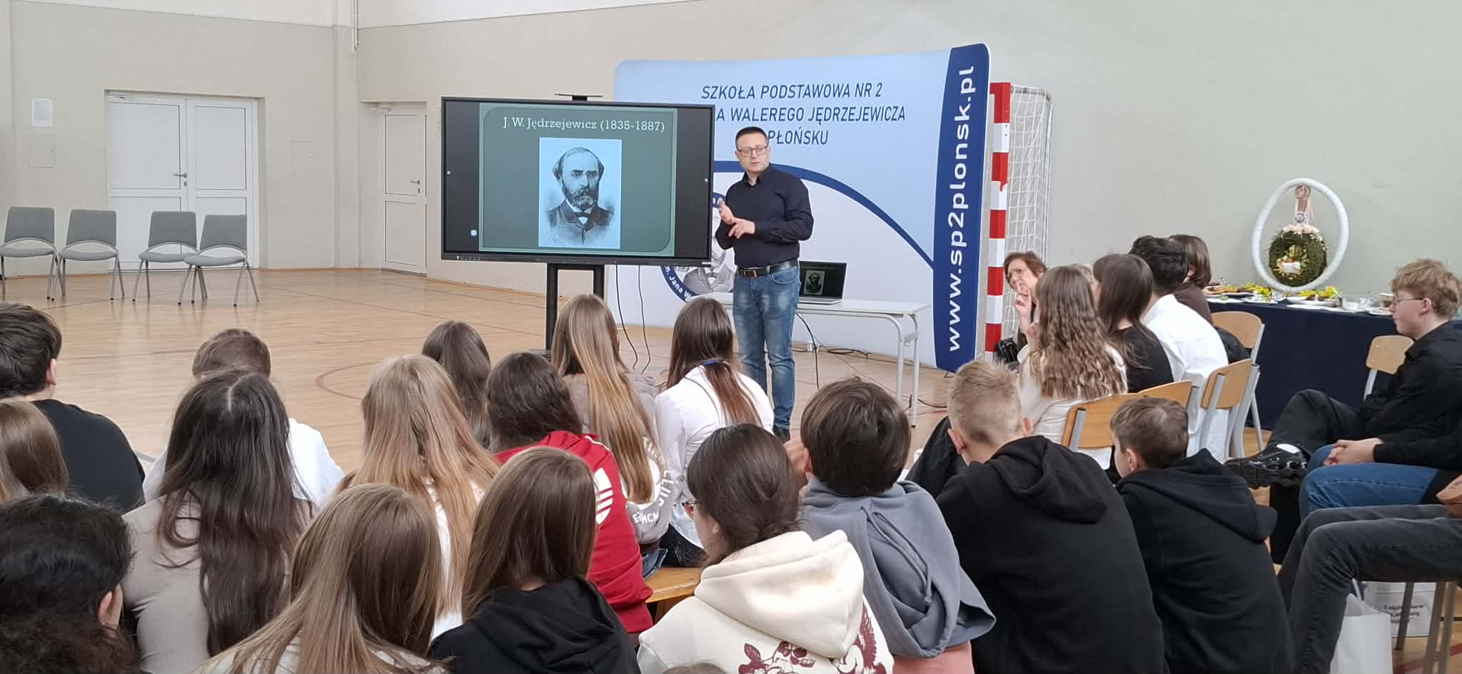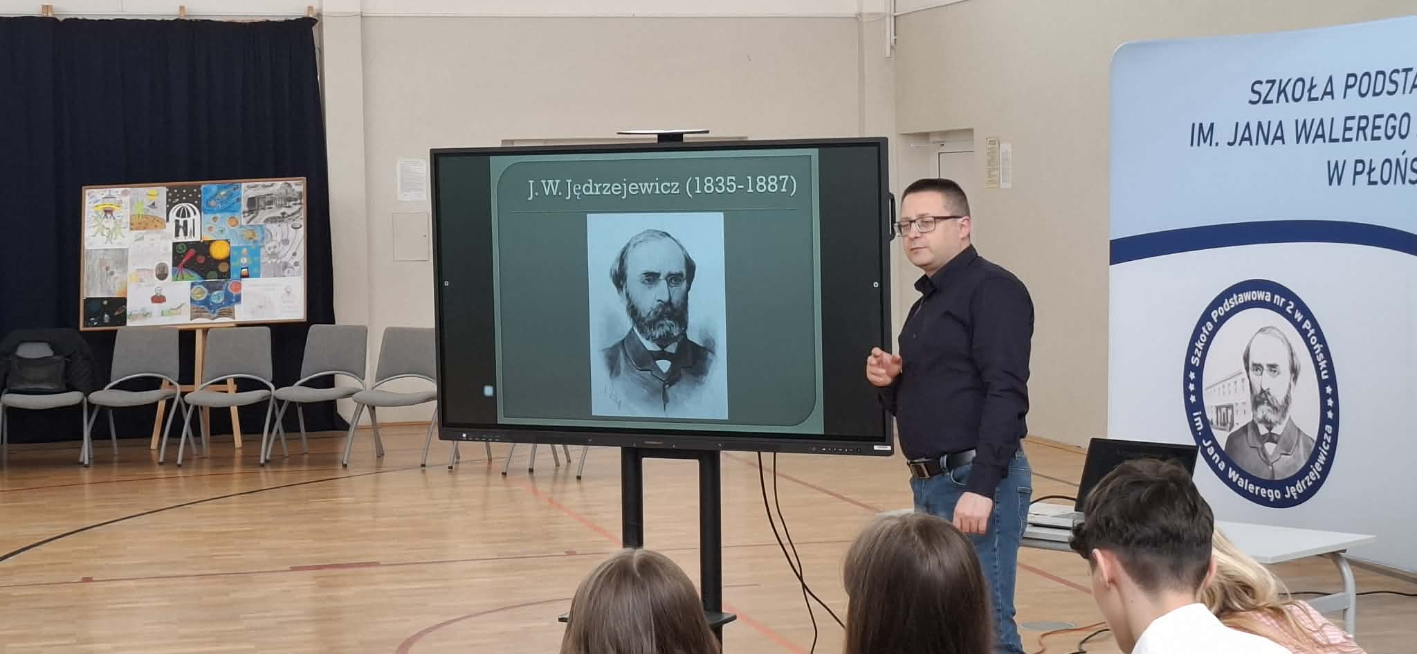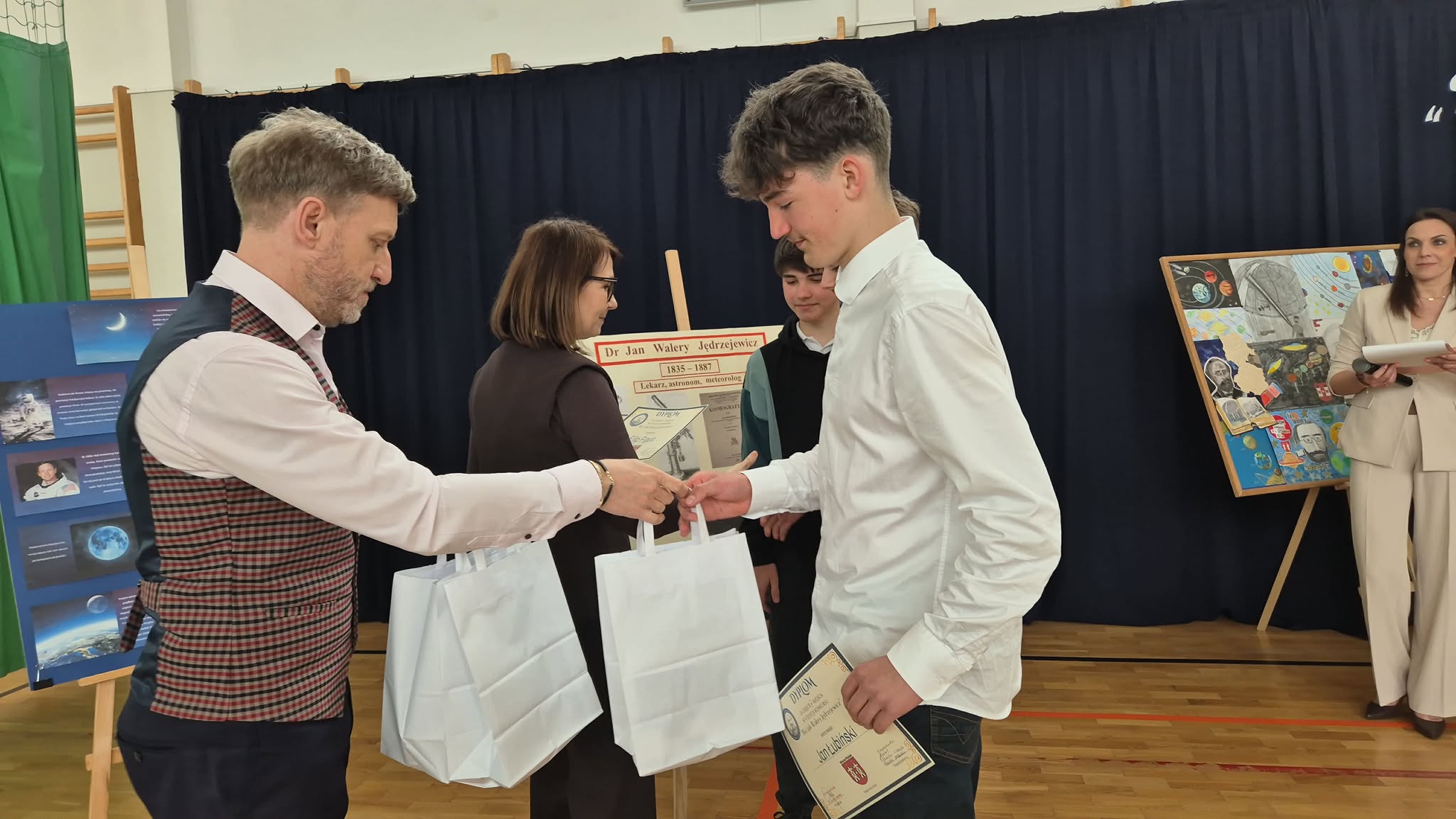 Po zakończeniu konkursu uczestnicy mieli okazję wysłuchać interesującego wykładu, który wygłosił pan Adam Derdzikowski – popularyzator astronomii oraz historii nauki. Prelekcja poświęcona była życiu i twórczości Jana Walerego Jędrzejewicza, wybitnego astronoma i lekarza. Wystąpienie przybliżyło zarówno jego osiągnięcia naukowe, jak i wkład w rozwój polskiej astronomii. Całe wydarzenie odbyło się w ramach obchodów dnia patrona, podkreślając znaczenie jego dorobku oraz inspirując uczestników do pogłębiania wiedzy.