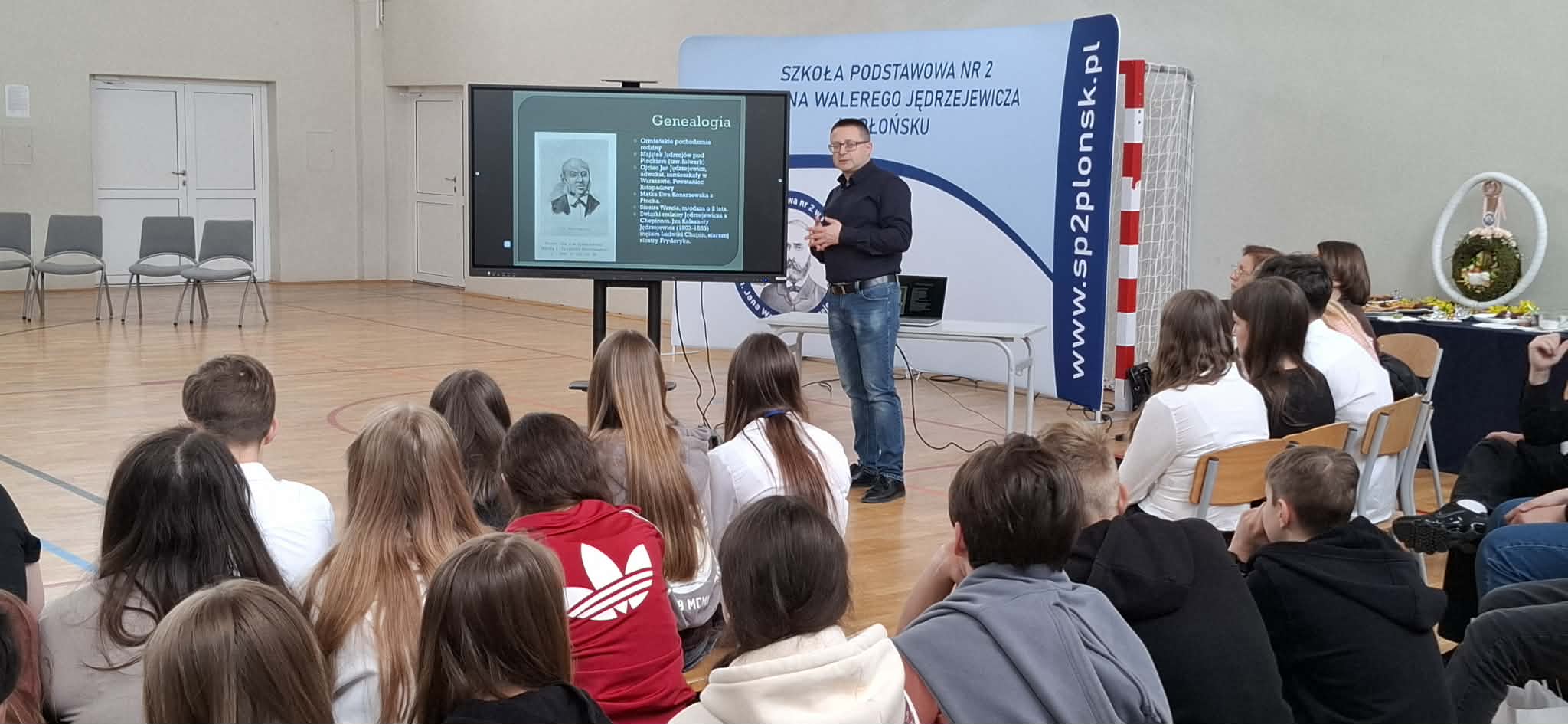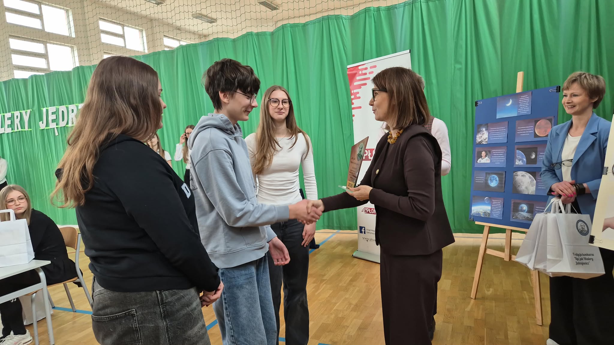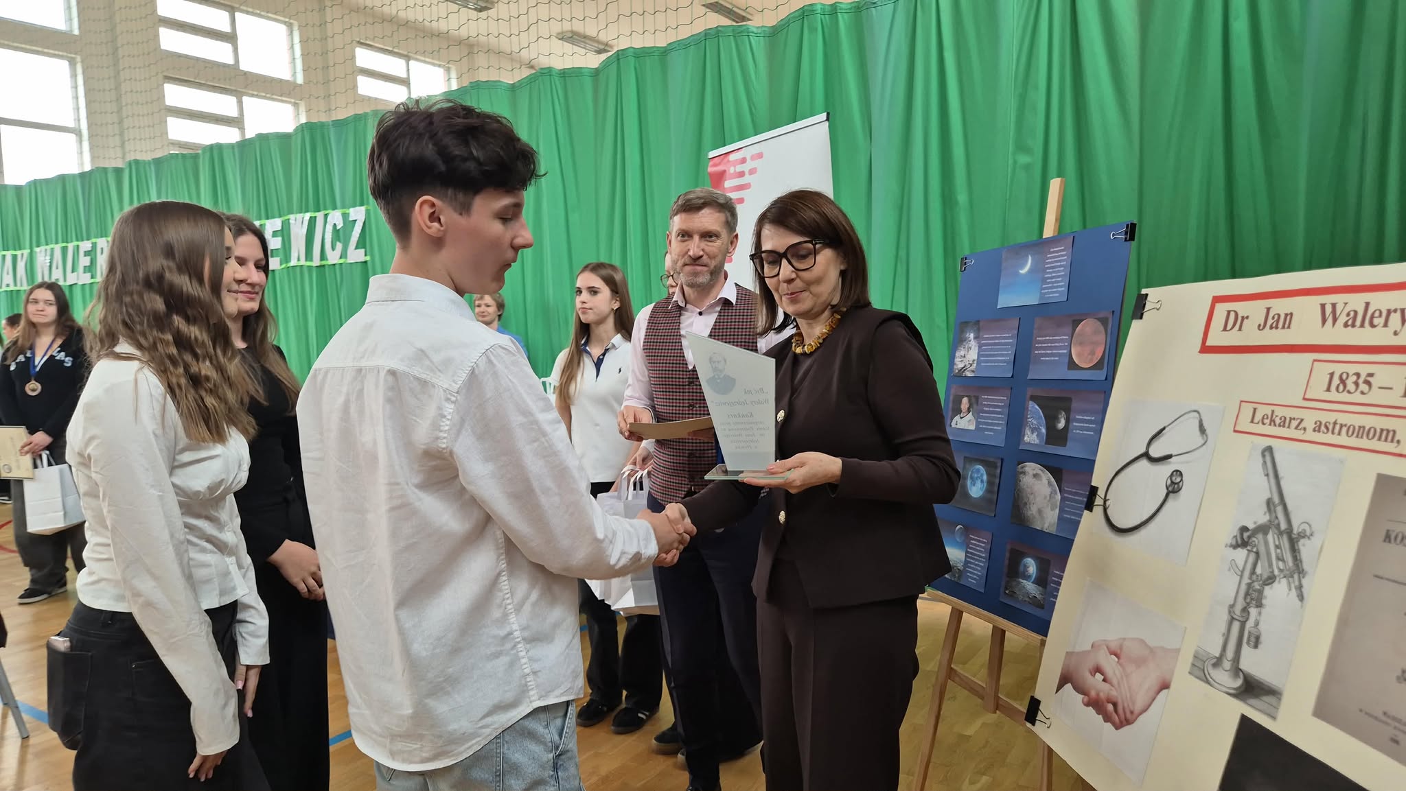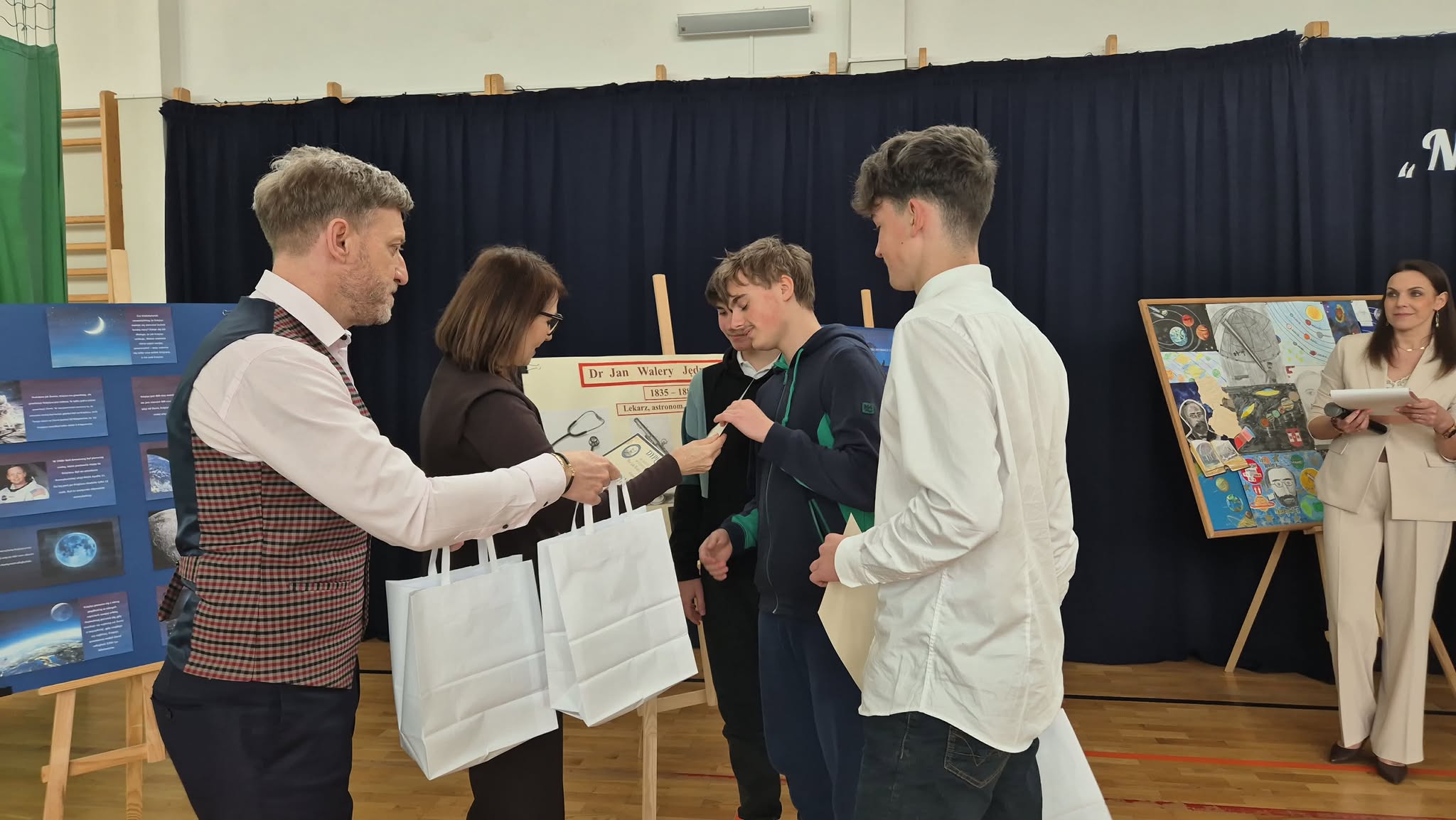 Po zakończeniu konkursu uczestnicy mieli okazję wysłuchać interesującego wykładu, który wygłosił pan Adam Derdzikowski – popularyzator astronomii oraz historii nauki. Prelekcja poświęcona była życiu i twórczości Jana Walerego Jędrzejewicza, wybitnego astronoma i lekarza. Wystąpienie przybliżyło zarówno jego osiągnięcia naukowe, jak i wkład w rozwój polskiej astronomii. Całe wydarzenie odbyło się w ramach obchodów dnia patrona, podkreślając znaczenie jego dorobku oraz inspirując uczestników do pogłębiania wiedzy.