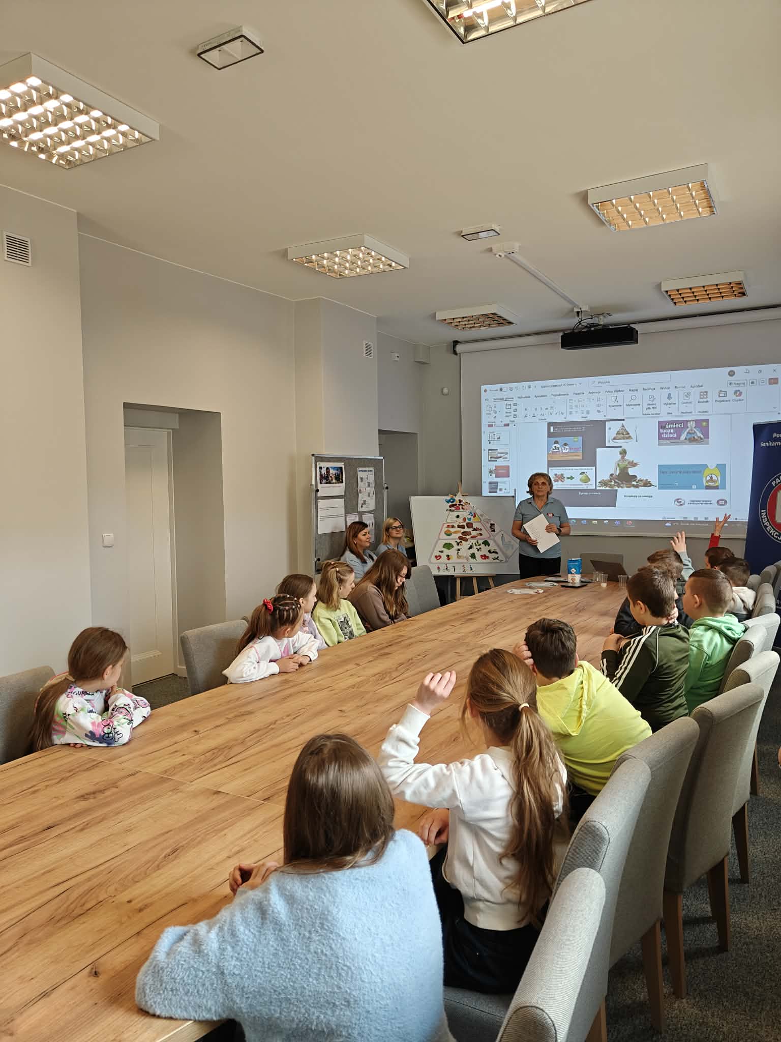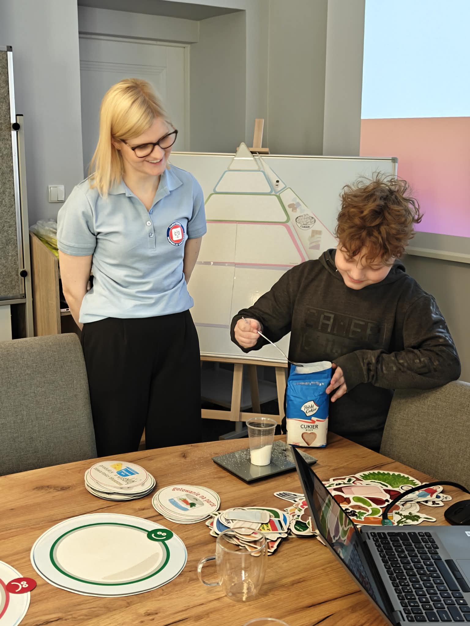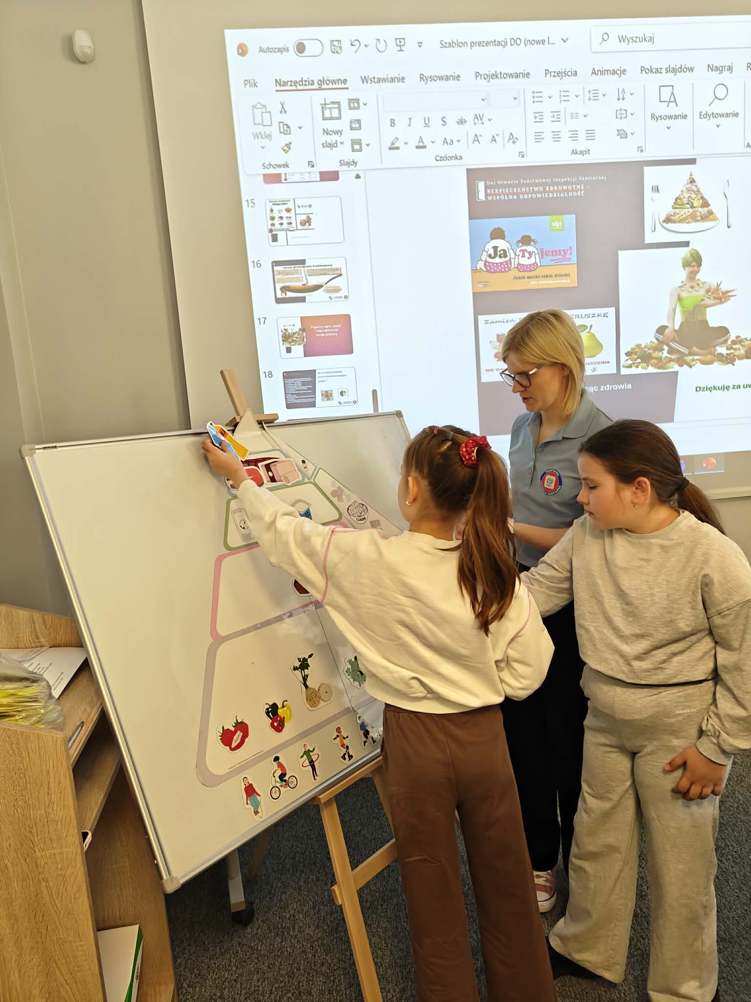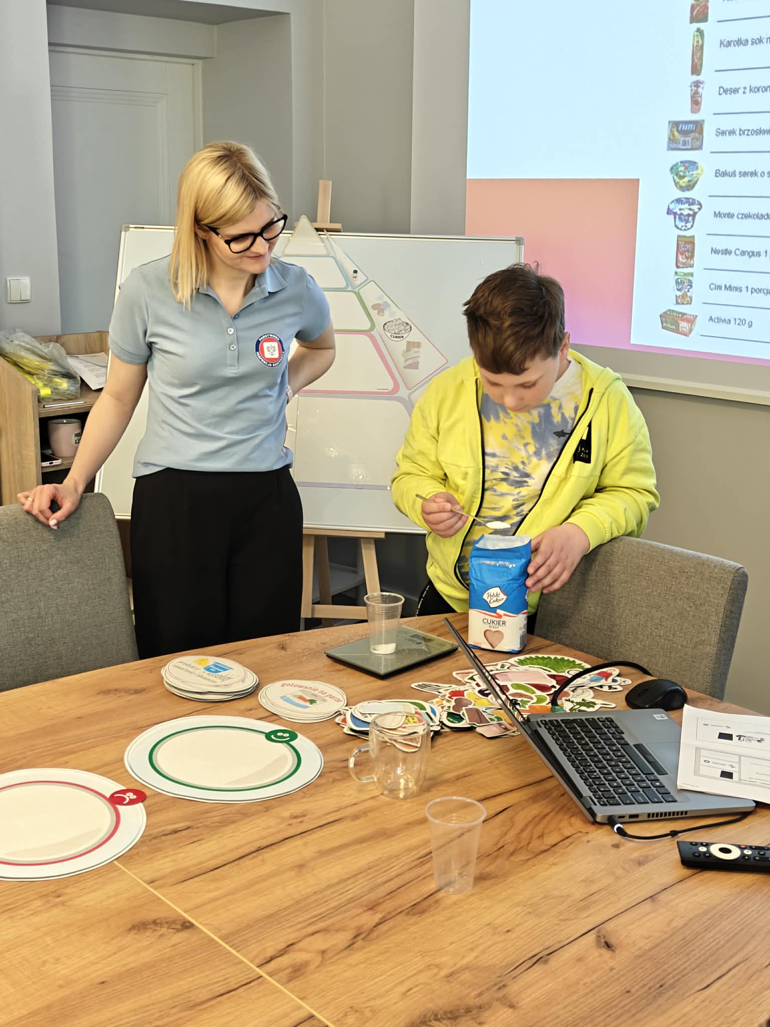 8 kwietnia 2026 r. uczniowie klasy 3 e razem z nauczycielami zostali zaproszeni do Powiatowej Stacji Sanitarno – Epidemiologicznej w Płońsku. Celem wizyty było wysłuchanie prelekcji na temat czynników wpływających na dobrostan naszego organizmu, skutków spożywania przetworzonej żywności i słodyczy. Trzecioklasiści wzięli także udział w warsztatach, podczas których układali piramidę zdrowego odżywiania. Komponowali talerz składający się ze zdrowych produktów spożywczych. Sprawdzali zawartość cukru w popularnych napojach, słodyczach, jogurtach poprzez odmierzanie go na wadze kuchennej. Rozwiązali test sprawdzający wiedzę z zakresu odżywiania i zagadki dotyczące higieny ciała. Uczniowie wrócili do szkoły z dawką wiedzy, która przyczyni się do świadomego, a przede wszystkim zdrowego przygotowywania posiłków. To była wartościowa i potrzebna lekcja przeprowadzona w miłej atmosferze. Dziękujemy Paniom za przekazanie nam wielu ważnych i bezcennych informacji. Dzięki nim możemy świadomie zadbać o nasze zdrowie, które zaczyna się na talerzu.