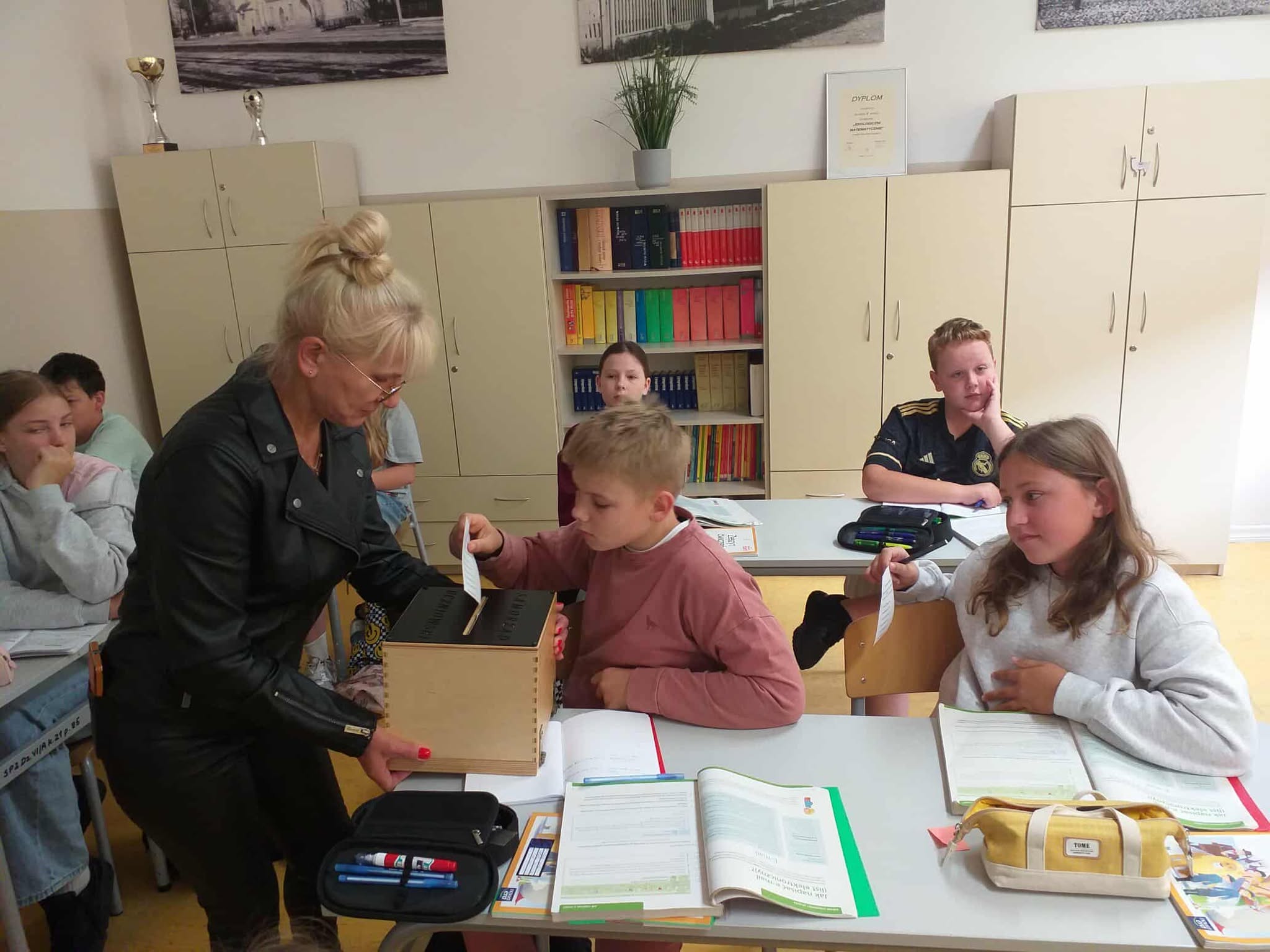 23 września 2025r. w naszej szkole odbyły się wybory do Samorządu Uczniowskiego. Kandydatów było aż 6, a każdy z nich zaprezentował ciekawy program i wiele pomysłów na szkolne działania. Dziękujemy wszystkim uczniom za aktywny udział – to właśnie Wasze głosy decydują o tym, jak będzie wyglądać nasza szkolna rzeczywistość!