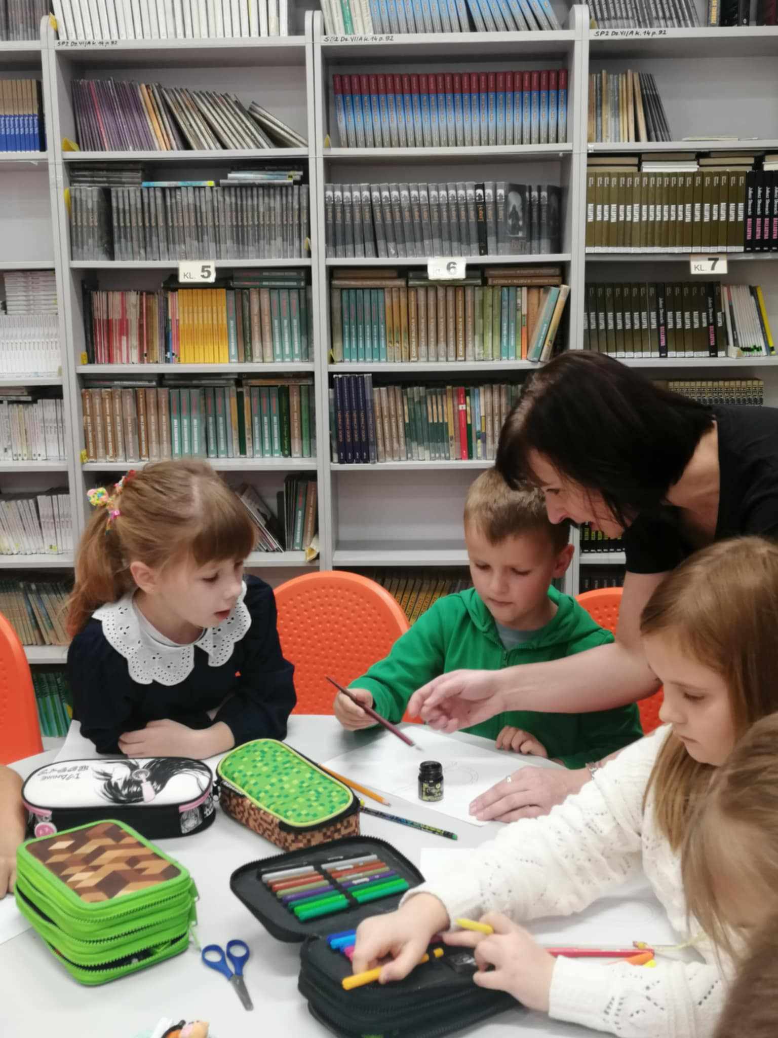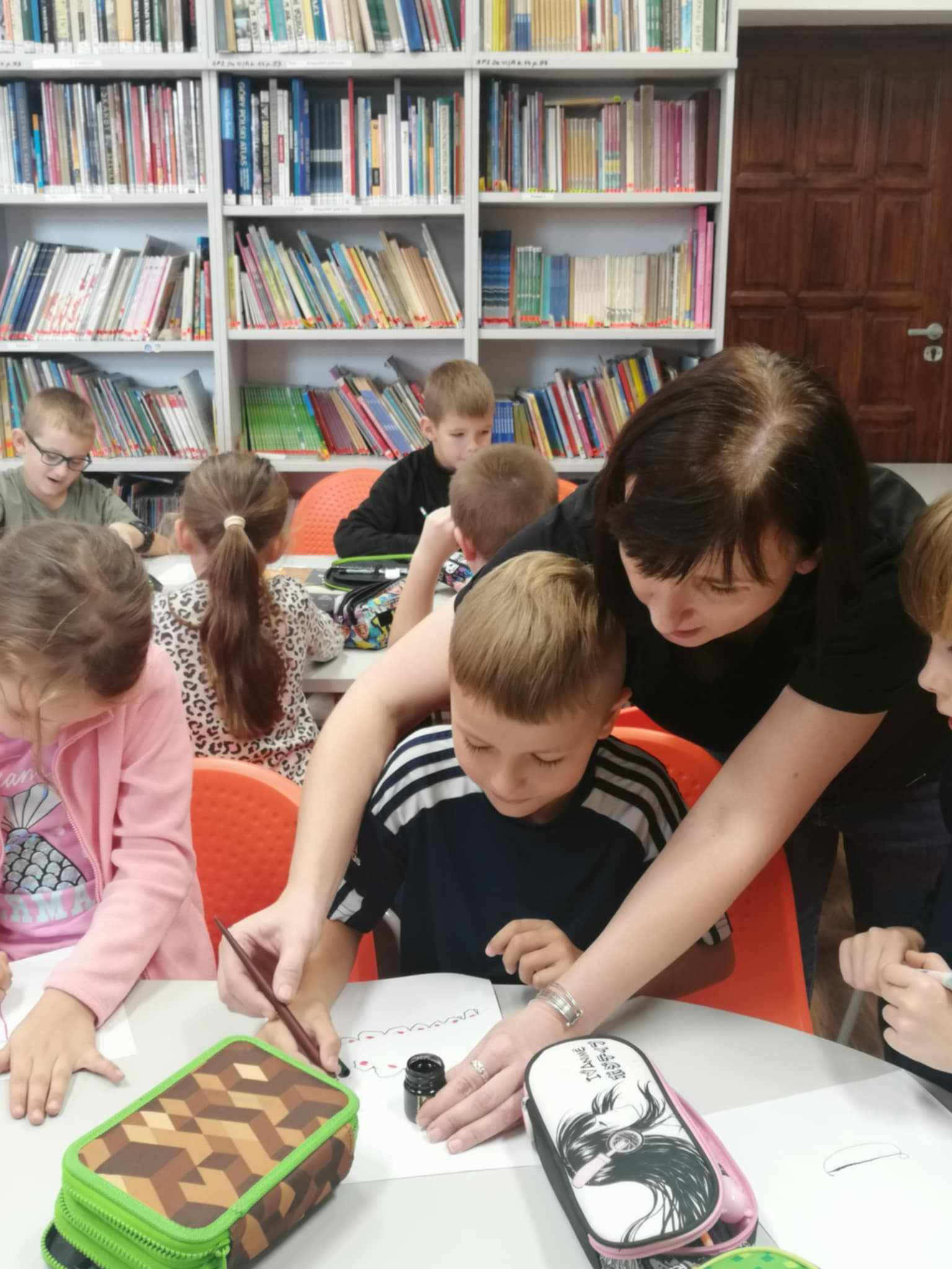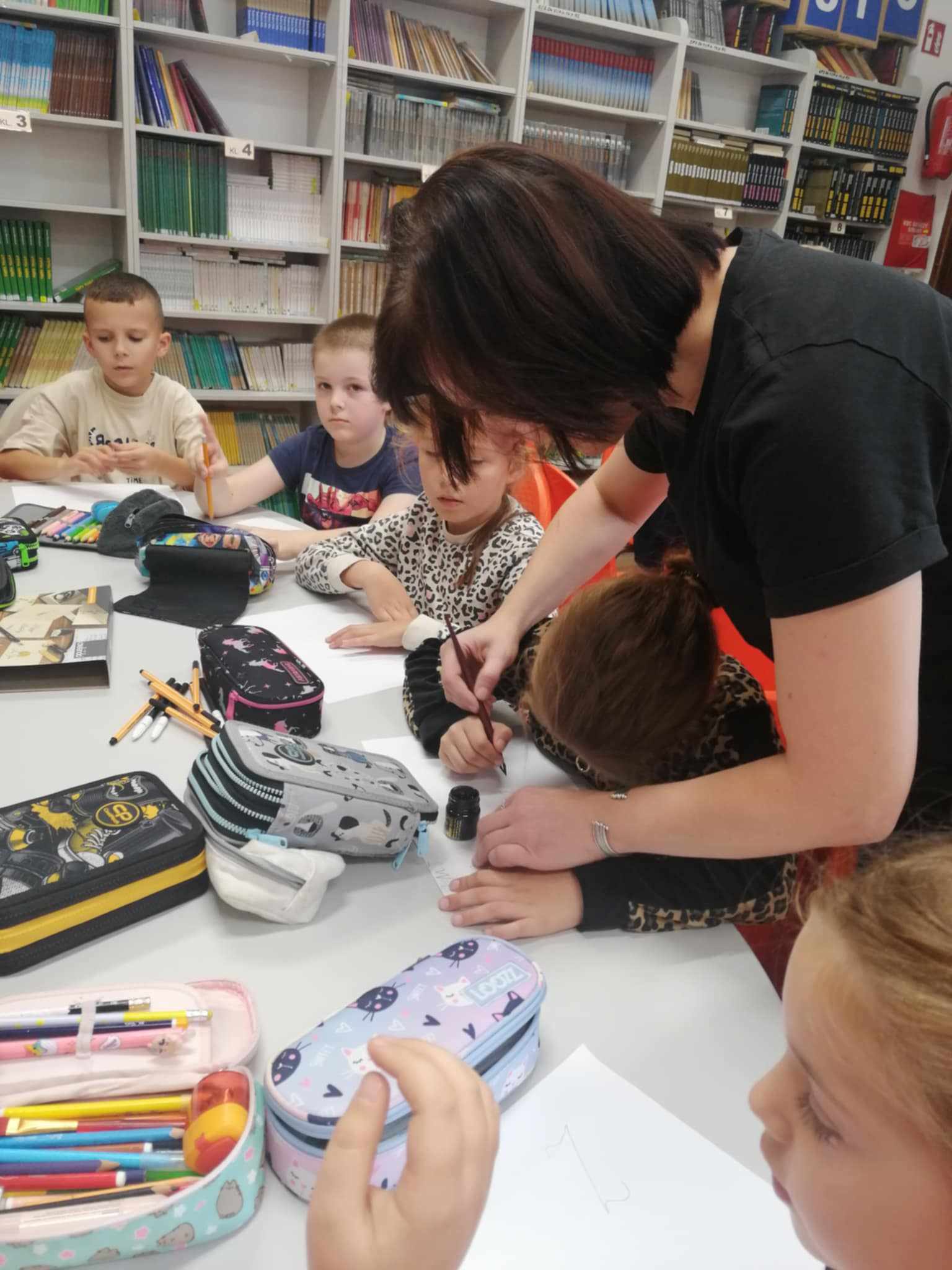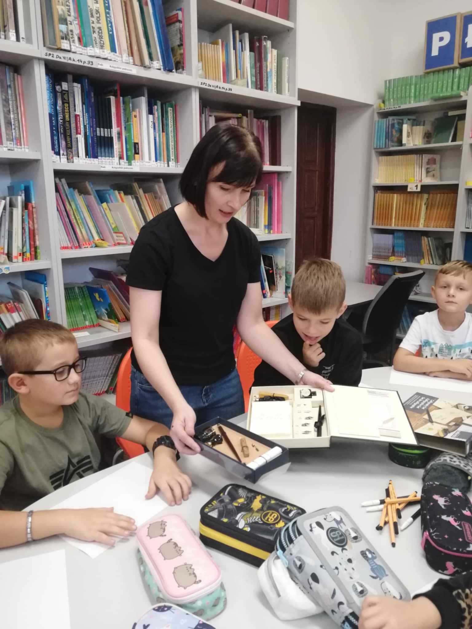 Dnia 23 października uczniowie klasy 1d odwiedzili bibliotekę szkolną, gdzie wzięli udział w zajęciach inspirowanych pakietem edukacyjnym Narodowego Instytutu Kultury i Dziedzictwa Wsi „Wyprawy z Etnoekipą. Poznaj dawną wieś”. Podczas lekcji uczniowie dowiedzieli się, dlaczego kaligrafia jest ważna, dlaczego warto starannie pisać i doskonalić umiejętność czytania. Poznali również, jak wyglądało życie dziecka na wsi w dawnych czasach. Największą atrakcją była próba pisania piórem. Pakiet edukacyjny został udostępniony przez Narodowy Instytut Kultury i Dziedzictwa Wsi.