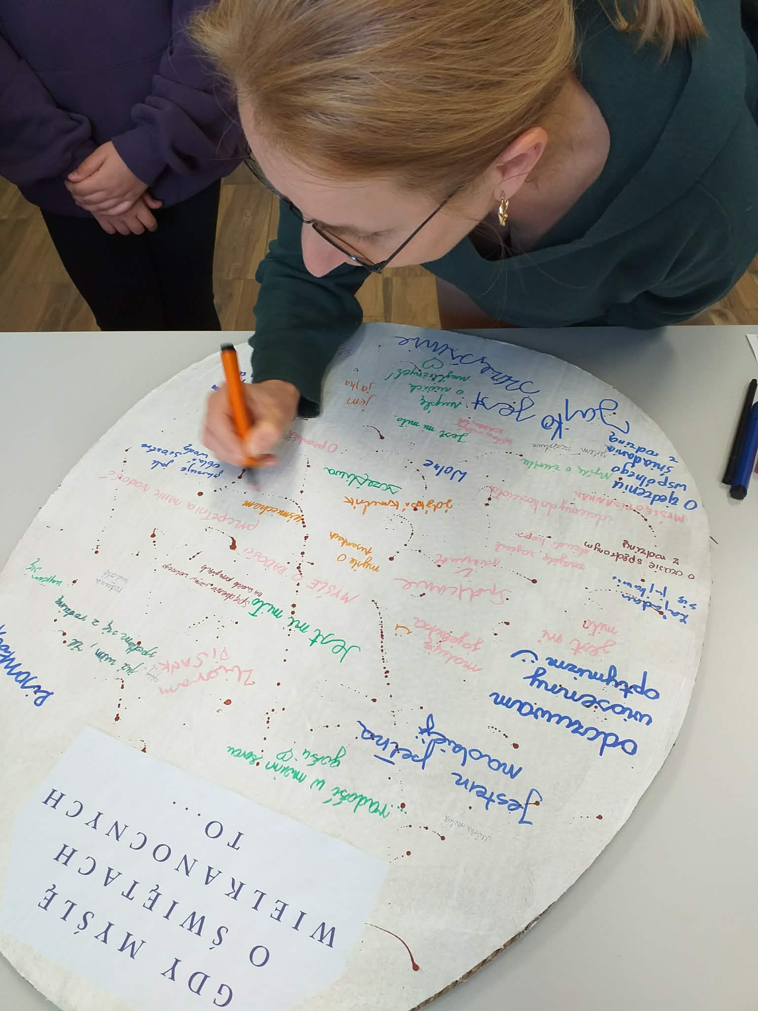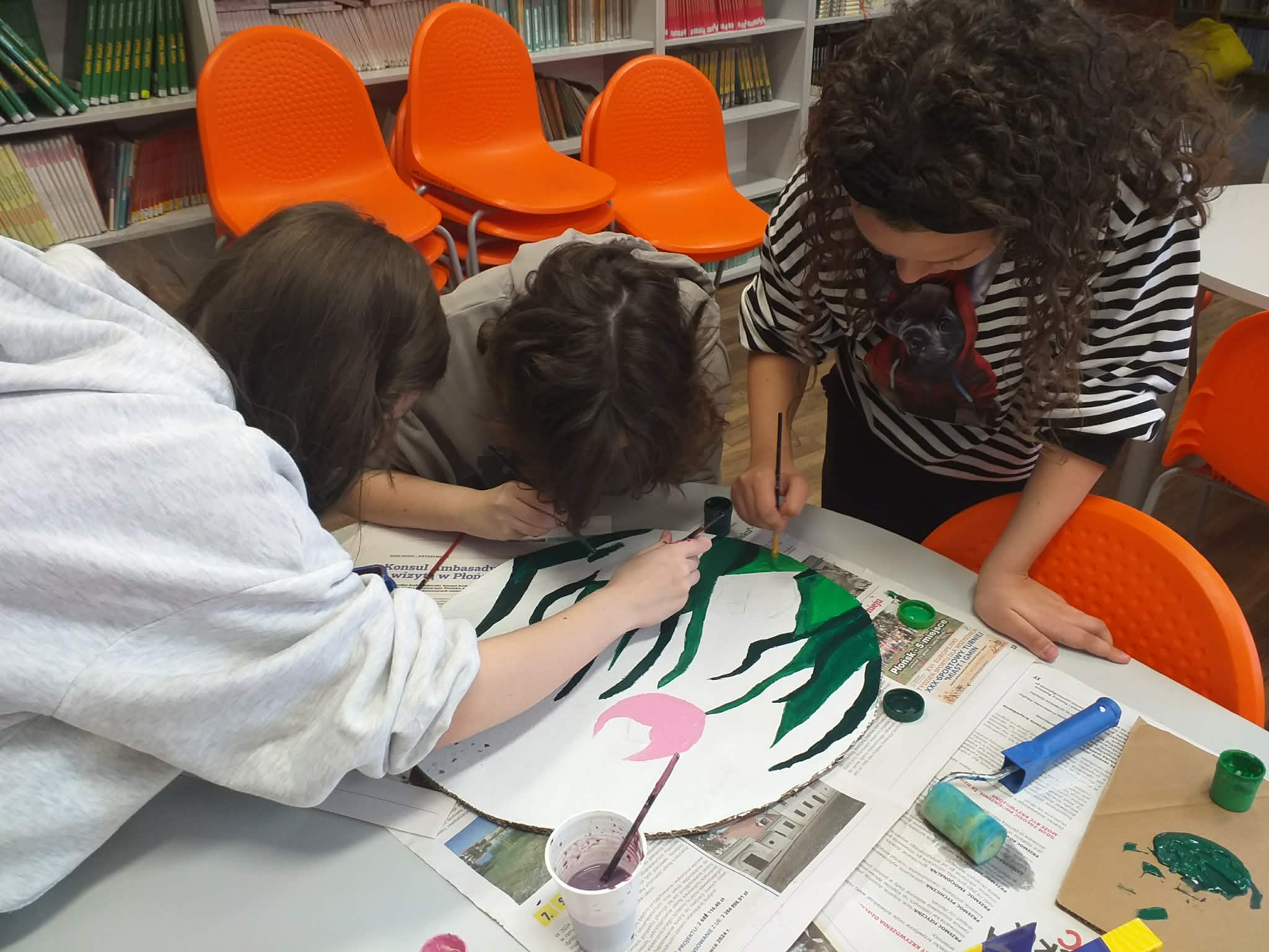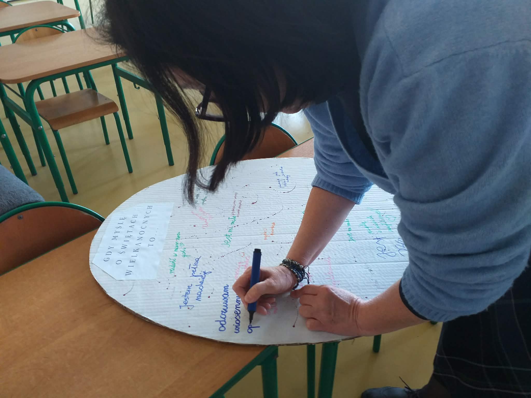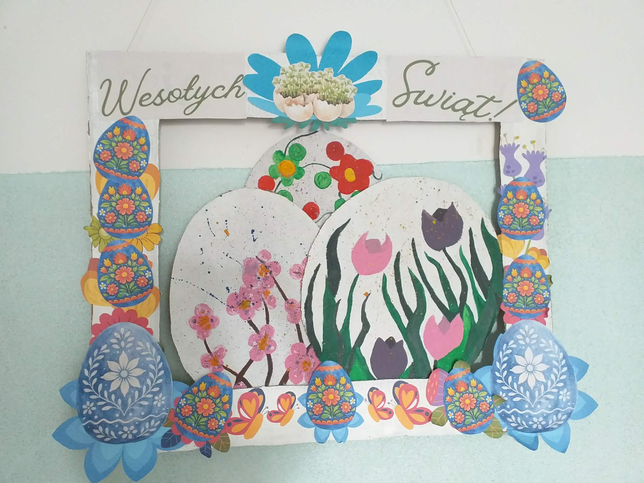 Uczennice z klasy 6a Lena Burcz, Natalia Jackiewicz, Natalia Mackiewicz, we współpracy z biblioteką szkolną, przygotowały wyjątkową dekorację wielkanocną, która wprowadza całą społeczność szkolną w świąteczny nastrój. Jednym z elementów tej inicjatywy była tablica, na której nauczyciele i uczniowie mogli dokończyć zdanie: „Gdy myślę o Świętach Wielkanocnych to…”. Pojawiające się odpowiedzi najczęściej nawiązywały do spotkań rodzinnych, bliskości najbliższych oraz poczucia szczęścia i radości. Biblioteka szkolna serdecznie zaprasza do obejrzenia wystawy przygotowanej w ramach tej akcji i wspólnego przeżywania atmosfery zbliżających się świąt.